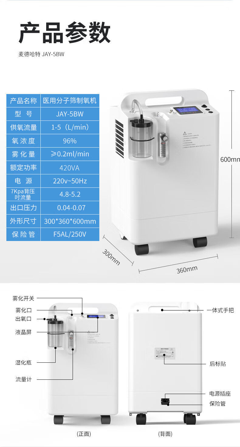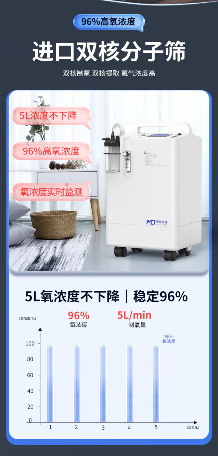 Medhart brand Medhart 5L liter medical oxygen concentrator household oxygen inhaler elderly oxygen machine atomization all-in-one machine medical 5 liter blue model with atomization imported molecular sieve