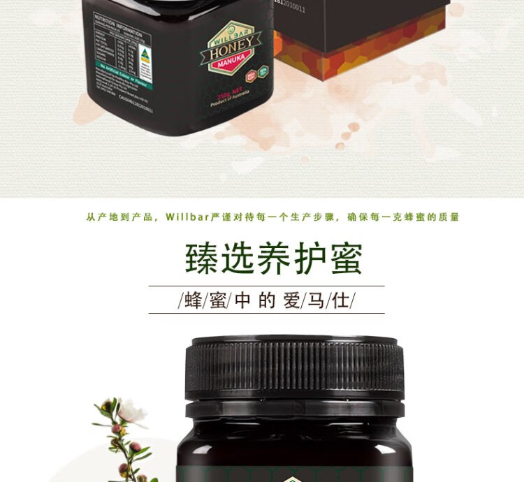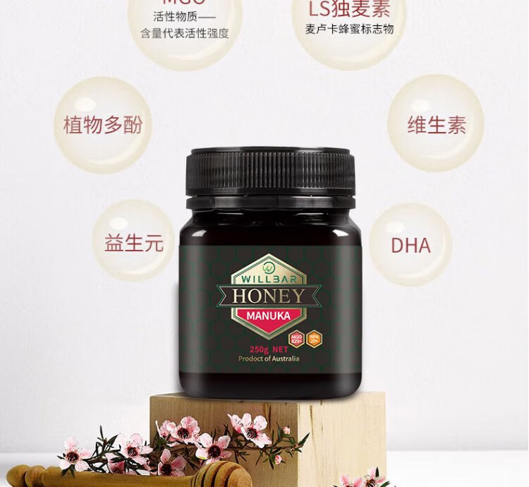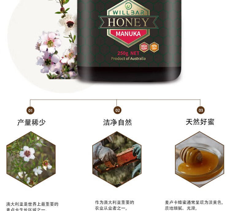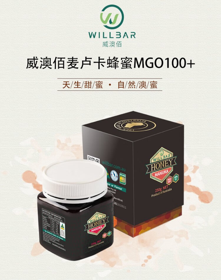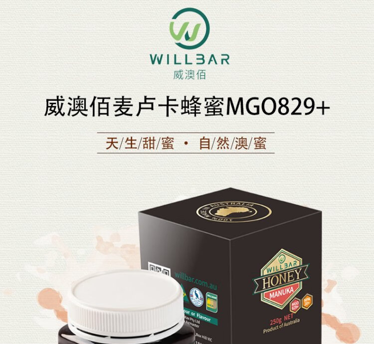 Wei'ao Bai Manuka Honey MGO829+ Manuka Honey MGO100+ imported from Australia WILLBAR brand Wei'ao Bai Manuka Honey MGO100+NPA5+