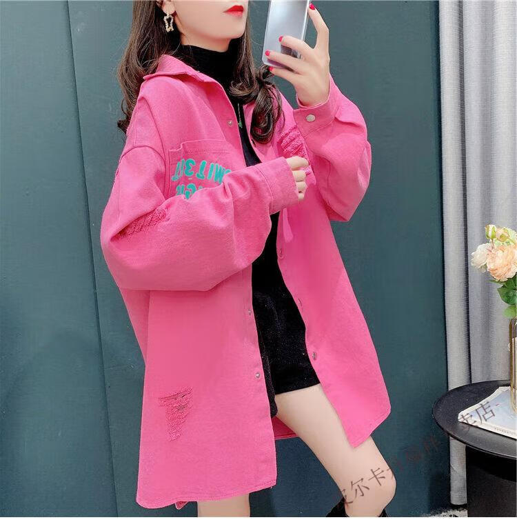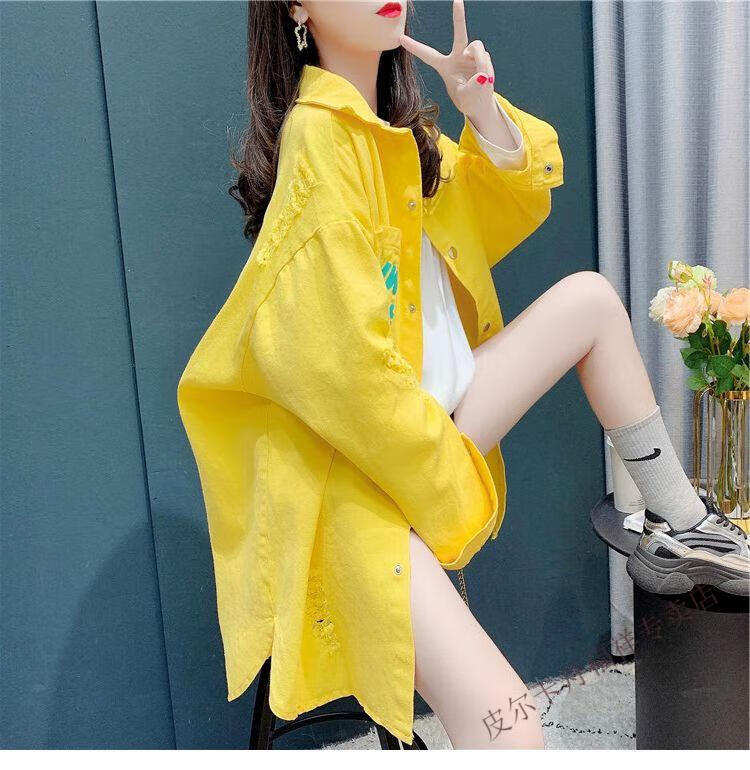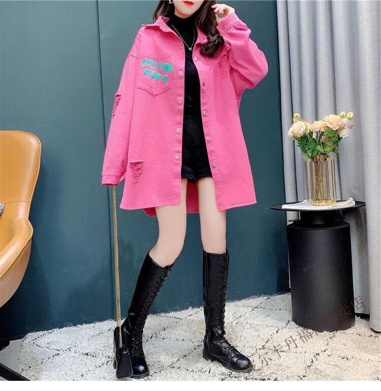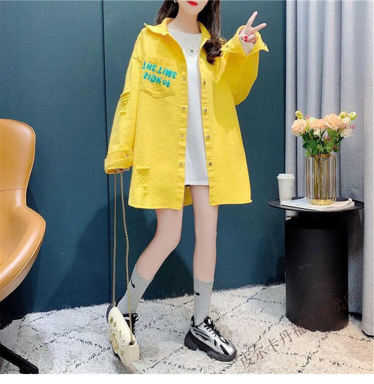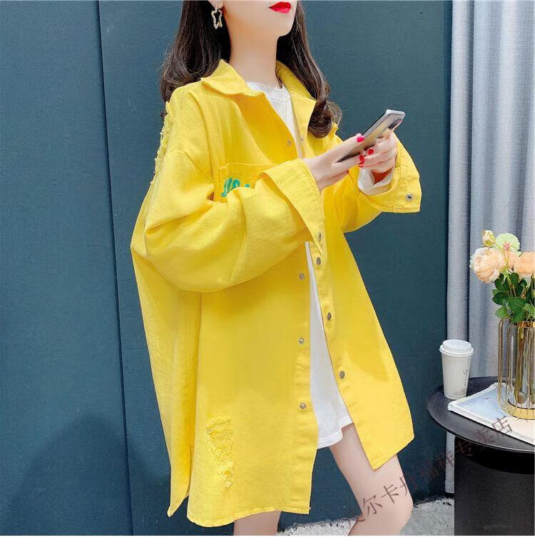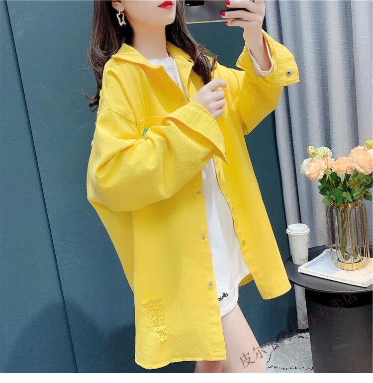 Pierre Cardin Design-Nischen-Hemd mit Rissen für Damen, Frühling und Herbst, vielseitiges Oberteil, Oberbekleidung, mittellanger Mantel für Damen 829 S (empfohlen 115Jin Jin, entspricht innerhalb von 0,5 kg)