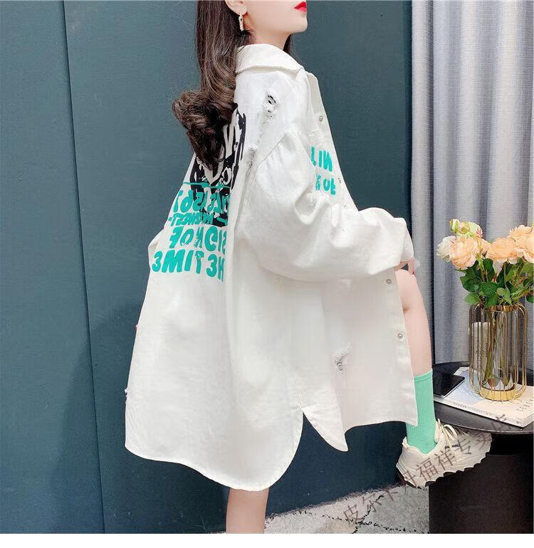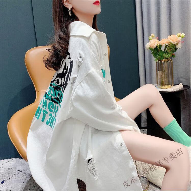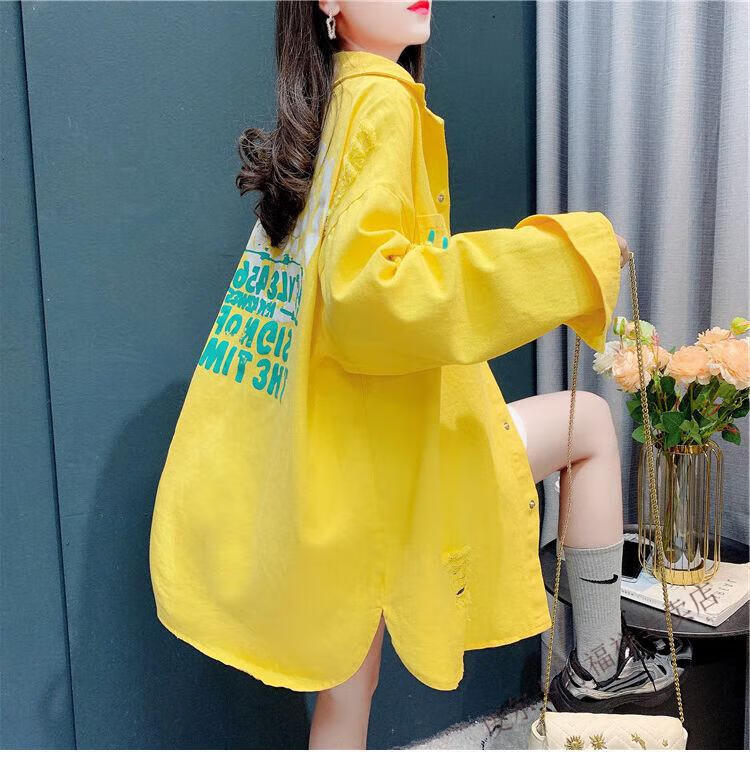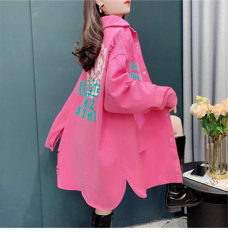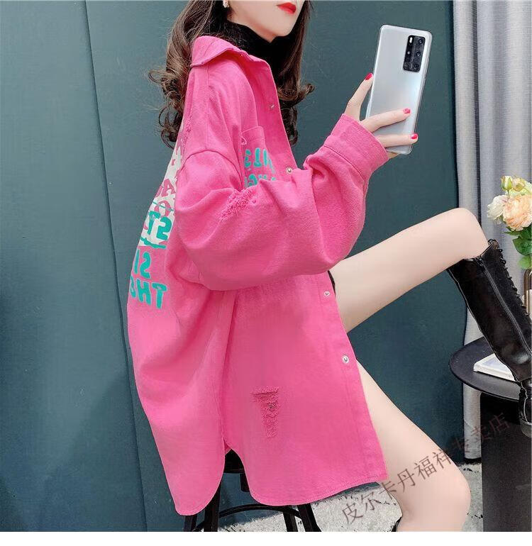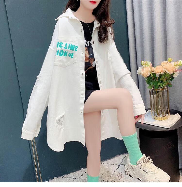 Pierre Cardin Design-Nischen-Hemd mit Rissen für Damen, Frühling und Herbst, vielseitiges Oberteil, Oberbekleidung, mittellanger Mantel für Damen 829 S (empfohlen 115Jin Jin, entspricht innerhalb von 0,5 kg)