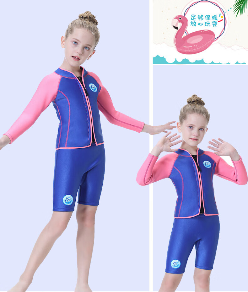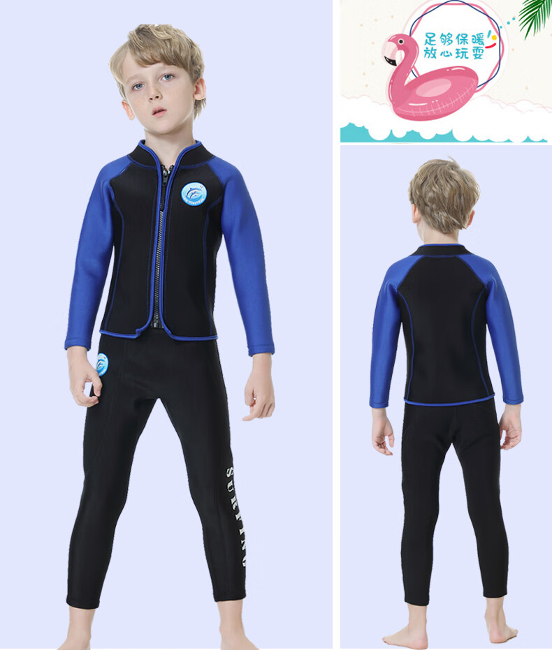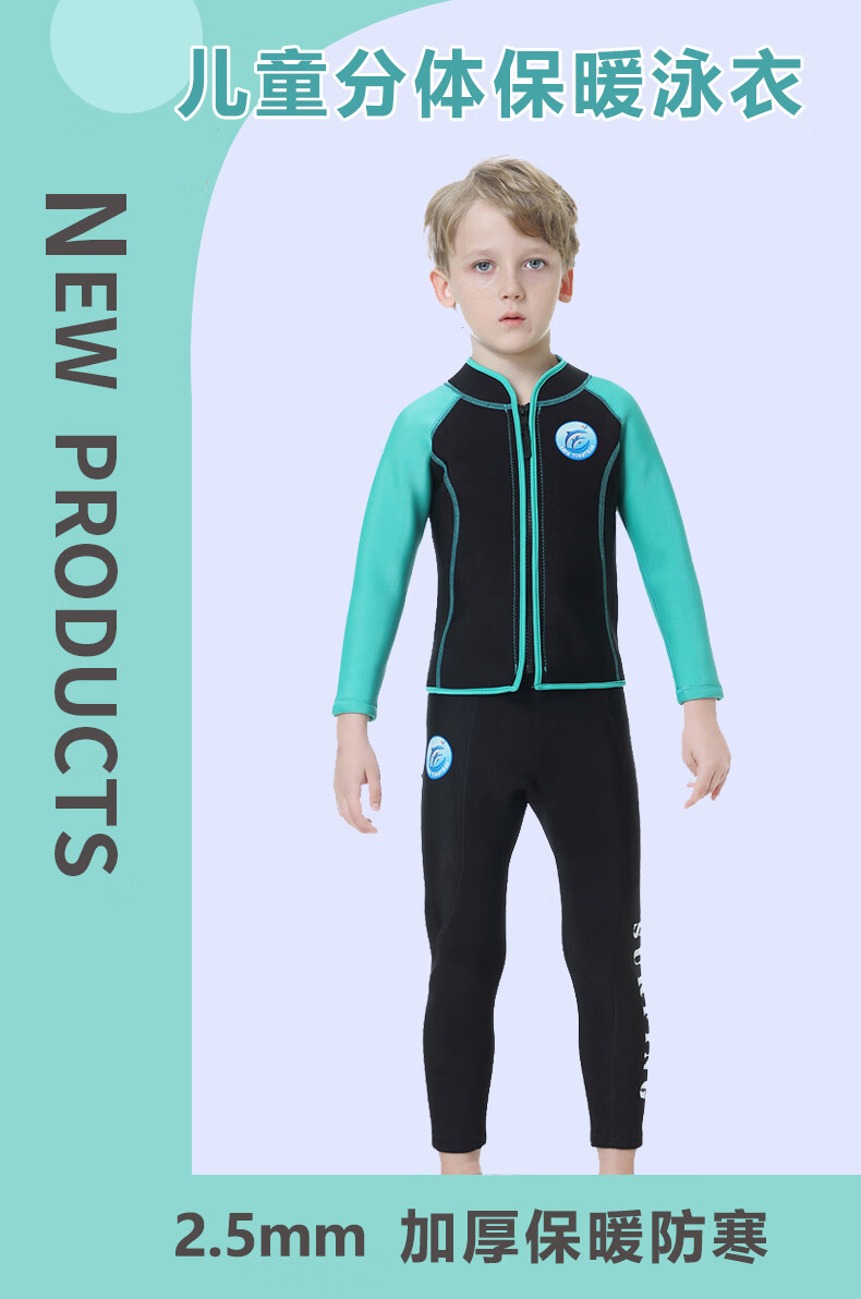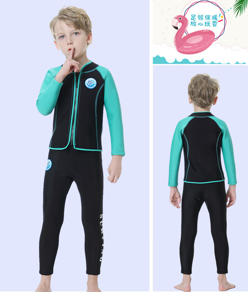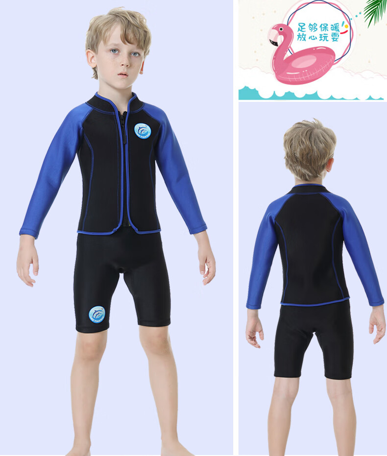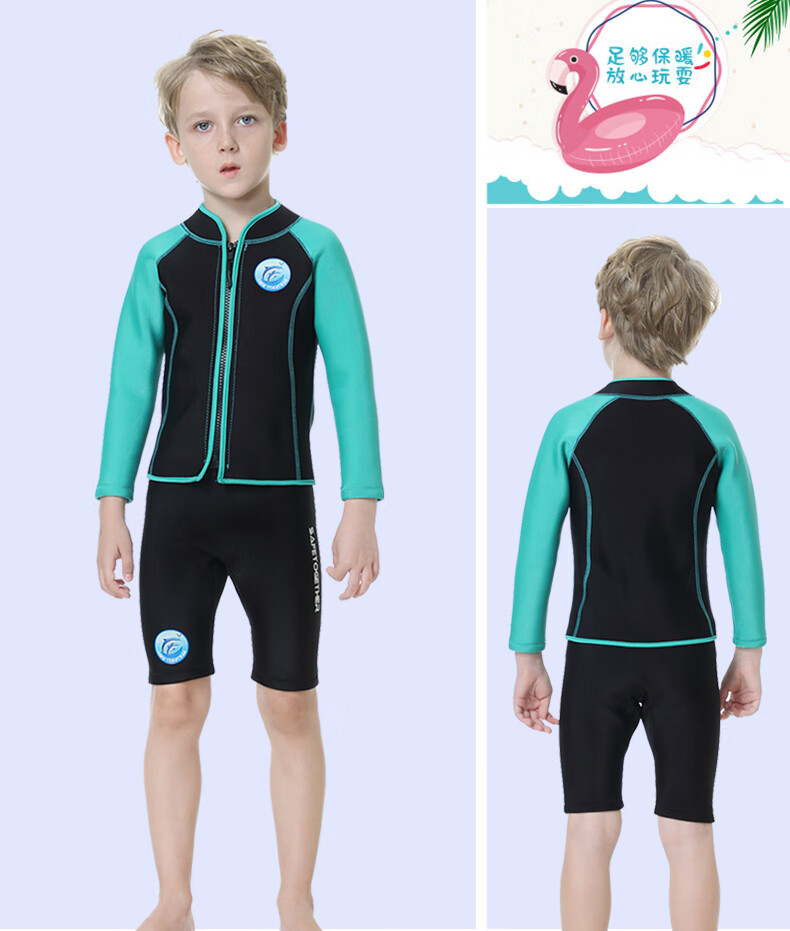 VVIR EER children's swimsuit split girls boys winter thermal insulation thickened cold-proof warm long-sleeved swimsuit suit wetsuit boys black green (long-sleeved shorts) XL (130-140CM52-68Jin Jin equals 0.5 kg)