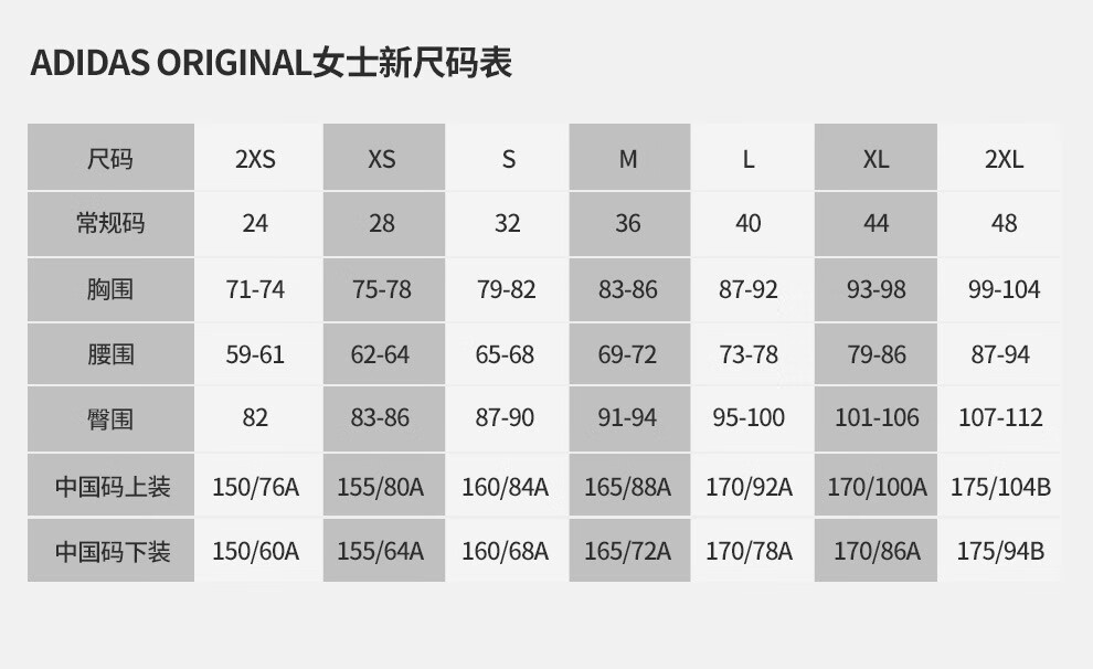China (cm) 160-165/84-86 165-170 / 88-90 167-172 / 92-96 168-173 / 98-102 170-176 / 106-110