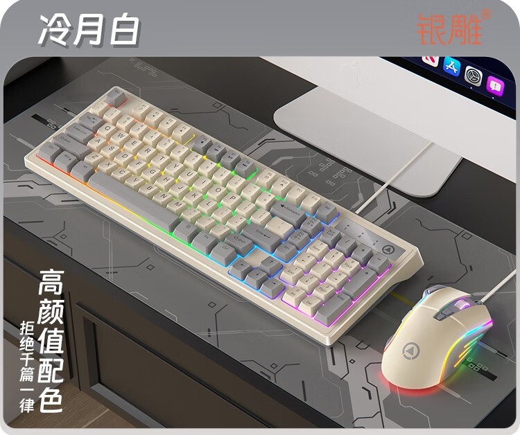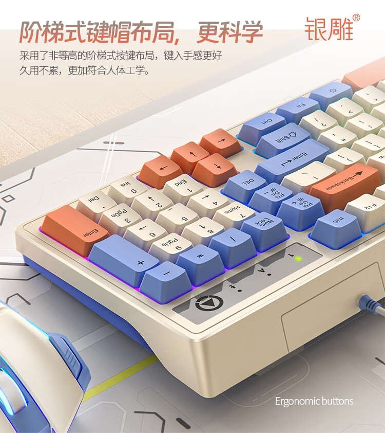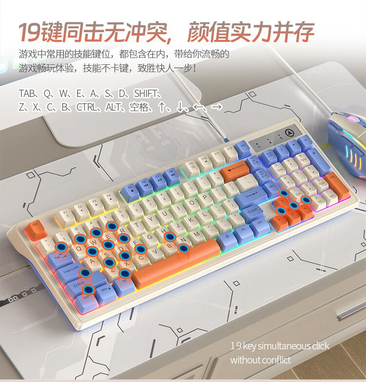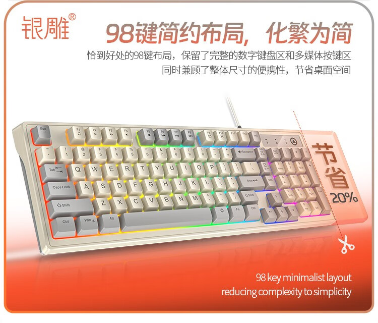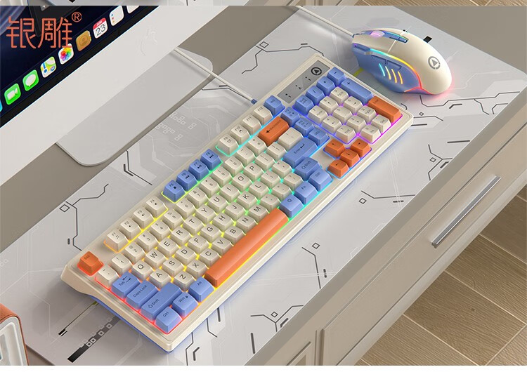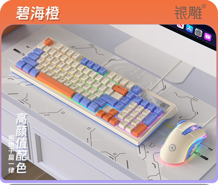 Silver carving keyboard mechanical feel e-sports game keyboard and mouse set wired office keyboard and mouse computer notebook ergonomic 98 key number portable external typing keyboard KM800 Bihai orange - keyboard and mouse set One year new - simple layout - simple