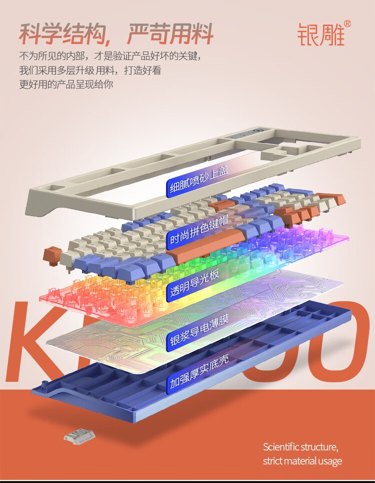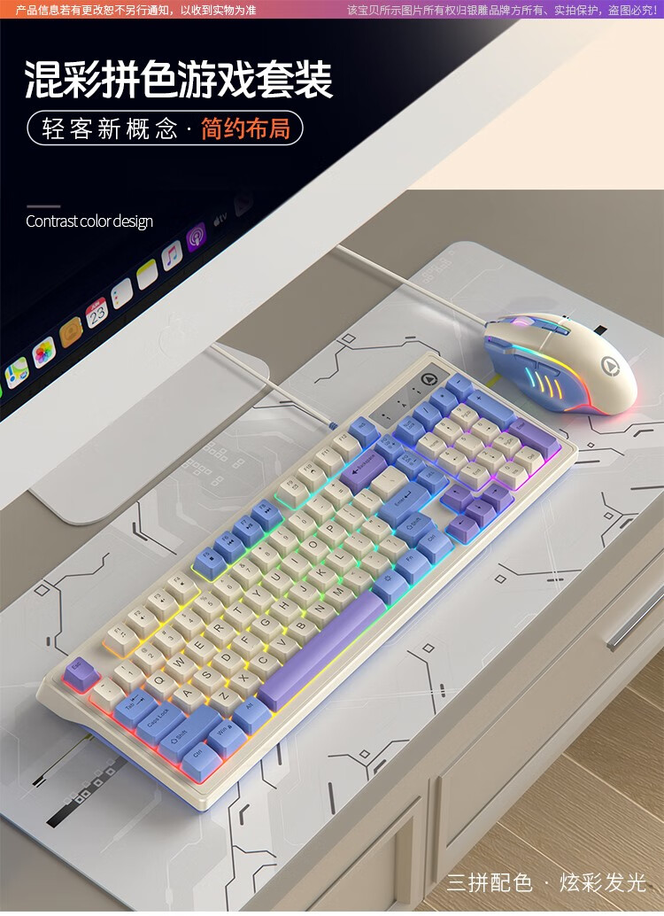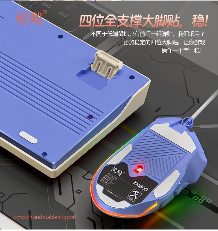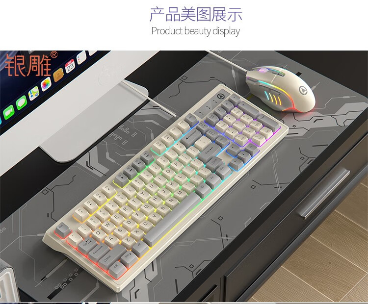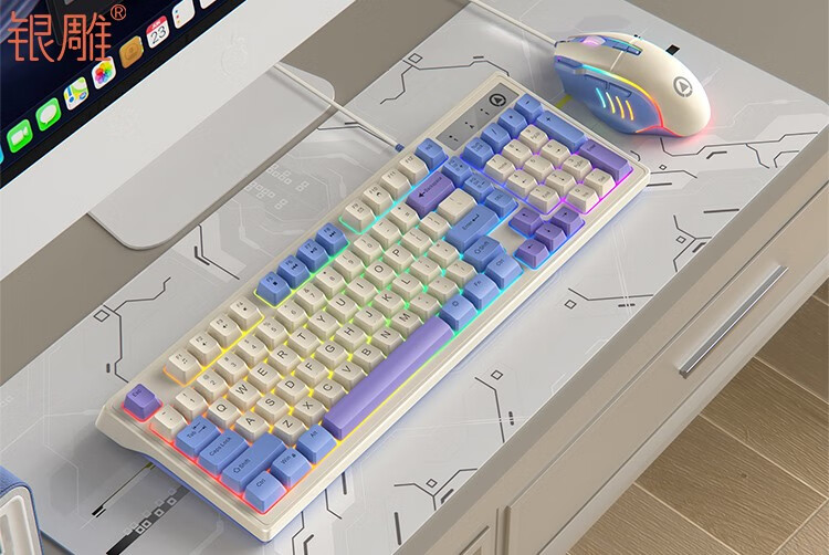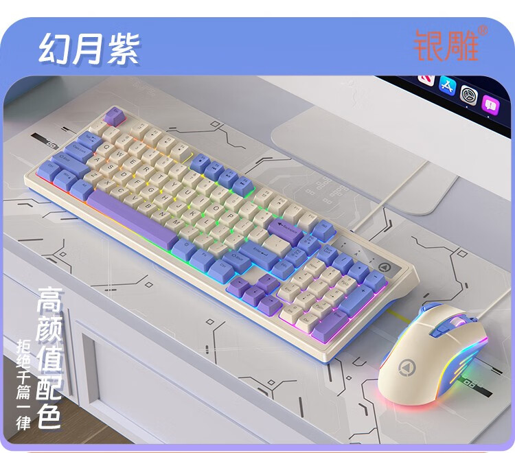 Silver carving keyboard mechanical feel e-sports game keyboard and mouse set wired office keyboard and mouse computer notebook ergonomic 98 key number portable external typing keyboard KM800 Bihai orange - keyboard and mouse set One year new - simple layout - simple