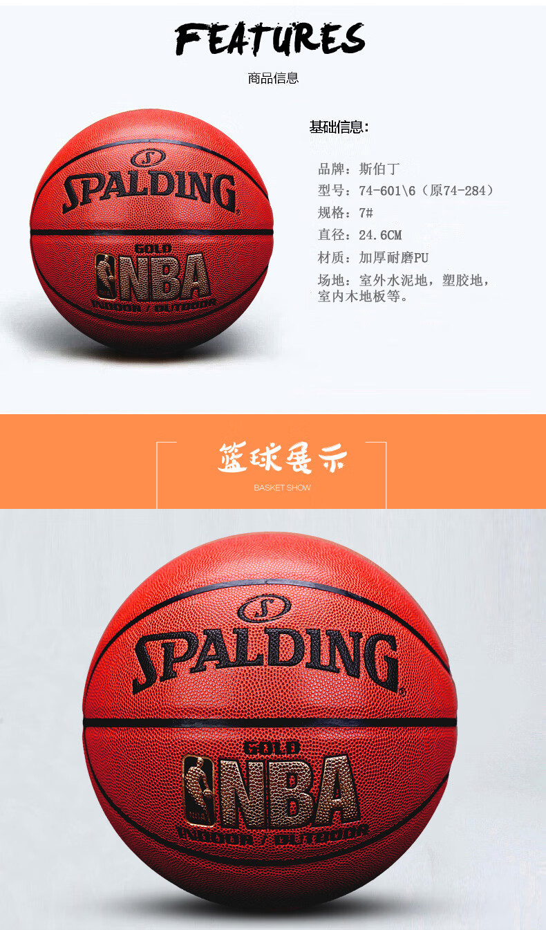SPALDING basketball indoor and outdoor wear-resistant soft leather PU cement floor No. 7 game basketball SPALDING 76-846Y full set of No. 7 basketball (standard ball)