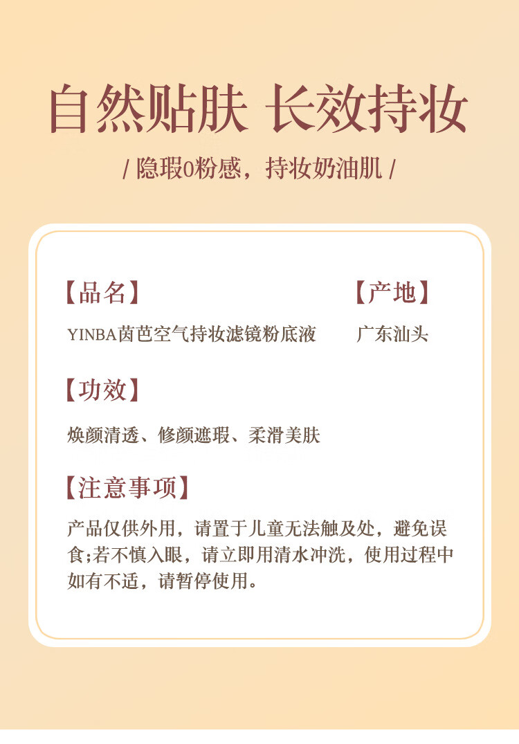Yinba air long-lasting makeup liquid foundation filter natural concealer clear creamy skin non-removing makeup liquid foundation 01# ivory white