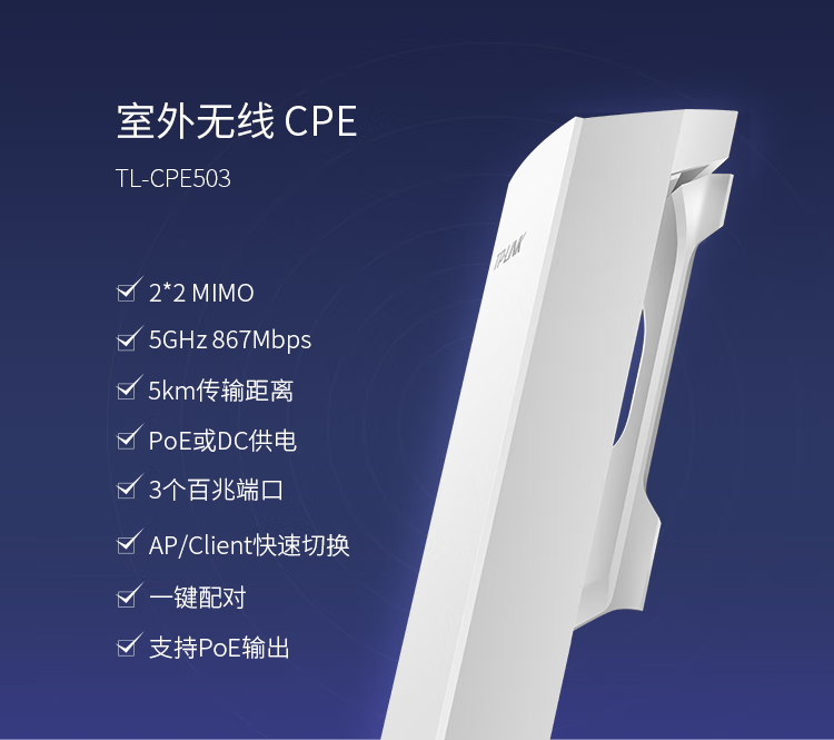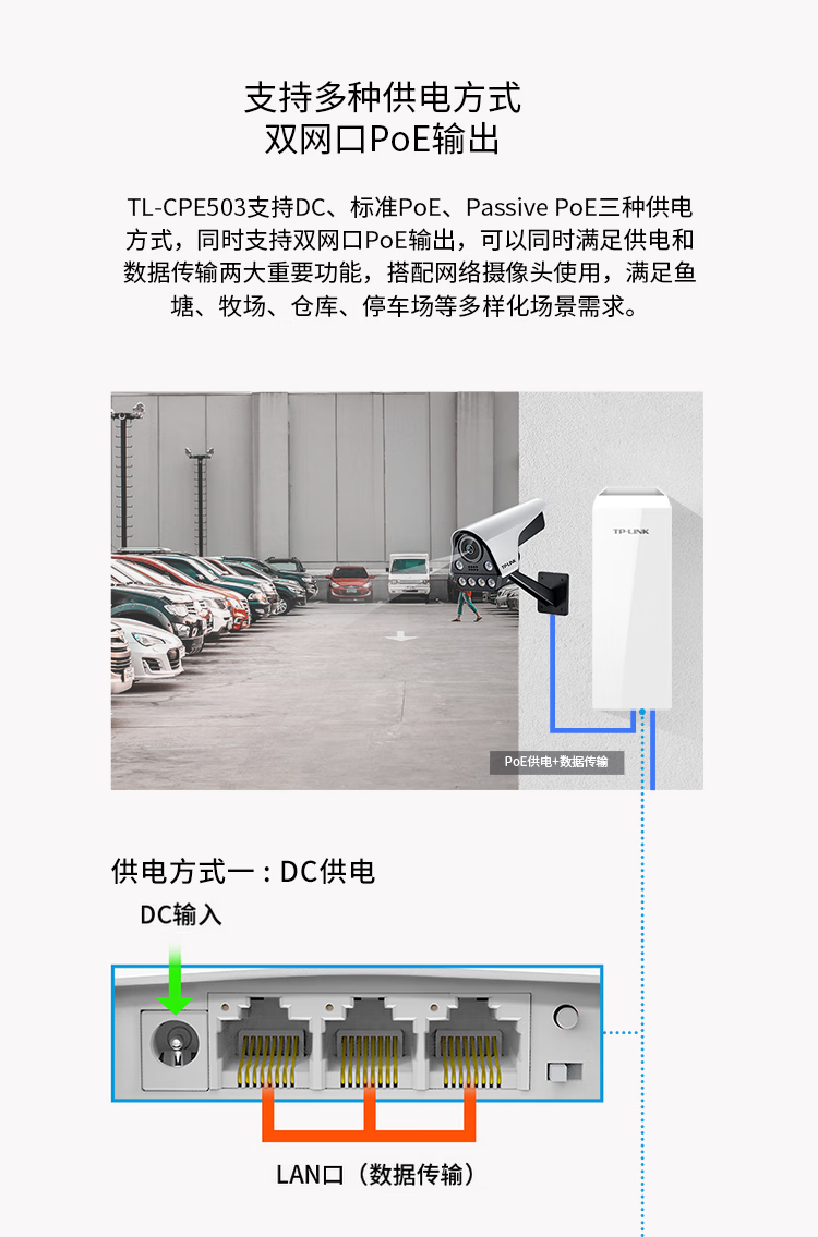 Pulian (TP-LINK) wireless bridge outdoor high-power ap directional antenna monitoring cpe long-distance wifi one-to-many transmission PoE module DC power supply CPE501 set 5 kilometers 100M network port 5G