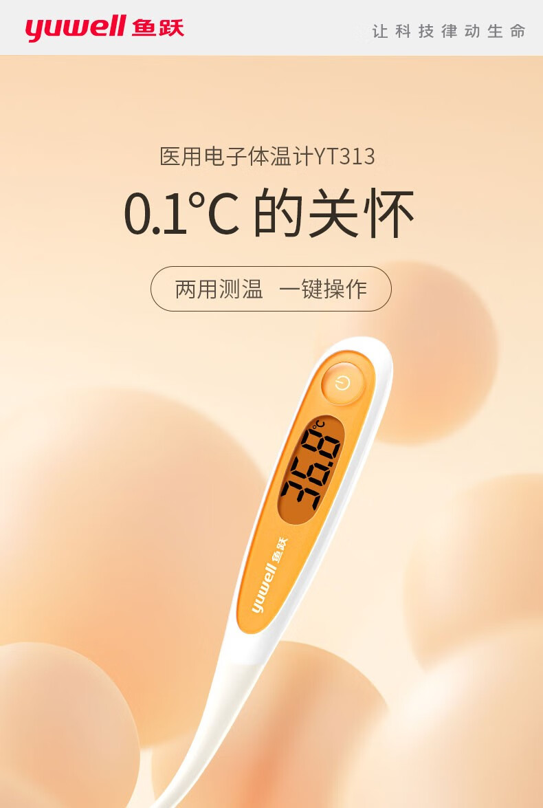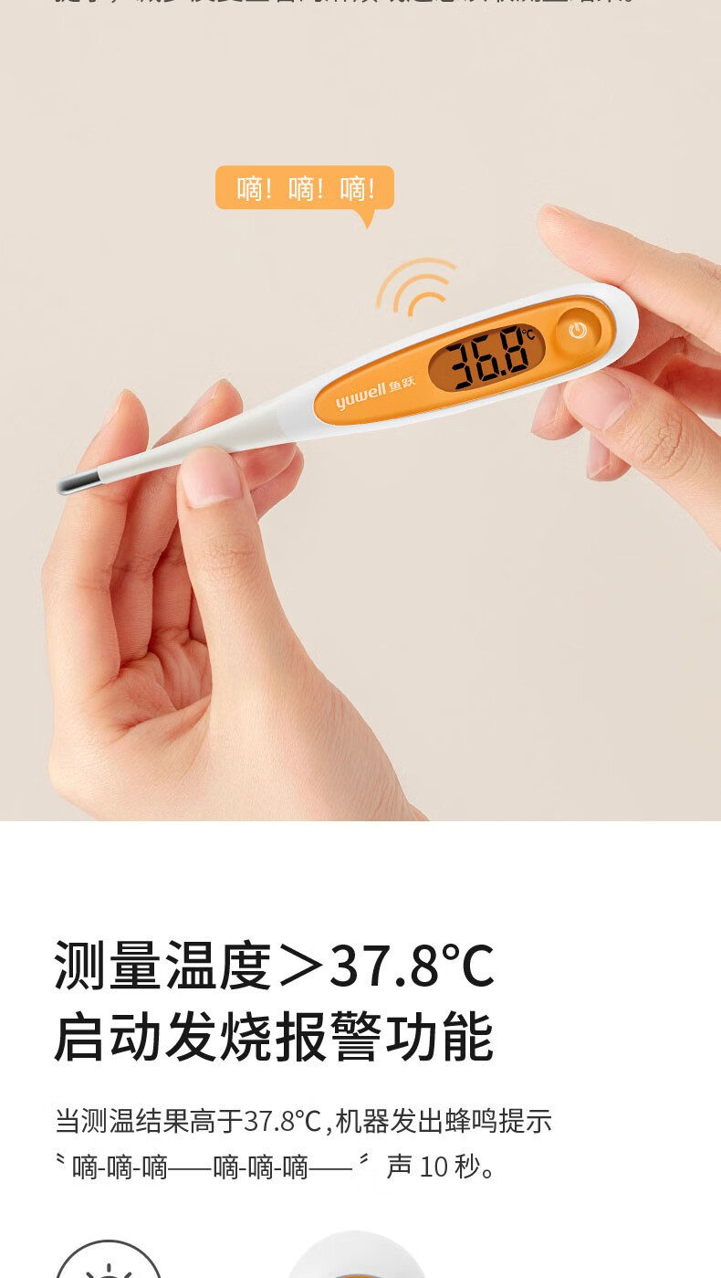 Yuyue marca Yuwell termómetro electrónico de cabeza blanda para el hogar médico bebé, bebé, adulto mayor termómetro de medición de axila oral termómetro YT-313 Yuyue YT-312 (cabeza dura sin luz)