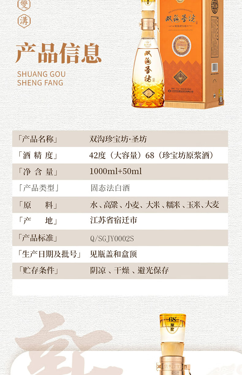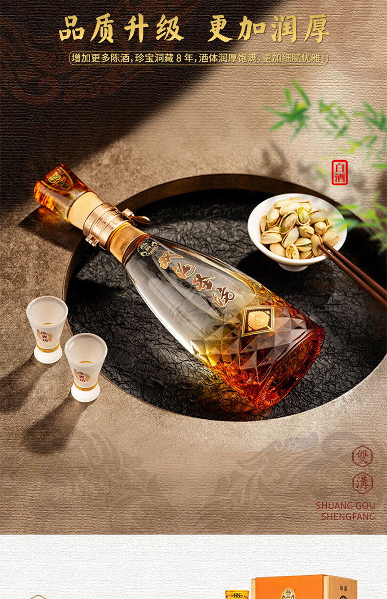 Shuanggou Zhenbaofang Shengfang (1000 + 50) ML * 4/caja regalo de vacaciones de licor de sabor fuerte 52% 1050 ml 4 botellas caja completa de Zhenbaofang Shengfang