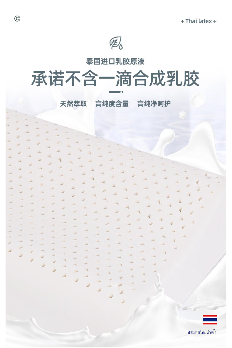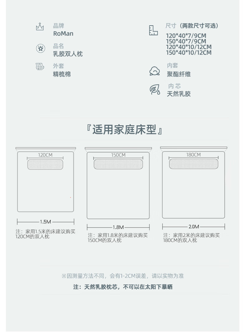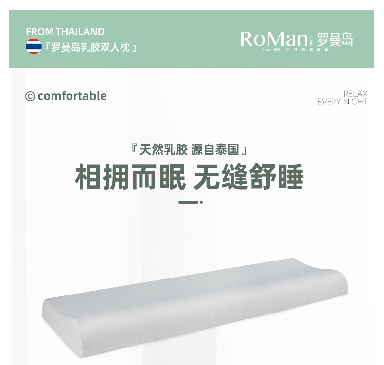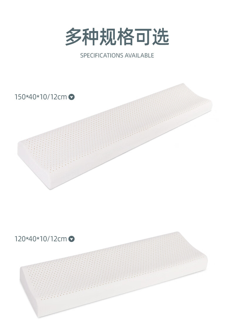 ROMANISLAND natural latex long pillow double pillow 1.2m 1.5m 1.8 extended one-piece cervical spine sleep pillow core for couples 150*40*7-9cm with two pillowcases