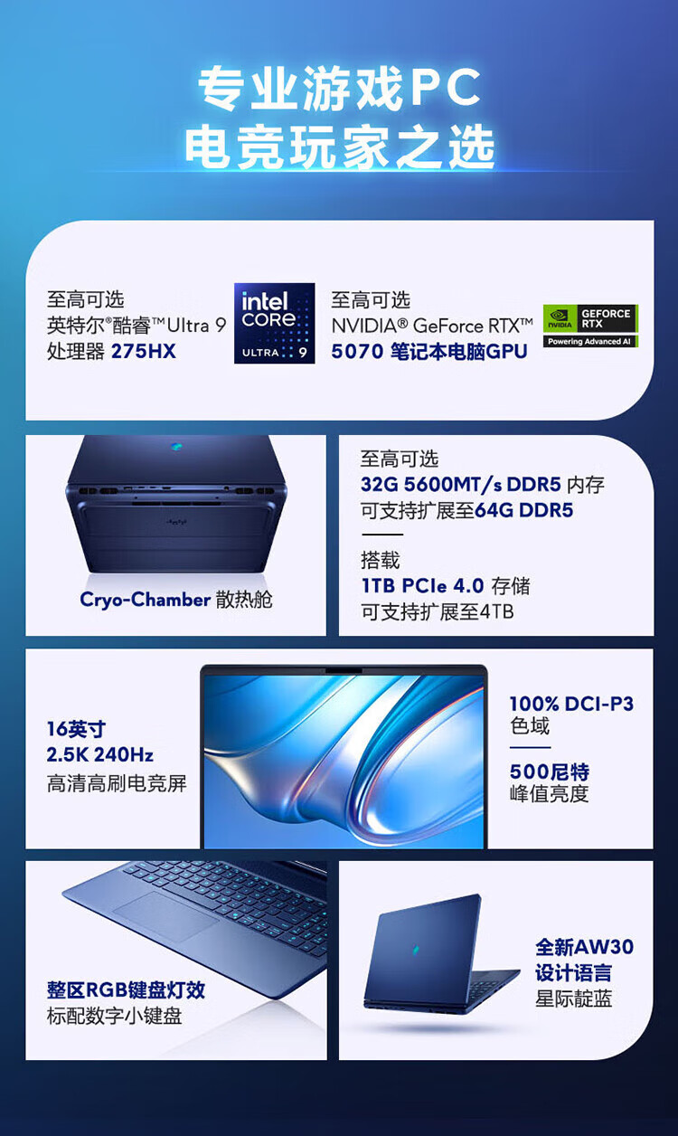 Dell Alienware Starship 16X 16-inch e-sports gaming notebook High-performance notebook computer with optional 5070 full-blood ray-tracing graphics card 2.5K screen gaming cartridge G16 Ultra7-255HX full-blooded 5060 240Hz flagship hot model 32G Samsung memory + 1T solid state customization