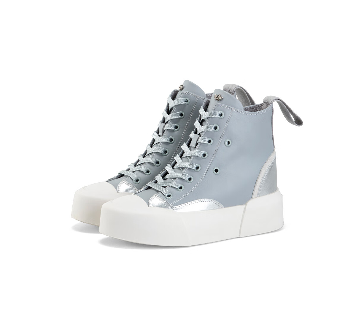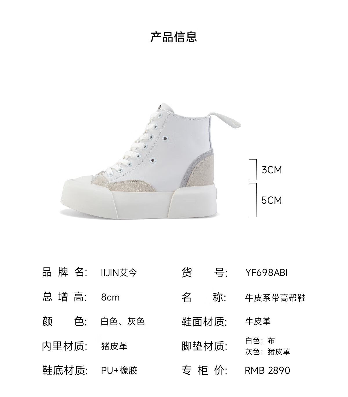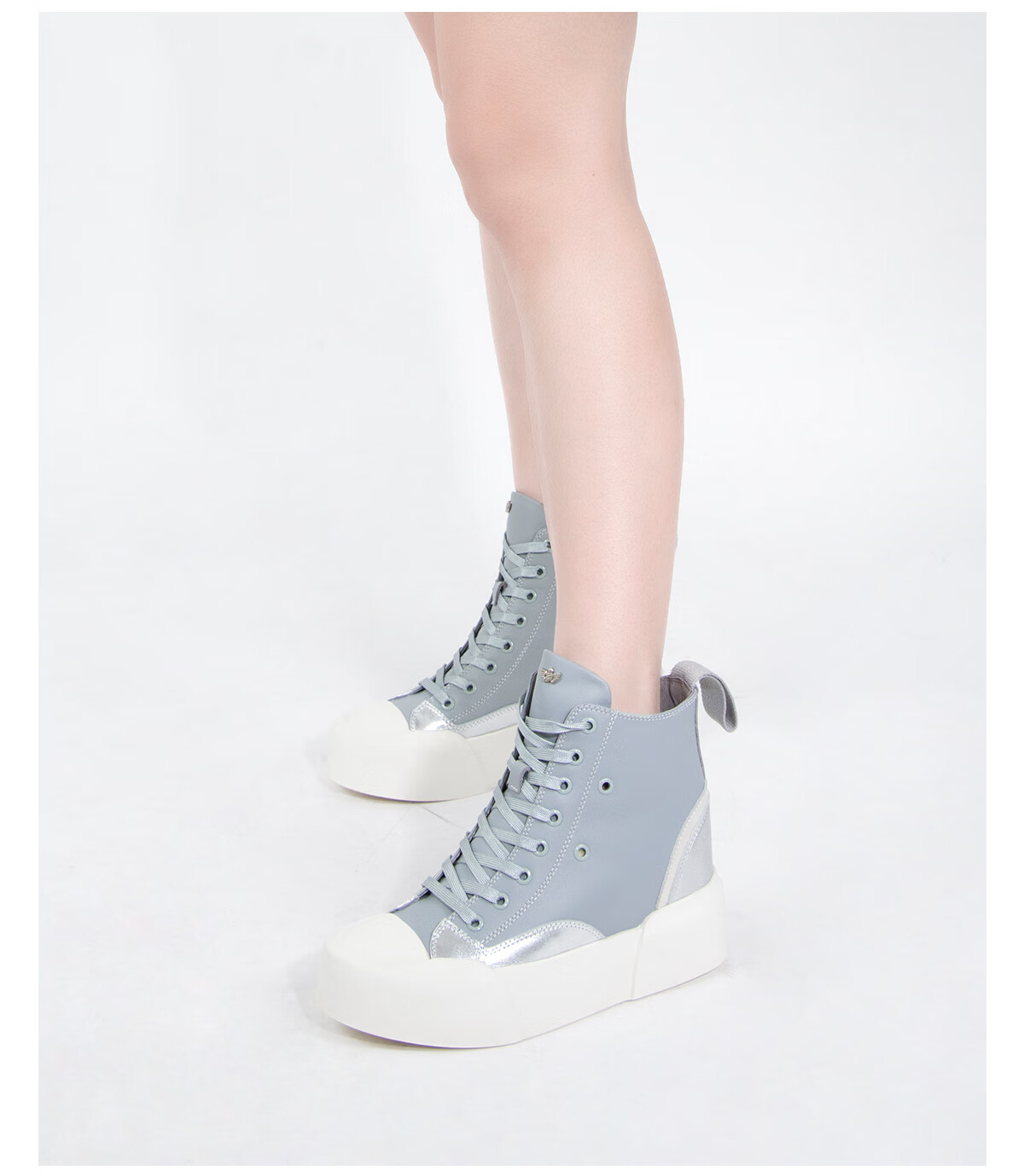 IiJin offizielle neue 8 cm dicke Sohle mit Innenerhöhung, einfache, vielseitige Nähte, lässige High-Top-Schuhe für Damen YF698ABI, Grau, 37