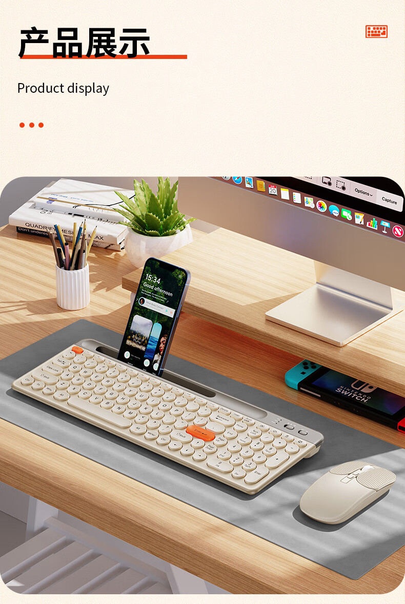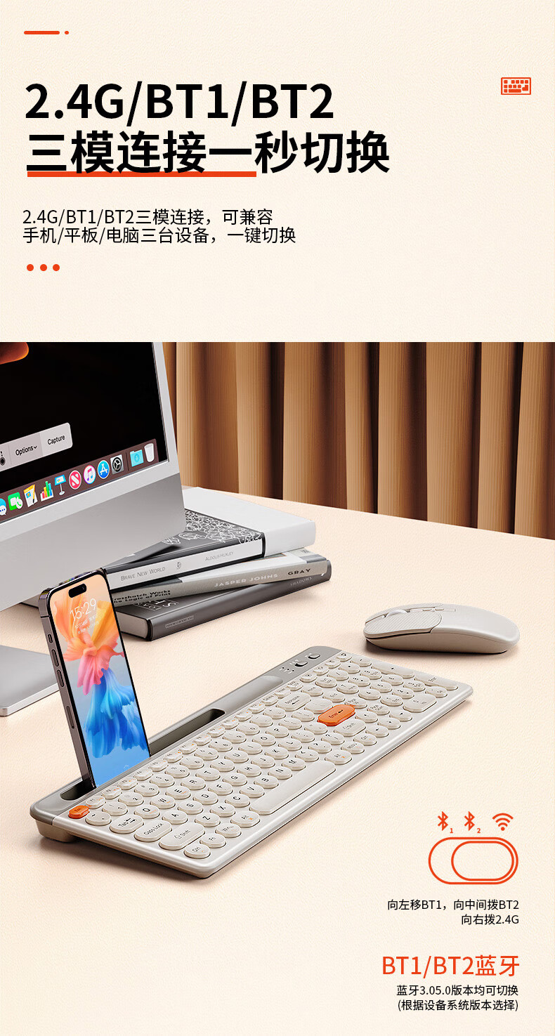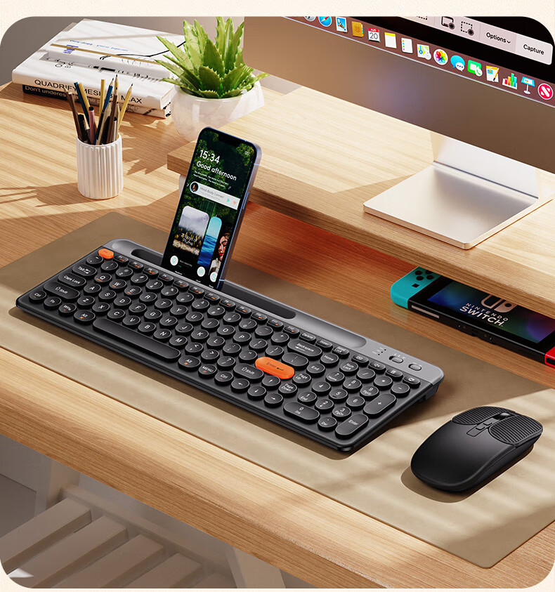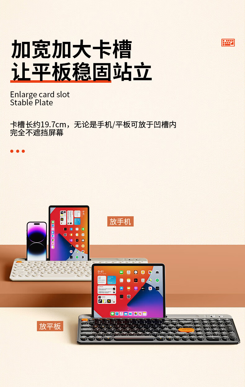 Yunmo (YUNMO) wireless Bluetooth keyboard and mouse set dual-mode rechargeable silent office punk ultra-thin portable office business desktop computer notes mac tablet ipad mobile phone universal [wireless/bluetooth dual-mode + widened bracket] Obsidian black-keyboard
