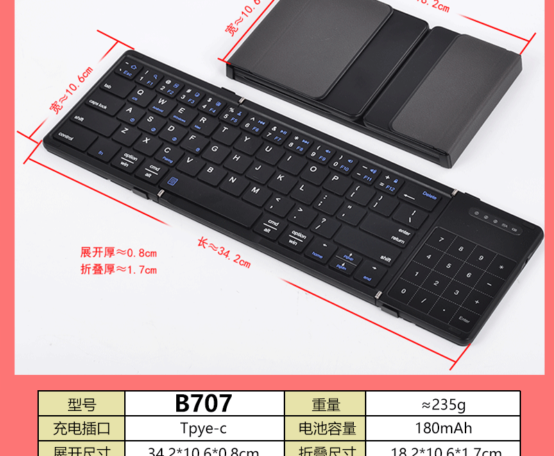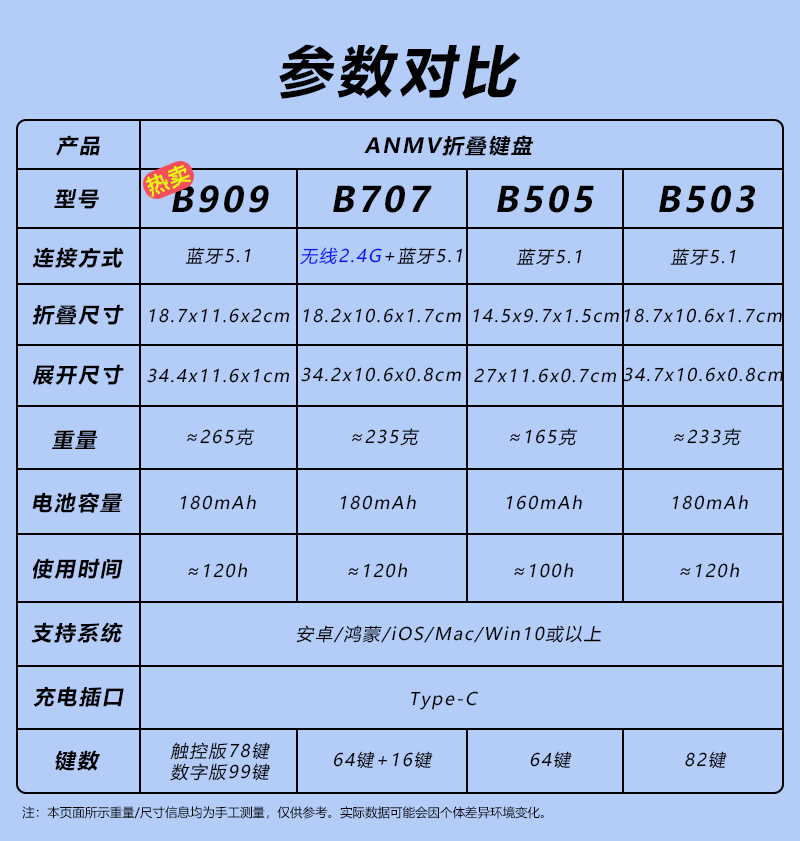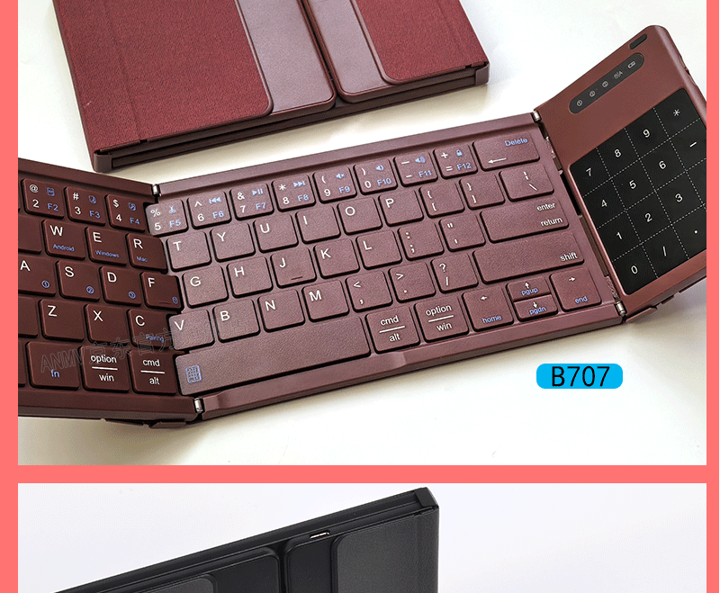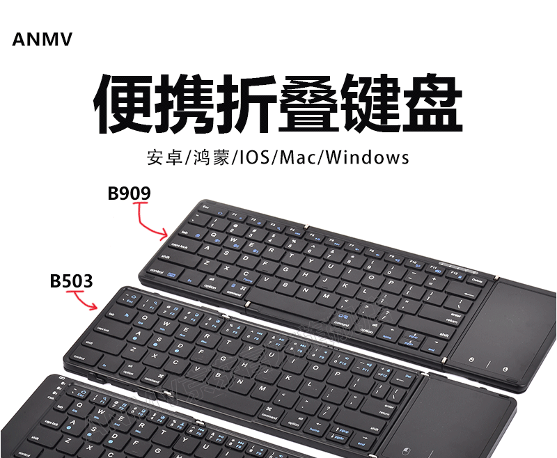 ANMV Bluetooth folding keyboard portable full-size office wireless mouse set ipad tablet MateXT mobile phone Mac laptop digital key touch [B909 full-size digital model] Bluetooth keyboard + Bluetooth mouse