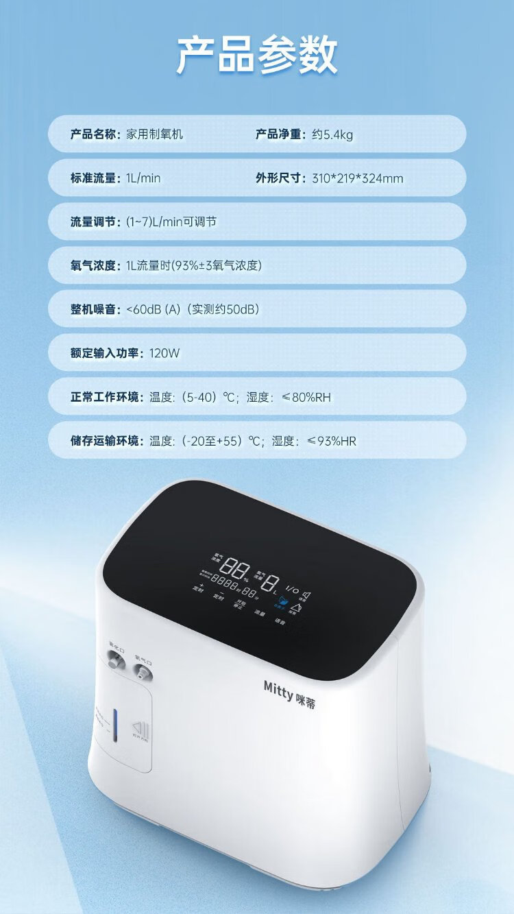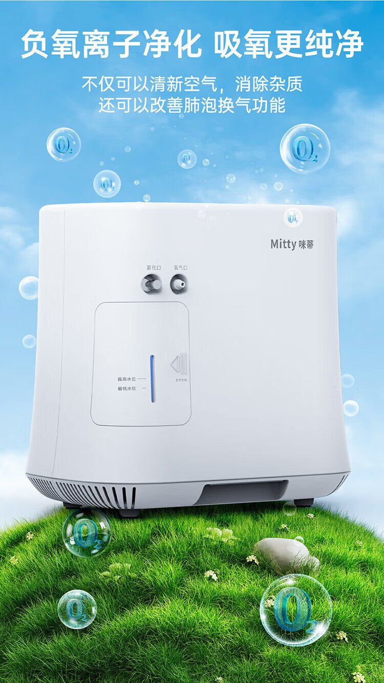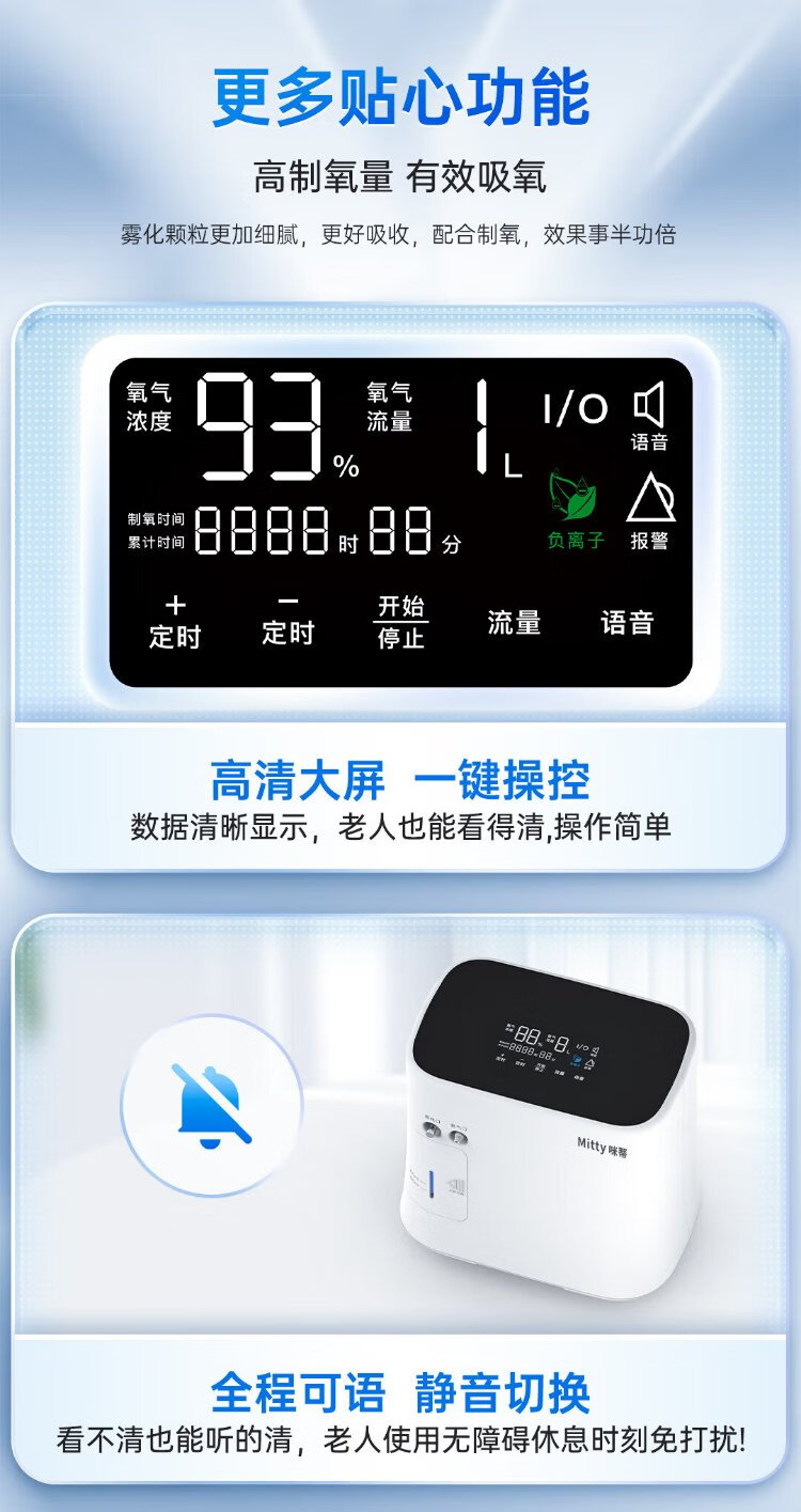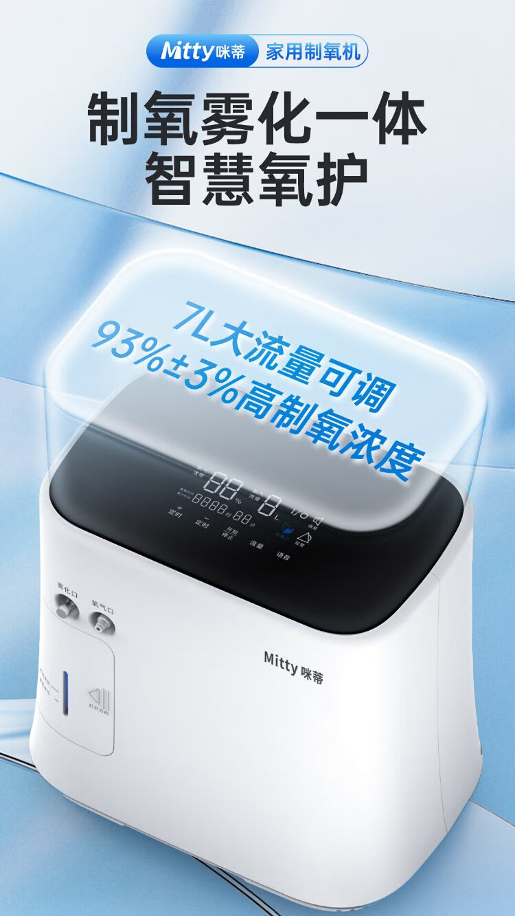 Mitty home health care oxygen concentrator 1-7L large flow adjustable portable oxygen concentrator for the elderly and pregnant women accessories with atomized soft sound flow adjustable oxygen machine flagship atomized model 7L flow + light sound + negative oxygen ions + free oxygen gift bag