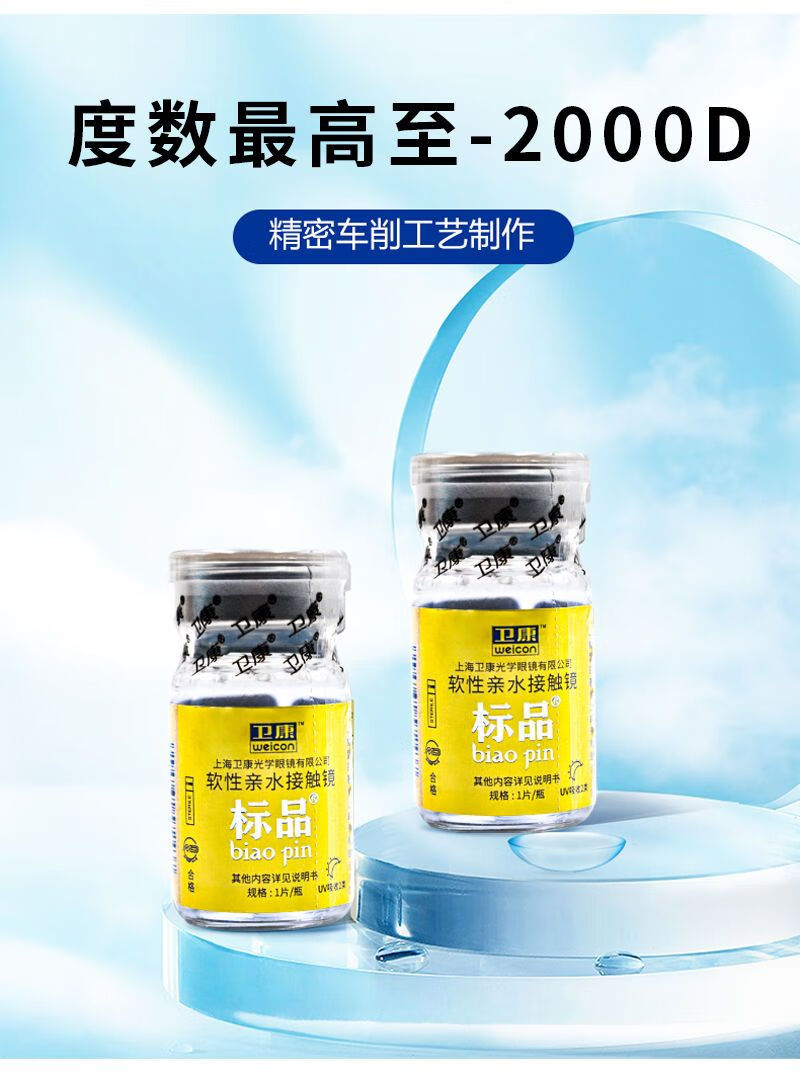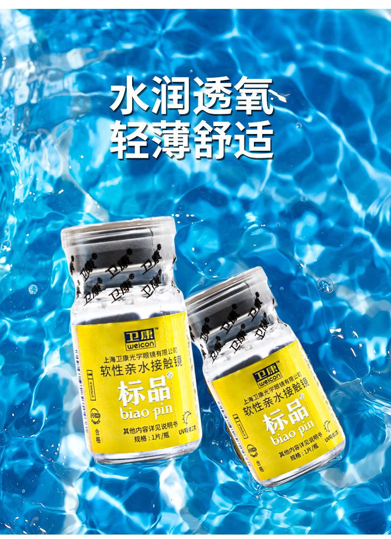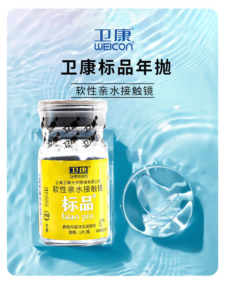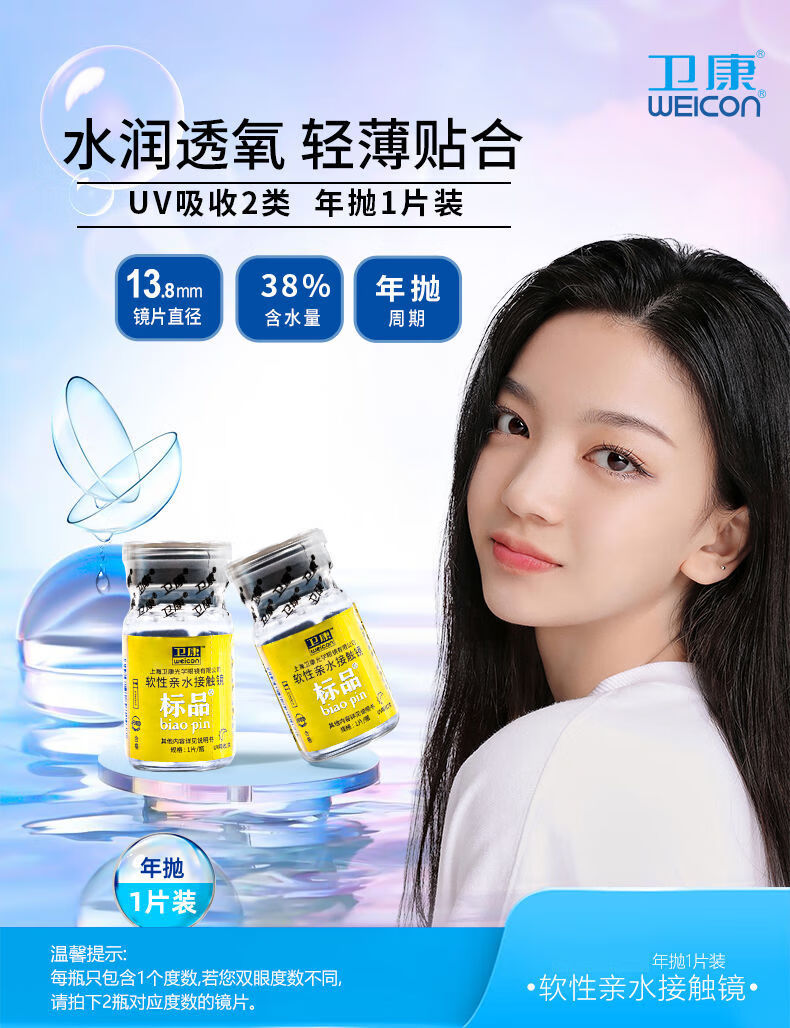 Weikang contact lenses, disposable 1 piece per year, standard gold, oxygen permeable, comfortable, transparent height 2000, UV protection 1050 degrees