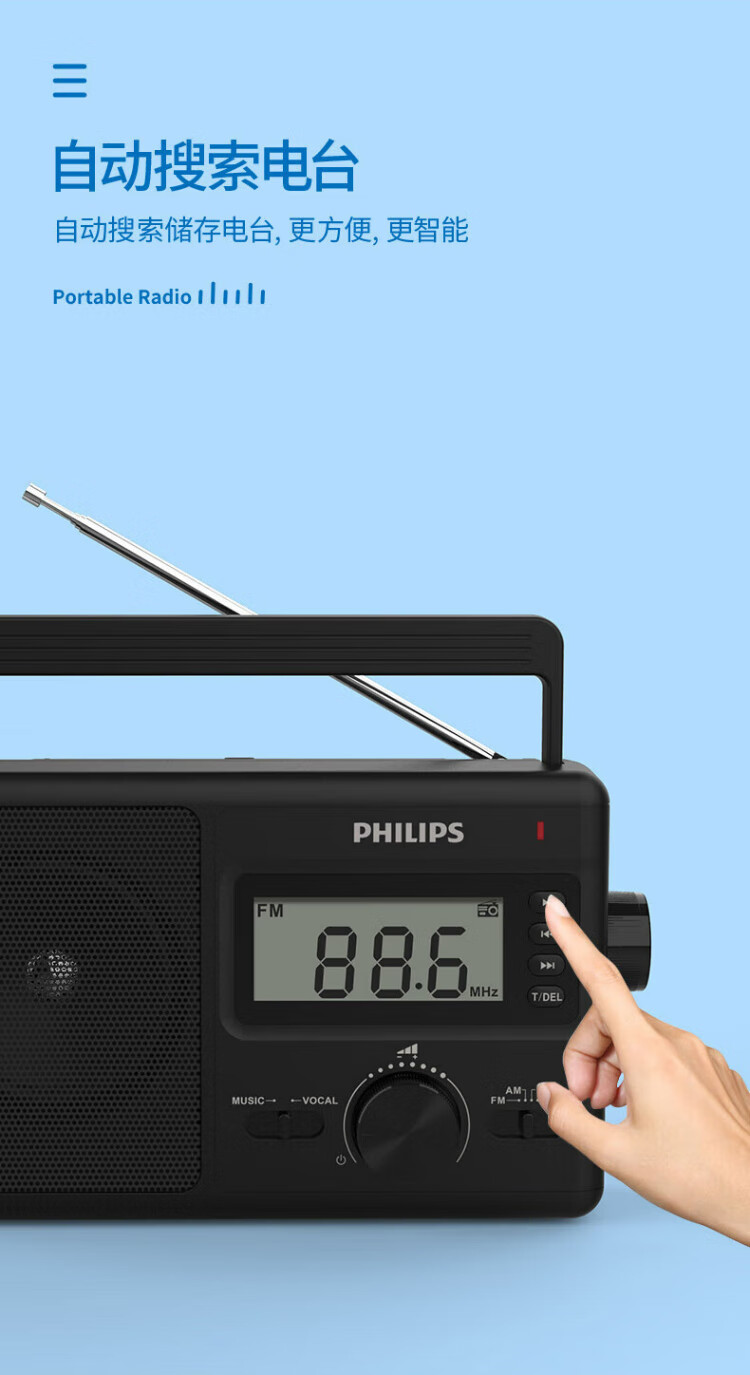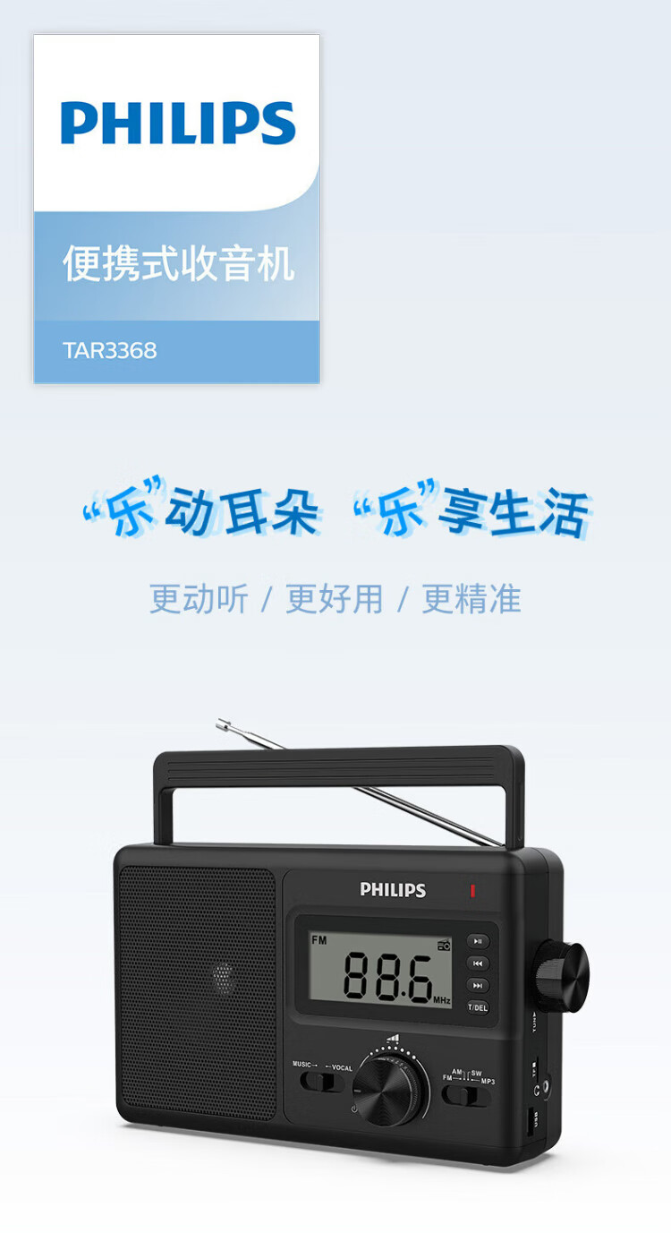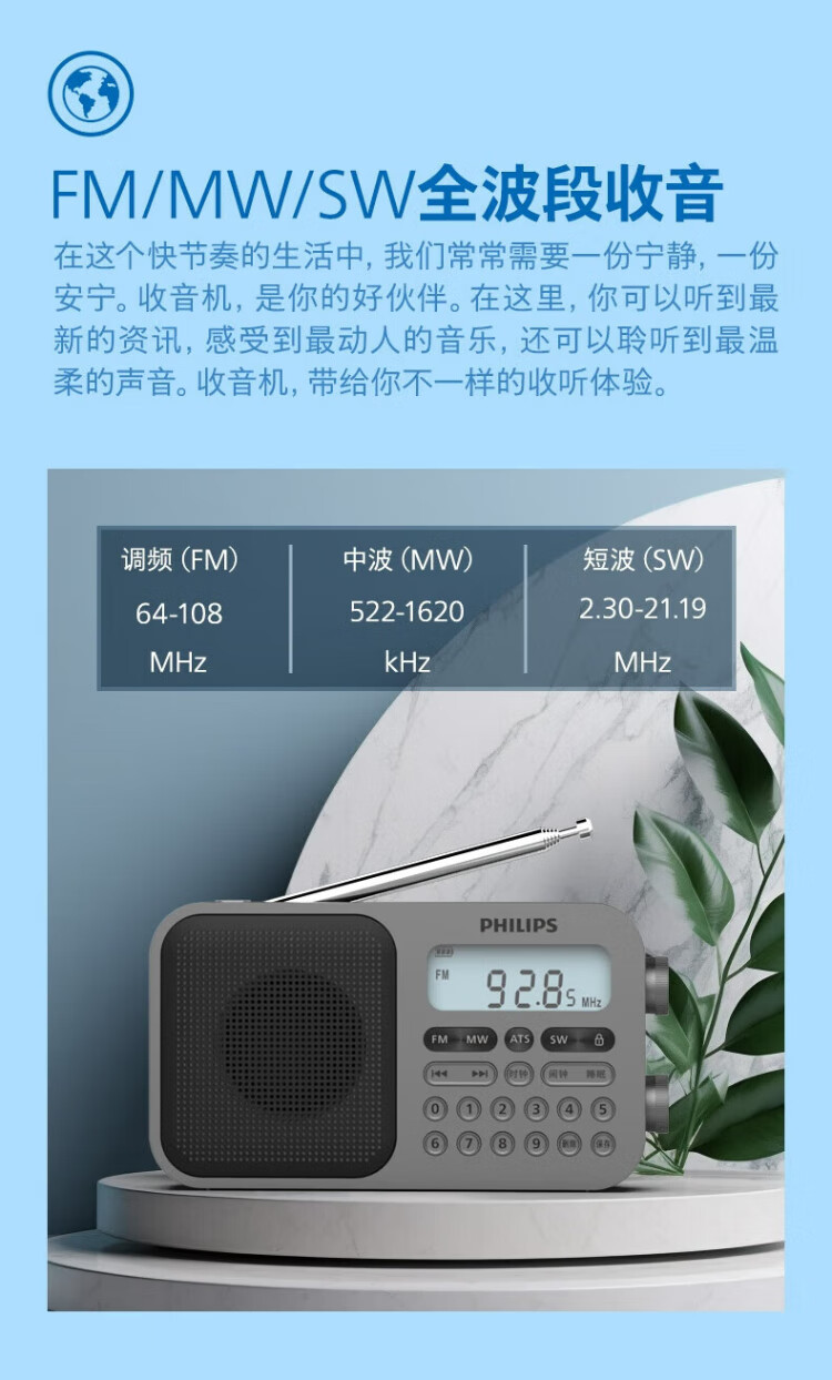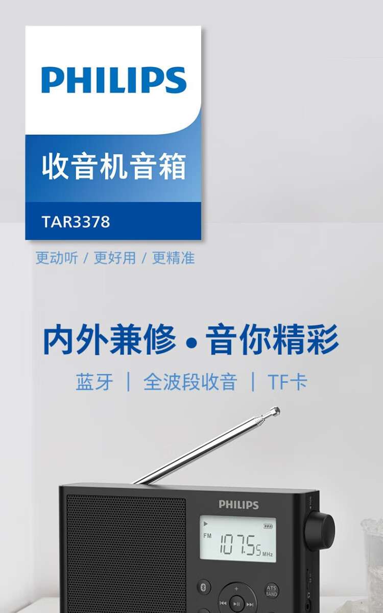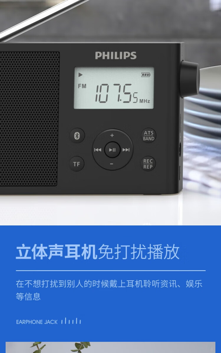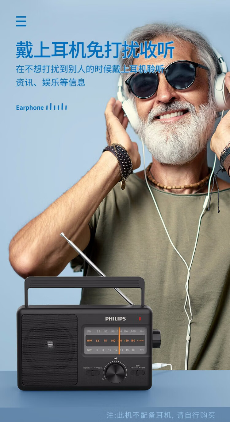 Philips TAR1368 portable small mini pocket radio broadcast FM radio for the elderly with long battery life outdoor artifact as a gift for parents TAR1368 comes with headphones + dual band