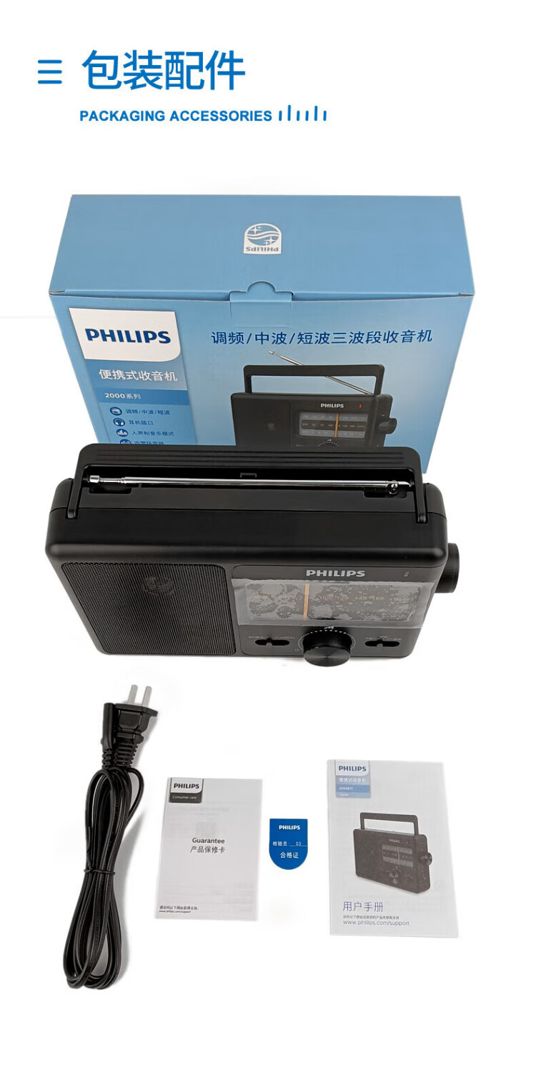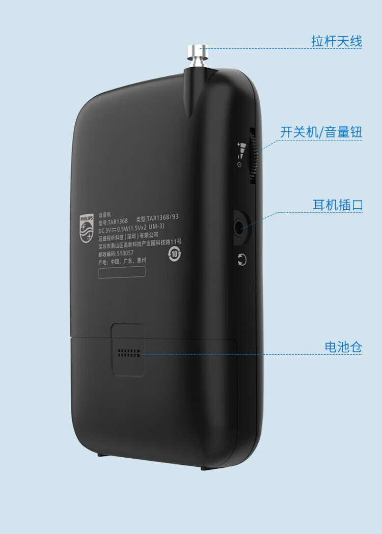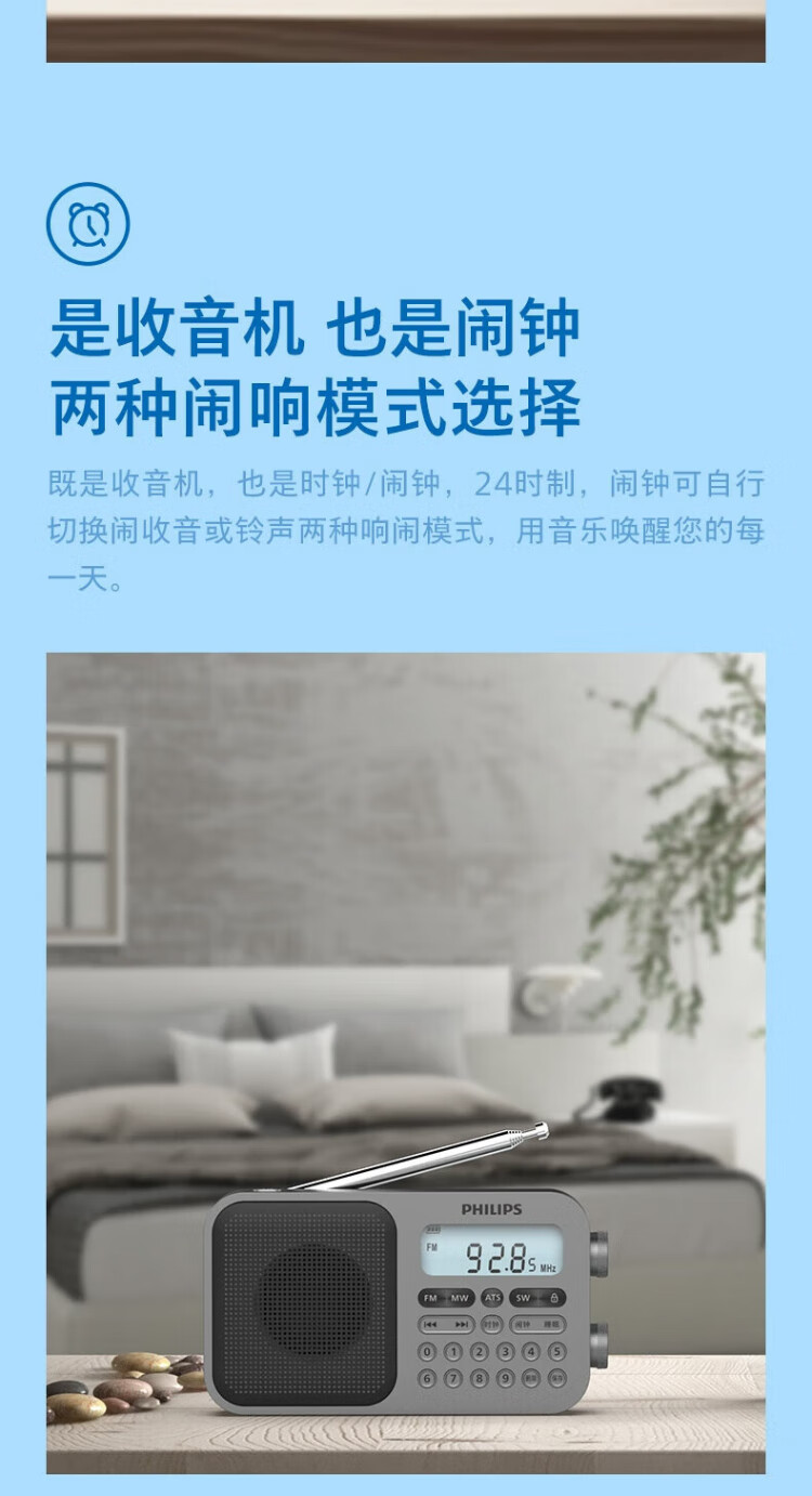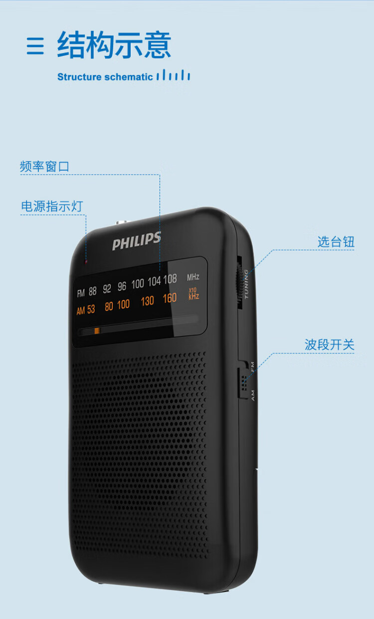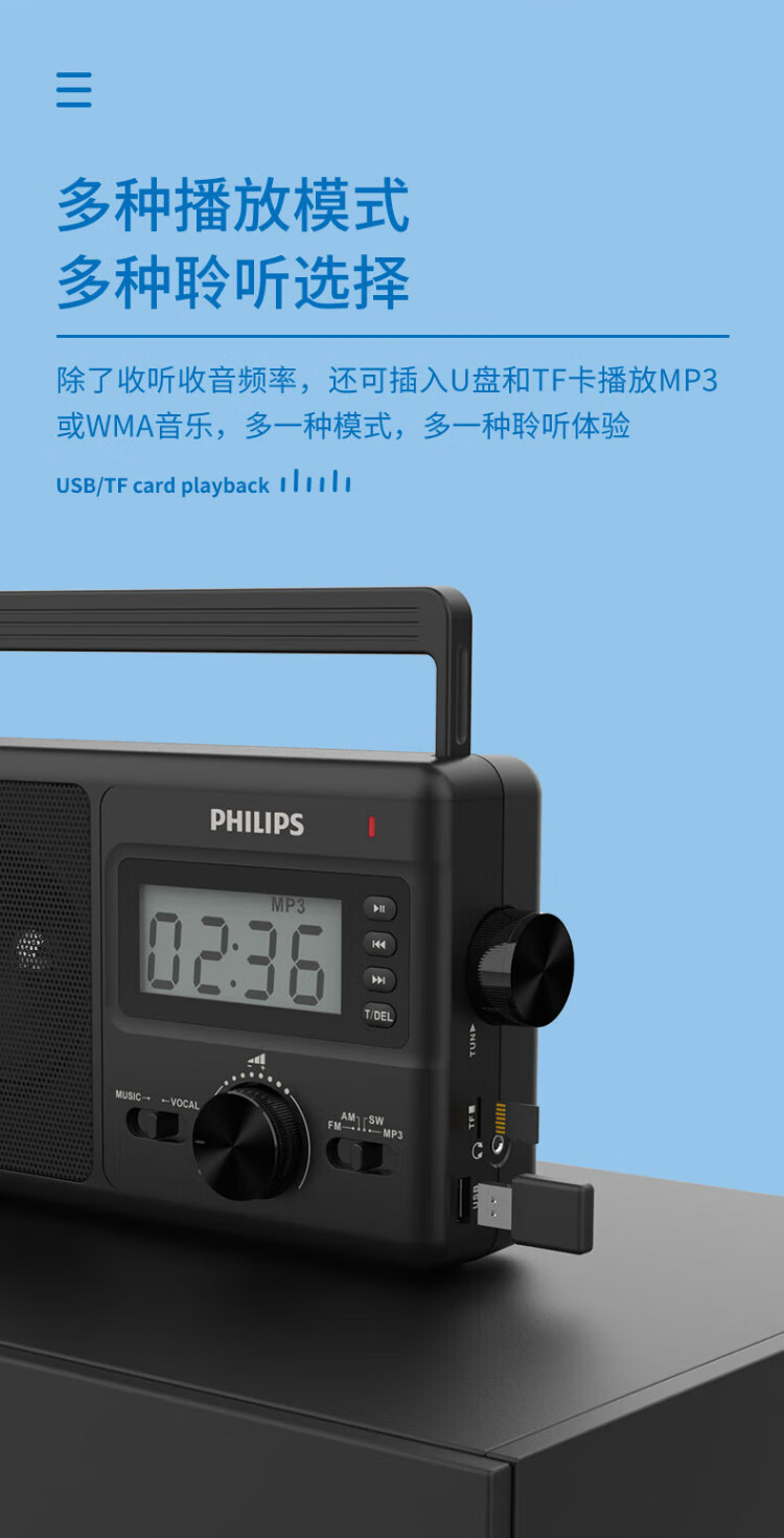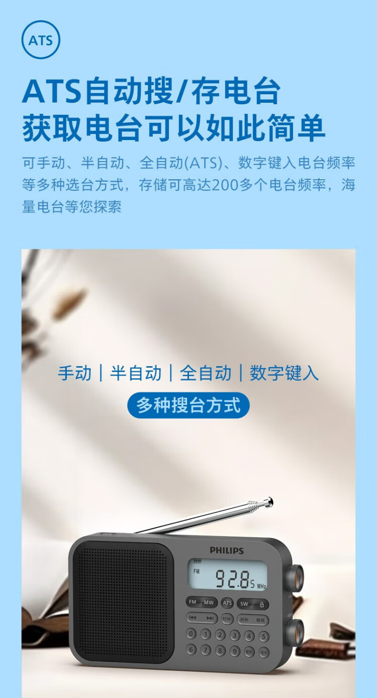 Philips TAR1368 portable small mini pocket radio broadcast FM radio for the elderly with long battery life outdoor artifact as a gift for parents TAR1368 comes with headphones + dual band