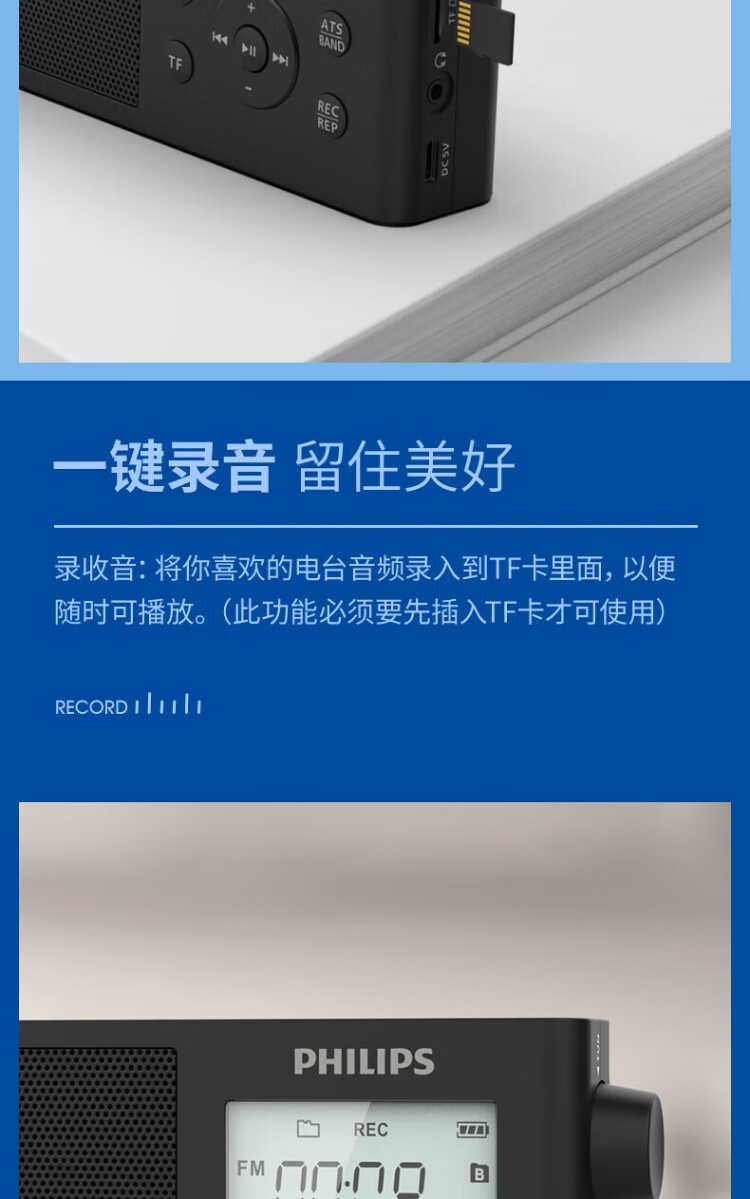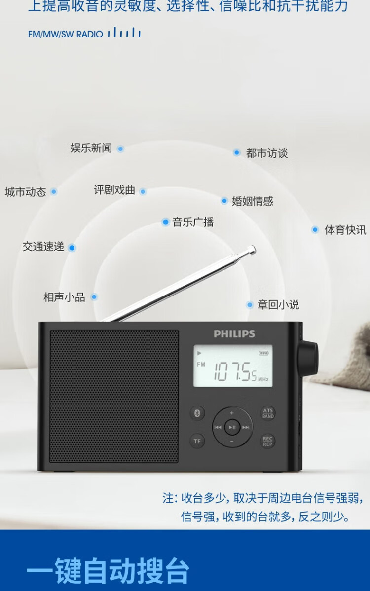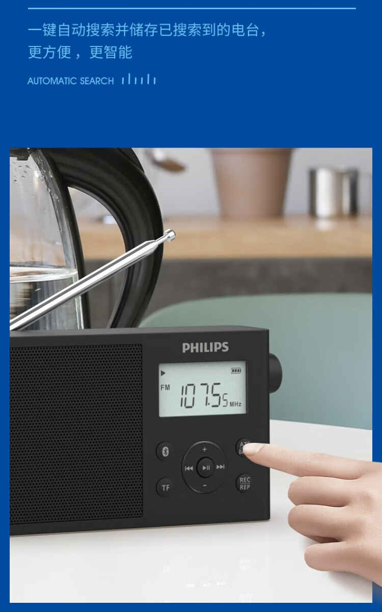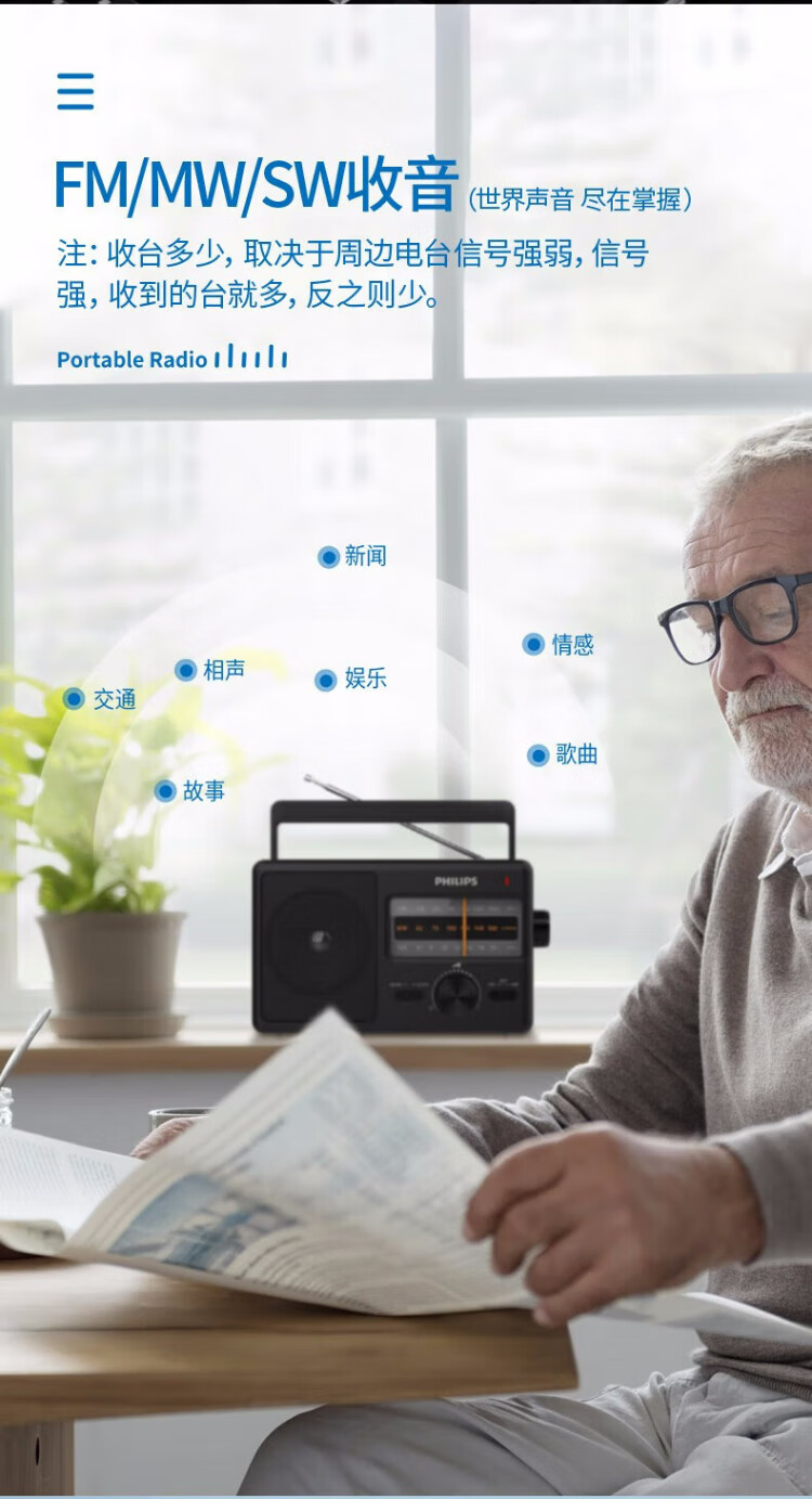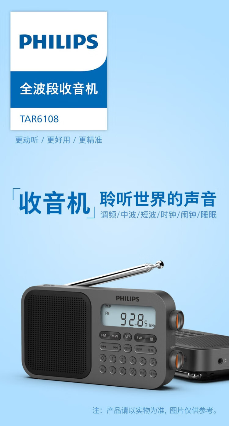 Philips TAR1368 portable small mini pocket radio broadcast FM radio for the elderly with long battery life outdoor artifact as a gift for parents TAR1368 comes with headphones + dual band