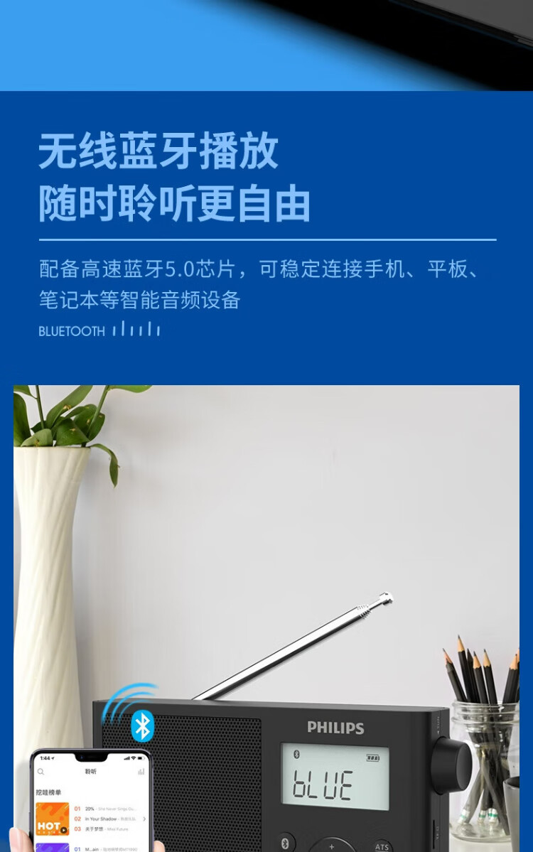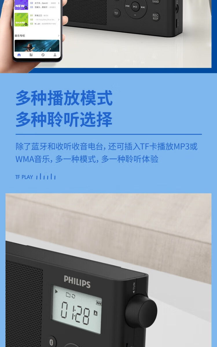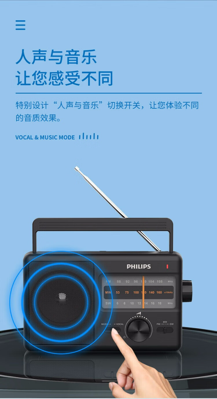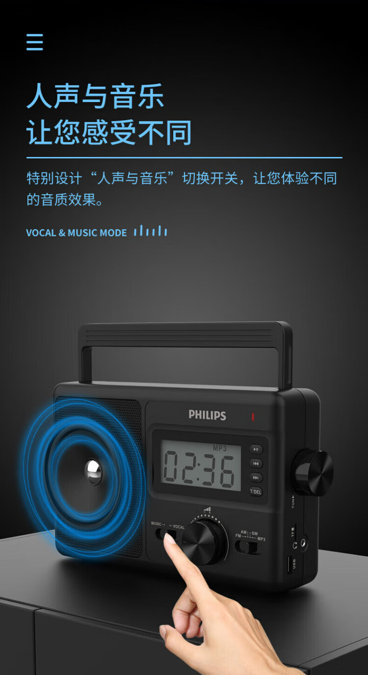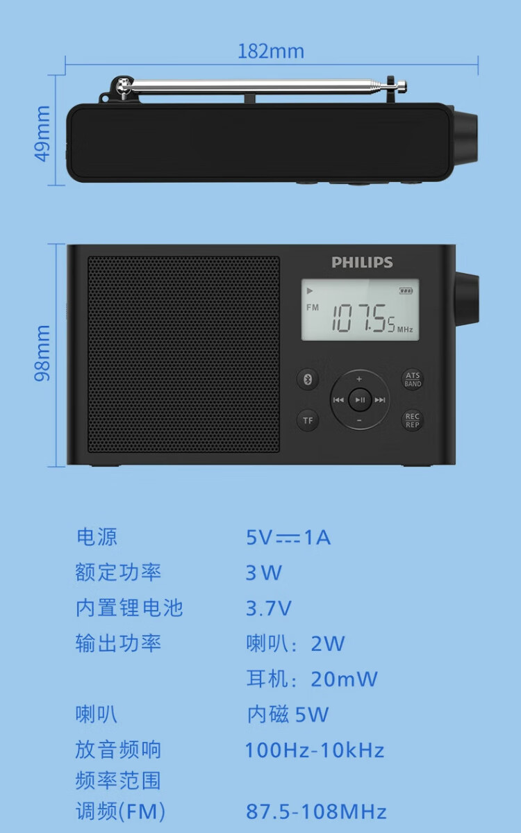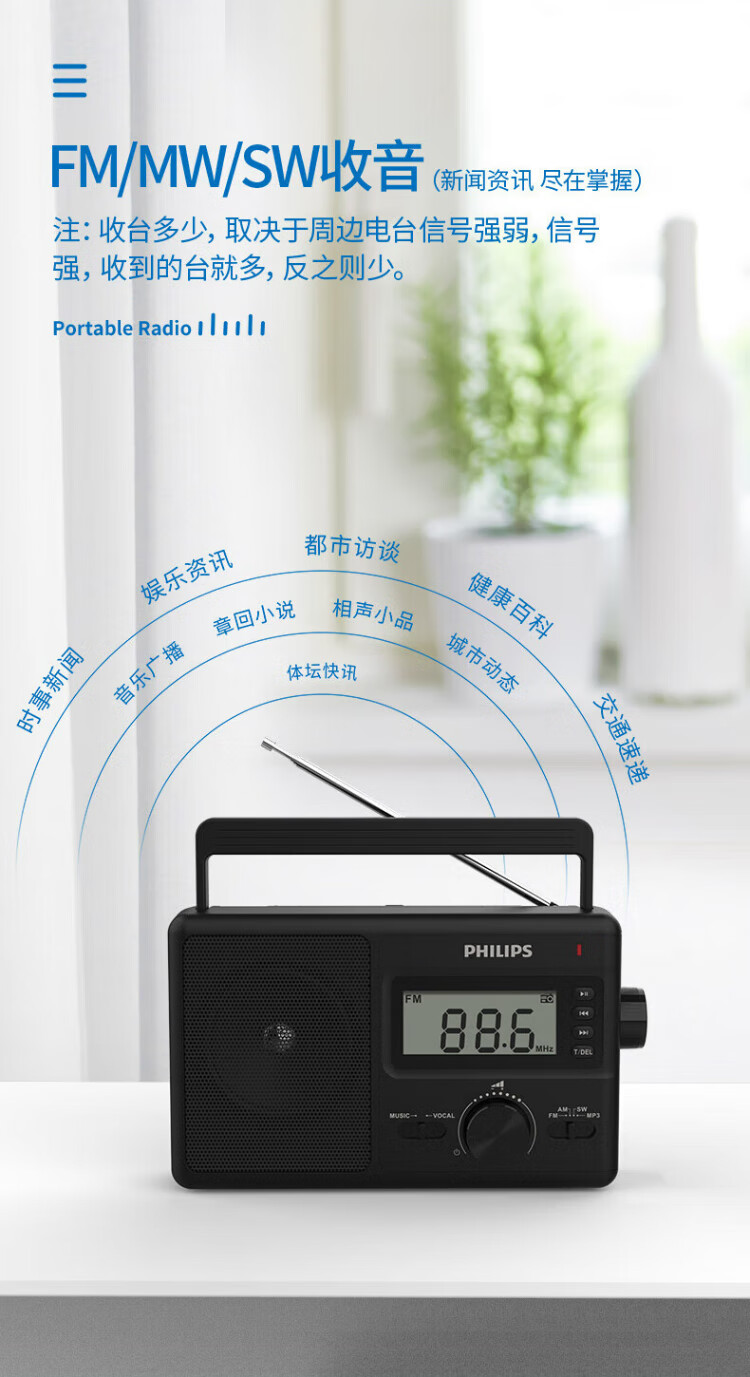 Philips TAR1368 portable small mini pocket radio broadcast FM radio for the elderly with long battery life outdoor artifact as a gift for parents TAR1368 comes with headphones + dual band
