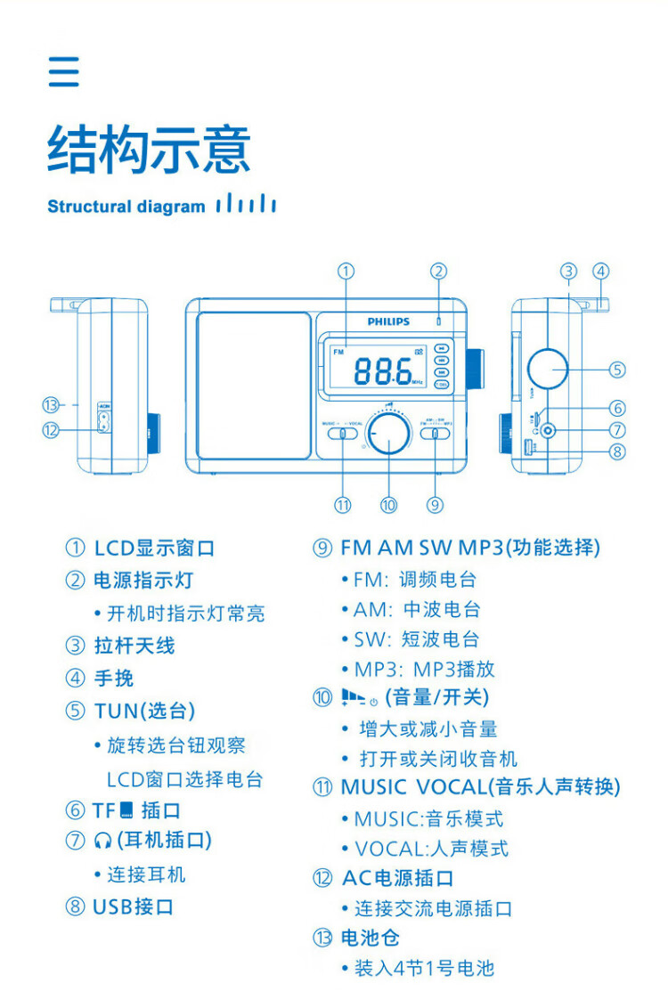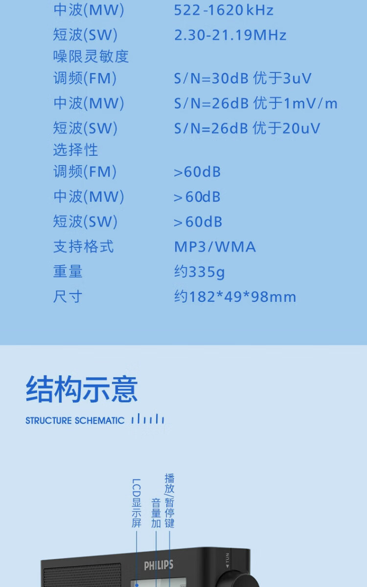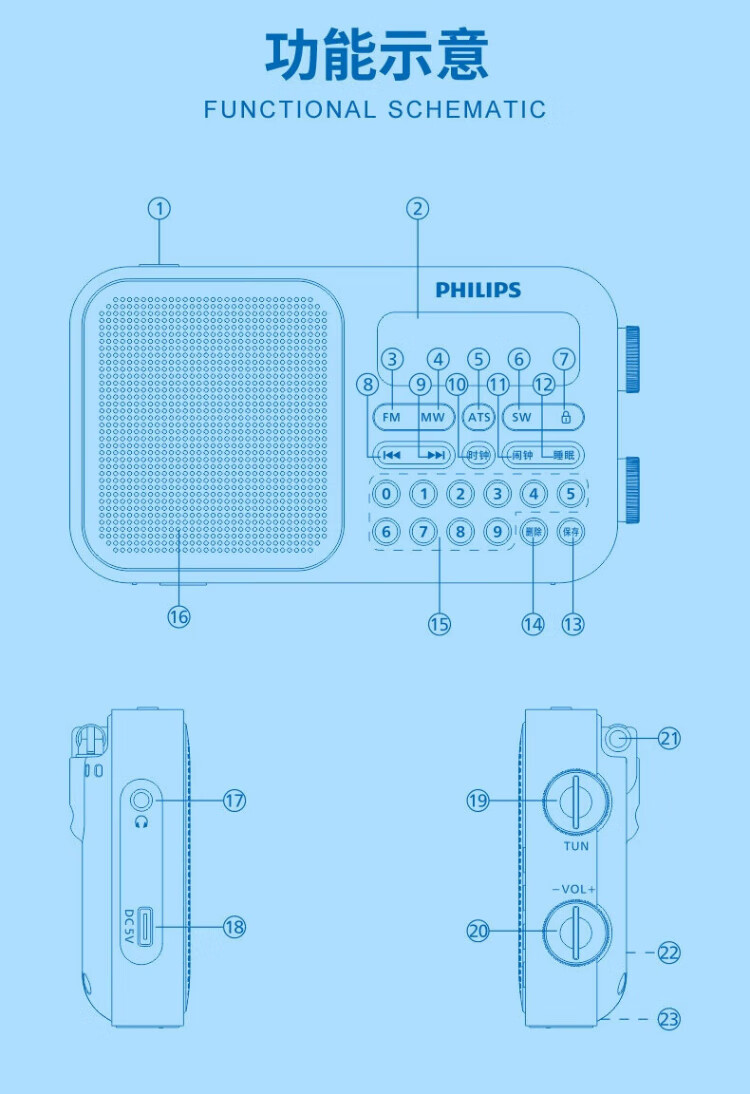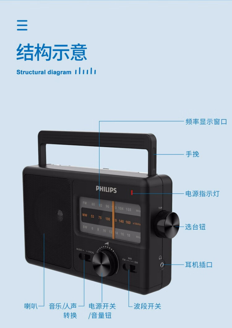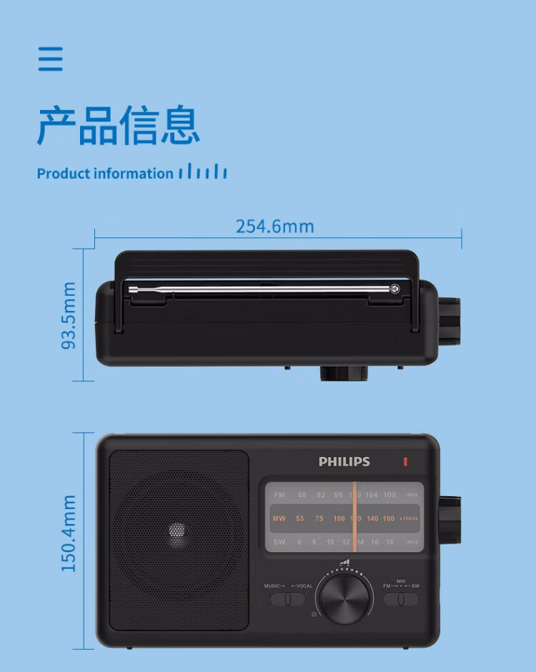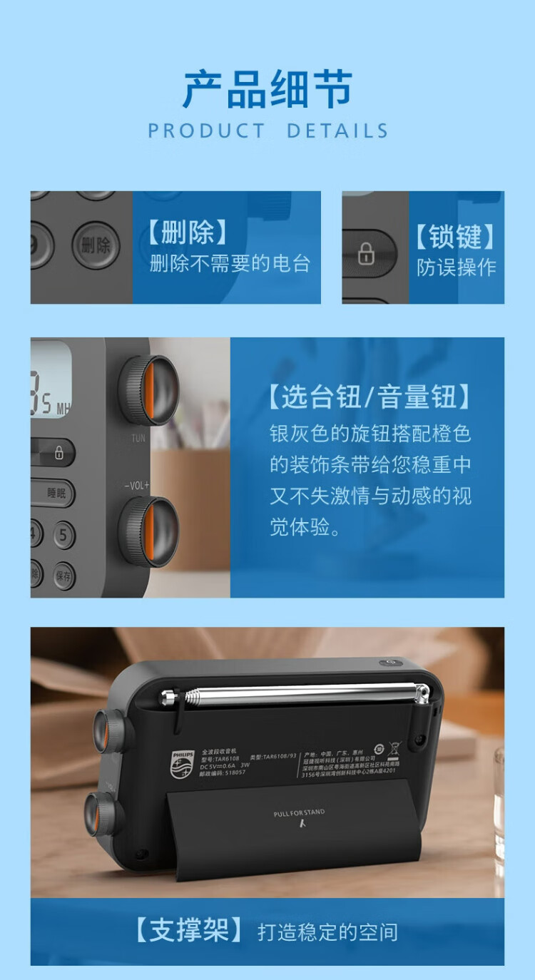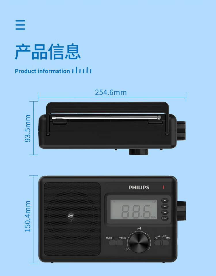 Philips TAR1368 portable small mini pocket radio broadcast FM radio for the elderly with long battery life outdoor artifact as a gift for parents TAR1368 comes with headphones + dual band