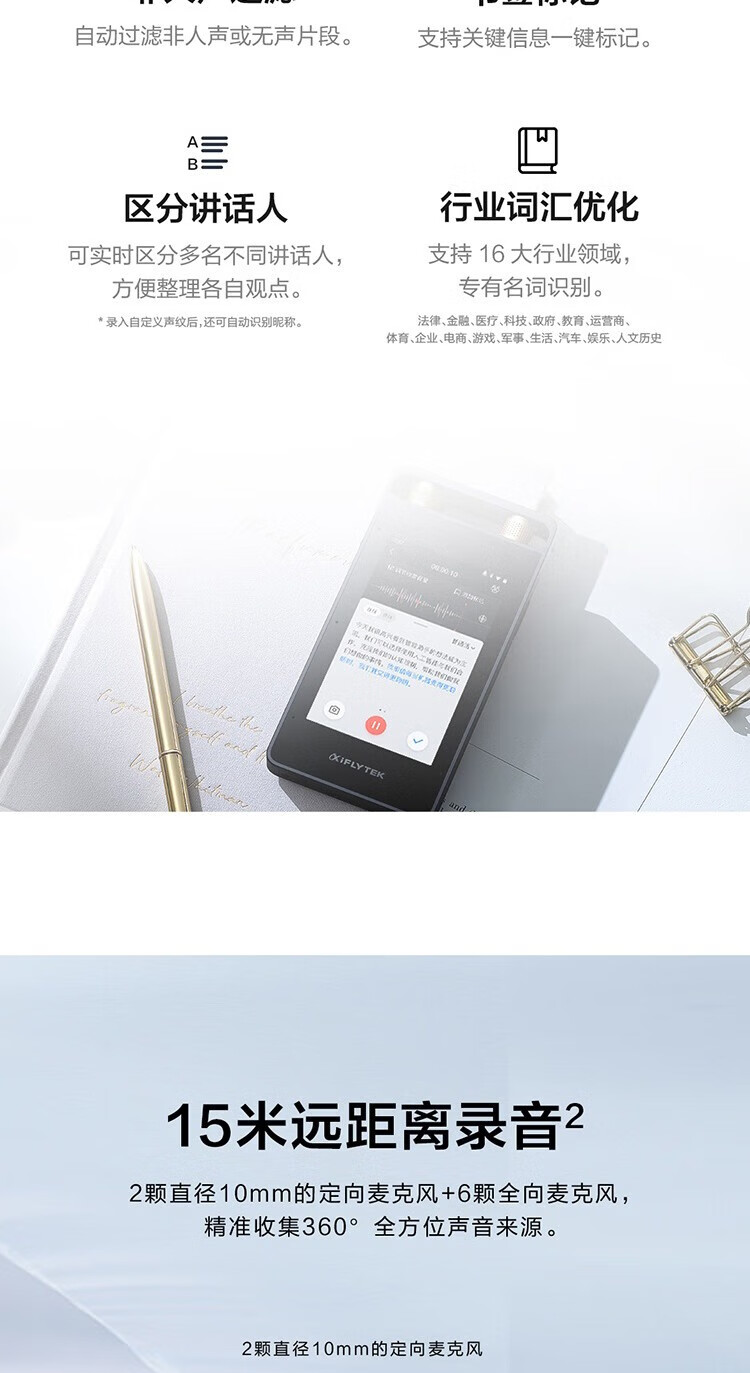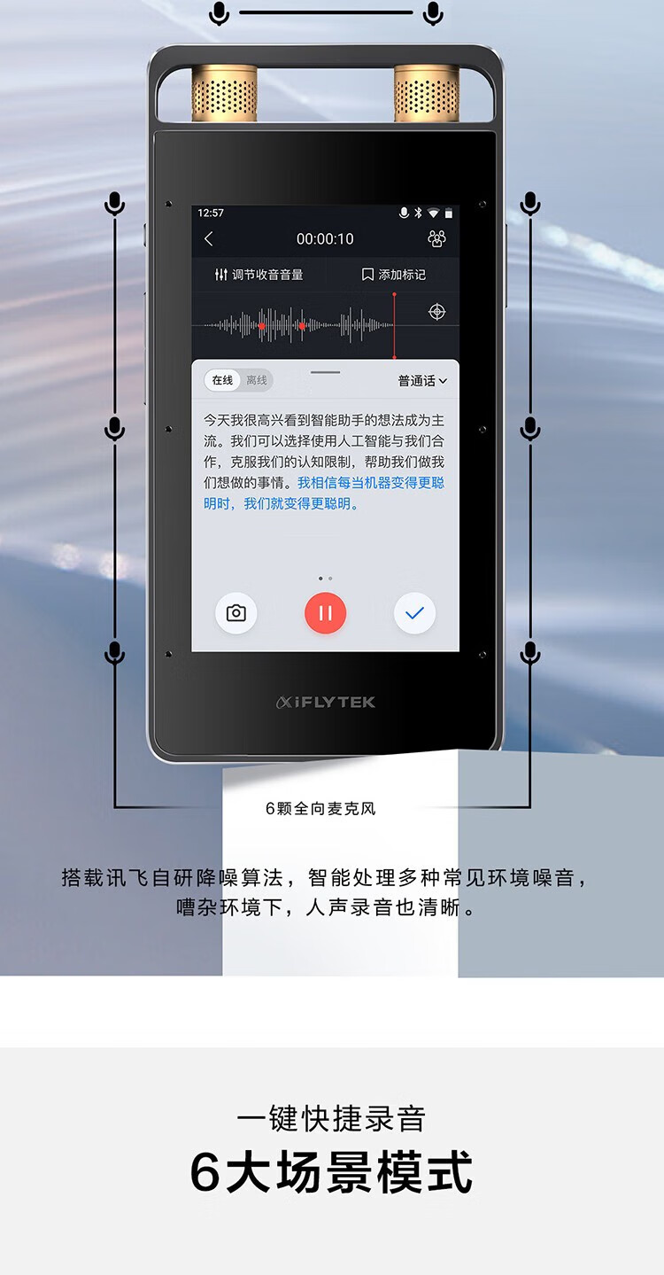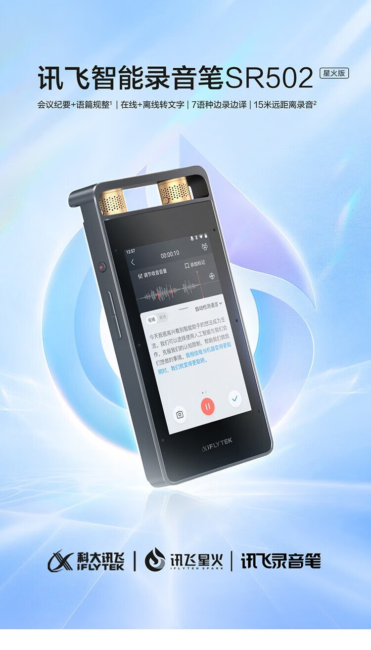 IFLYTEK Smart Recording Pen SR502T Spark Edition 32G+10G Cloud Storage Recording Noise Reduction Real-time Online and Offline Transfer SR901+64G Touch Screen