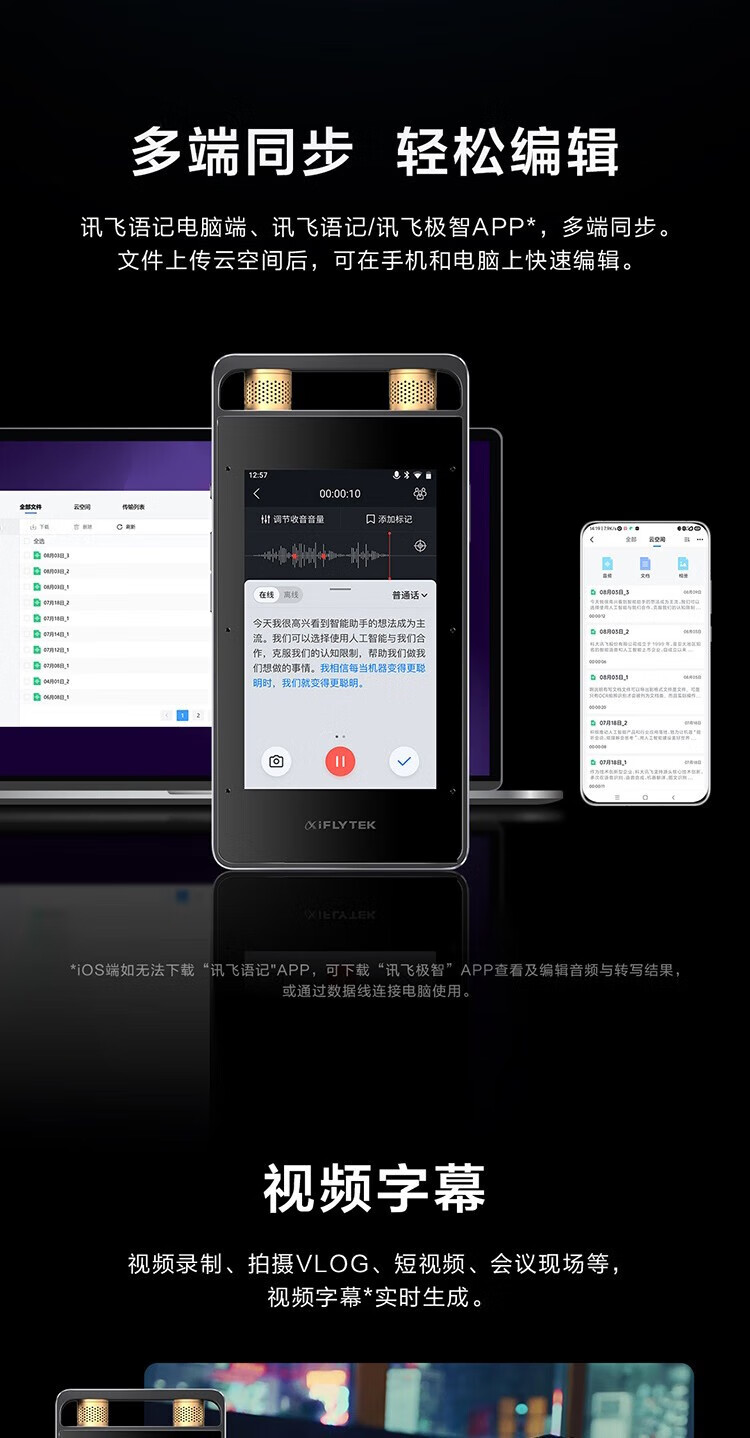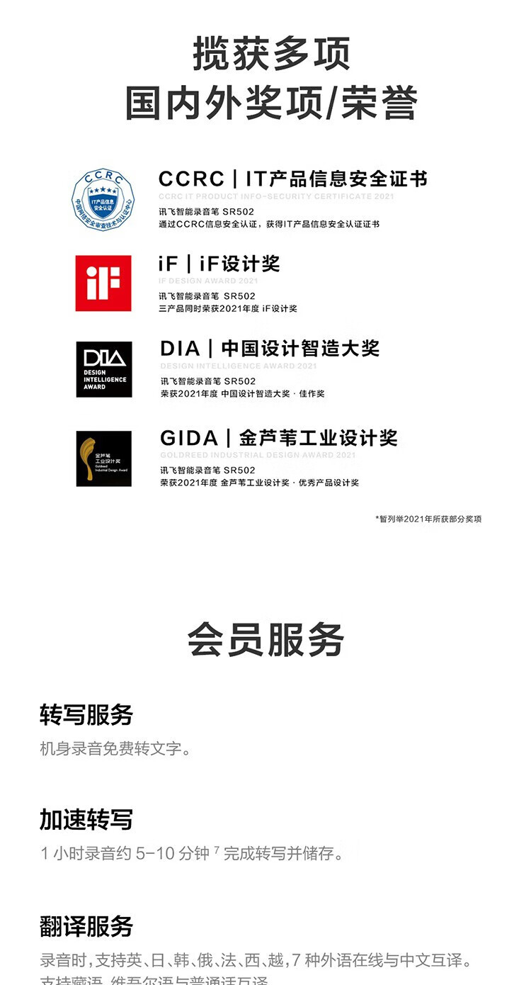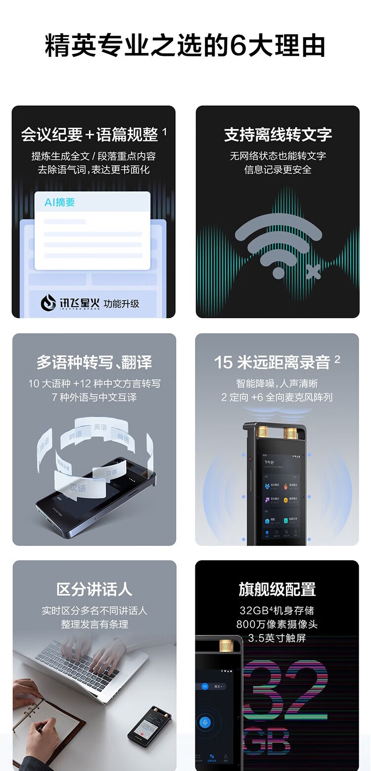 IFLYTEK Smart Recording Pen SR502T Spark Edition 32G+10G Cloud Storage Recording Noise Reduction Real-time Online and Offline Transfer SR901+64G Touch Screen