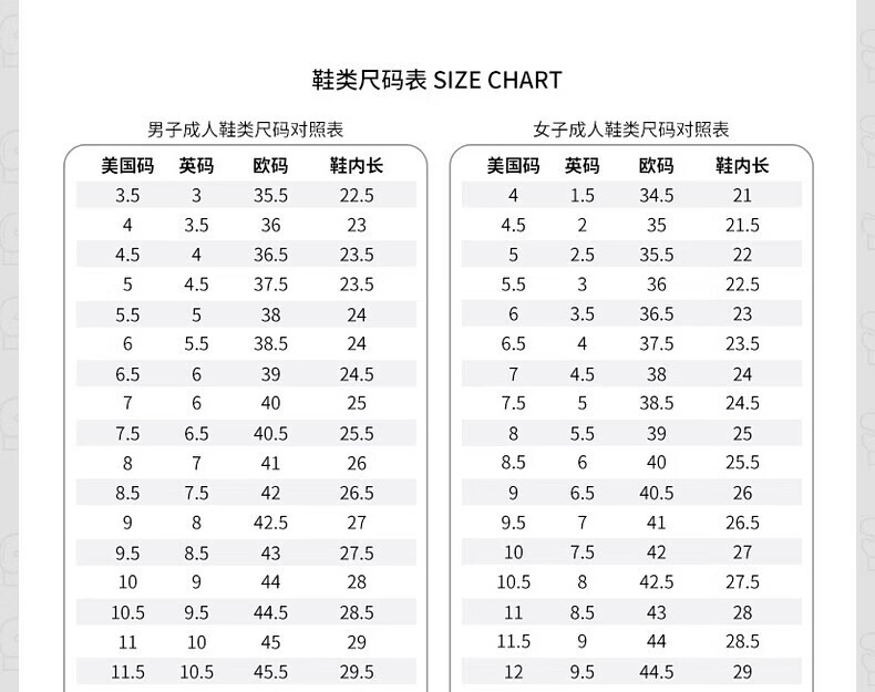 China (cm) 36 - 37 38 - 39 40 - 42 43 - 44 45 - 47