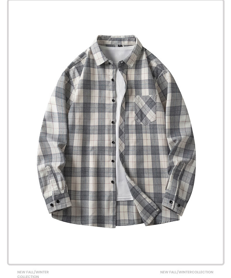 nasawassup official fashion brand co-branded shirt jacket men's autumn and winter Japanese plaid shirt trendy casual inner men's top white 2XL (recommended 130-150Jin [Jin equals 0.5 kg])