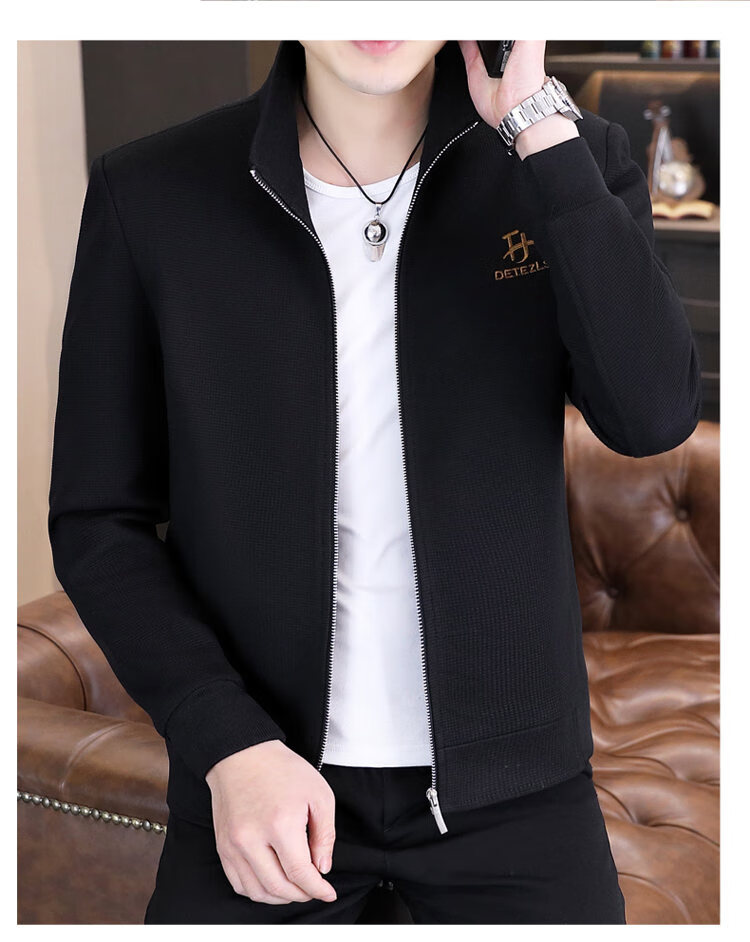 Playboy (PLAYBOY) men's new stand-up collar jacket zipper shirt top spring and autumn casual fashion Korean style youth handsome handsome boy jacket 2687 black L