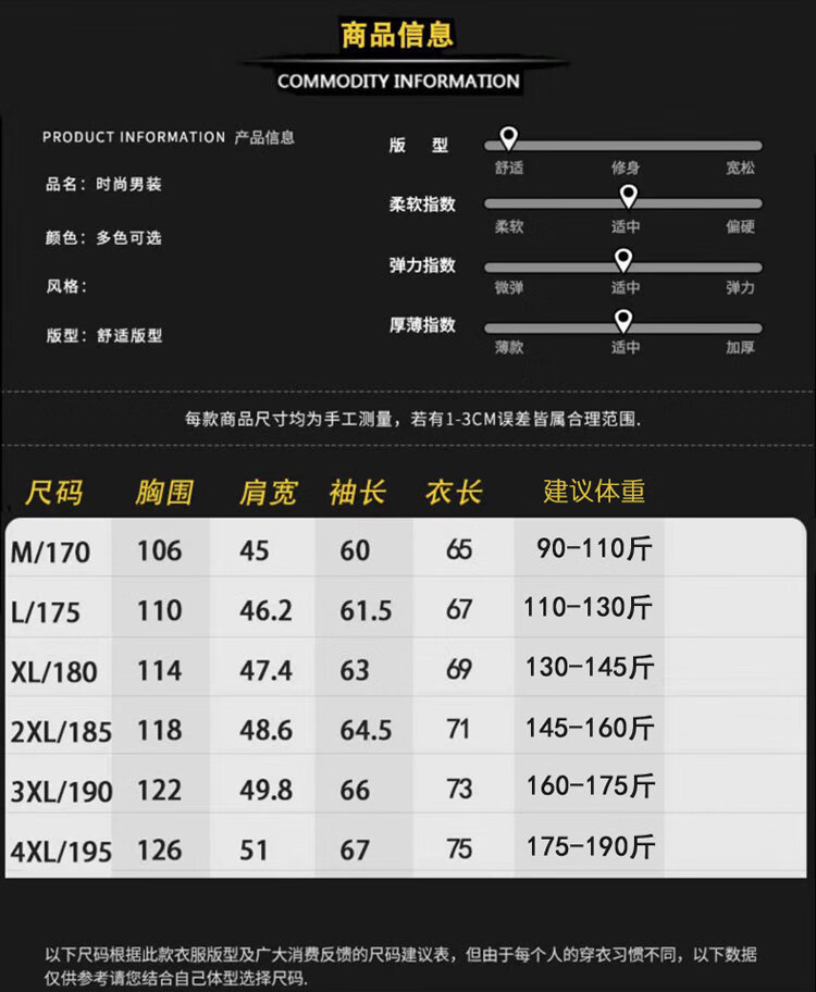 China (cm) 165 / 88-90 170 / 96-98 175 / 108-110 180 / 118-122 185 / 126-130