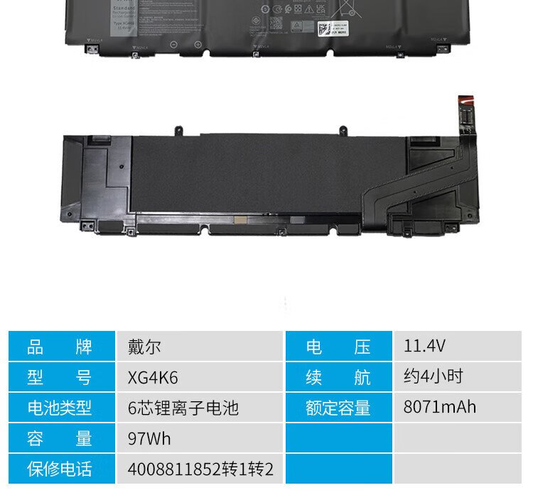 Dell laptop battery original XPS 17 9700 9710 Precision 5750 5760 XG4K6 built-in battery 97Wh 6-cell built-in battery