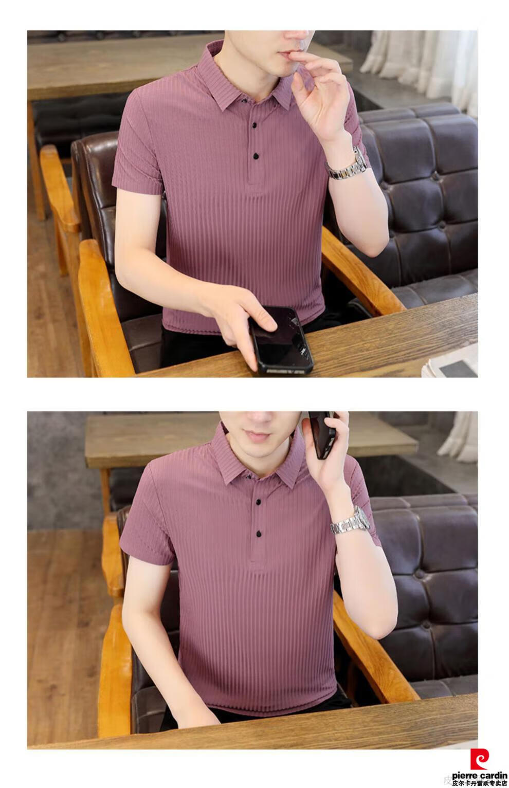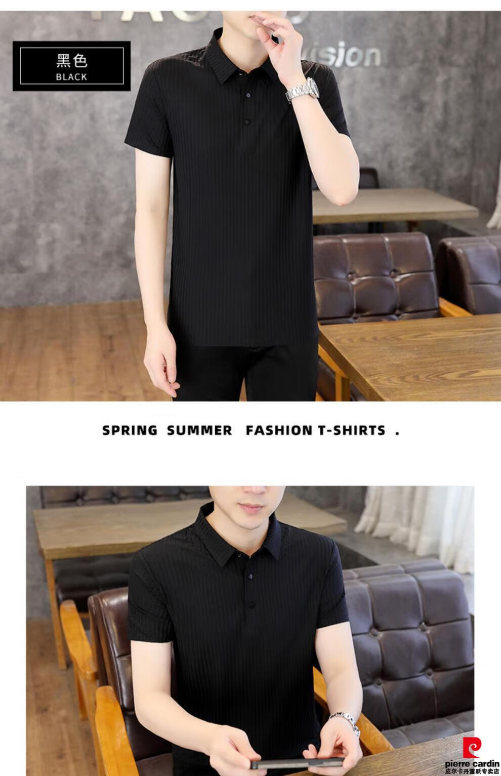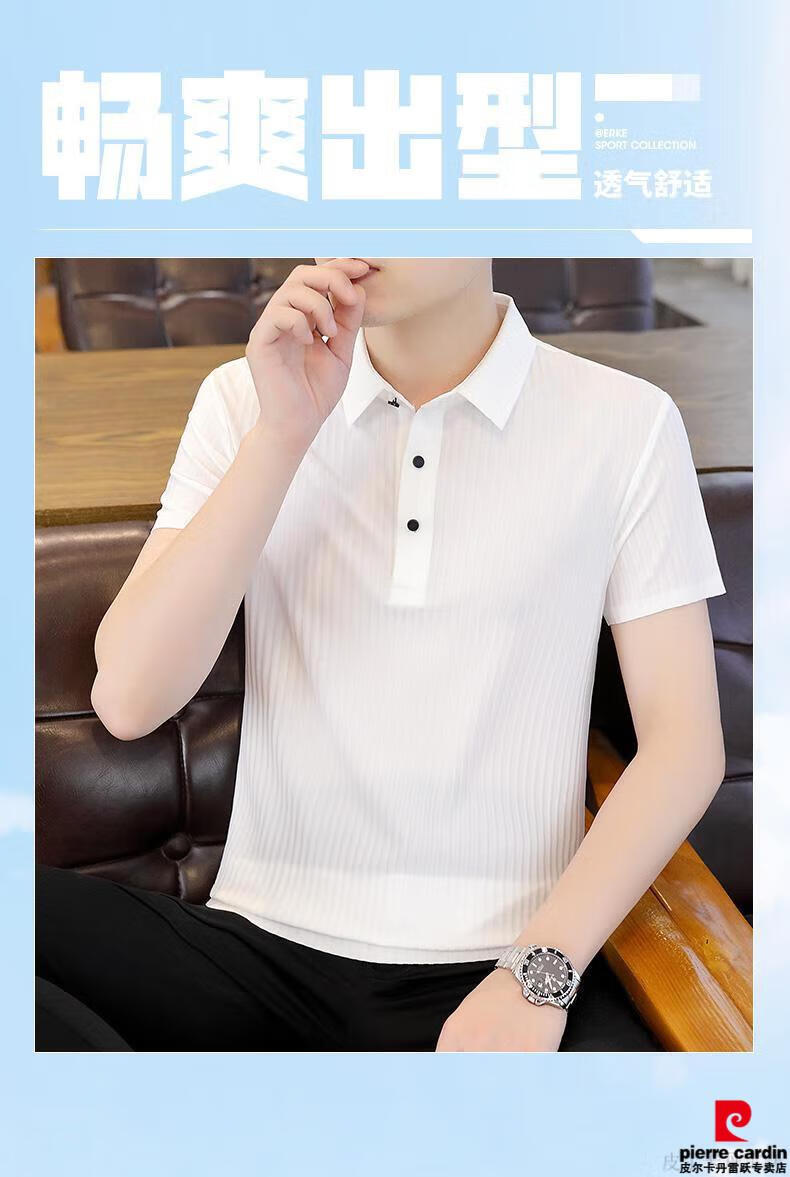 Pierre Cardin white ice silk short-sleeved T-shirt men's summer thin slim-fitting half-sleeved T-shirt casual solid color collared Polo collar shirt 1365 caramel color M (about 85~105Jin Jin equals 0.5kg can be worn)