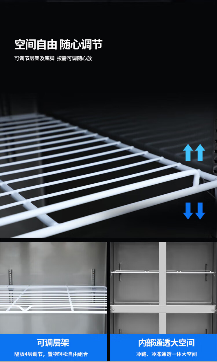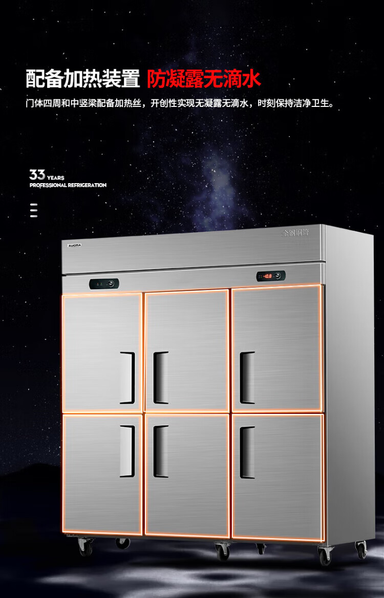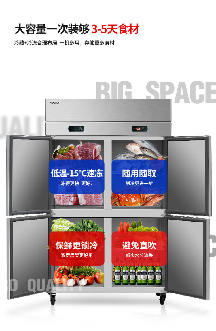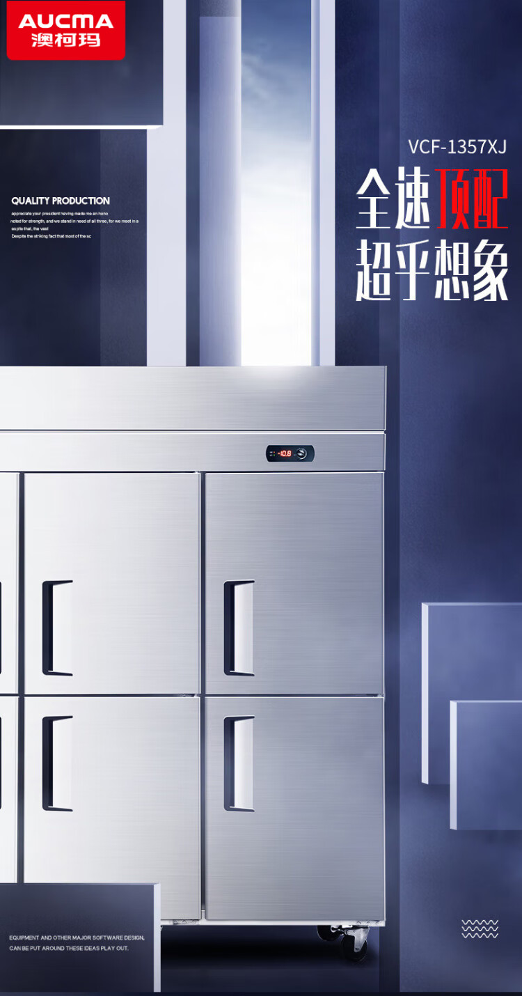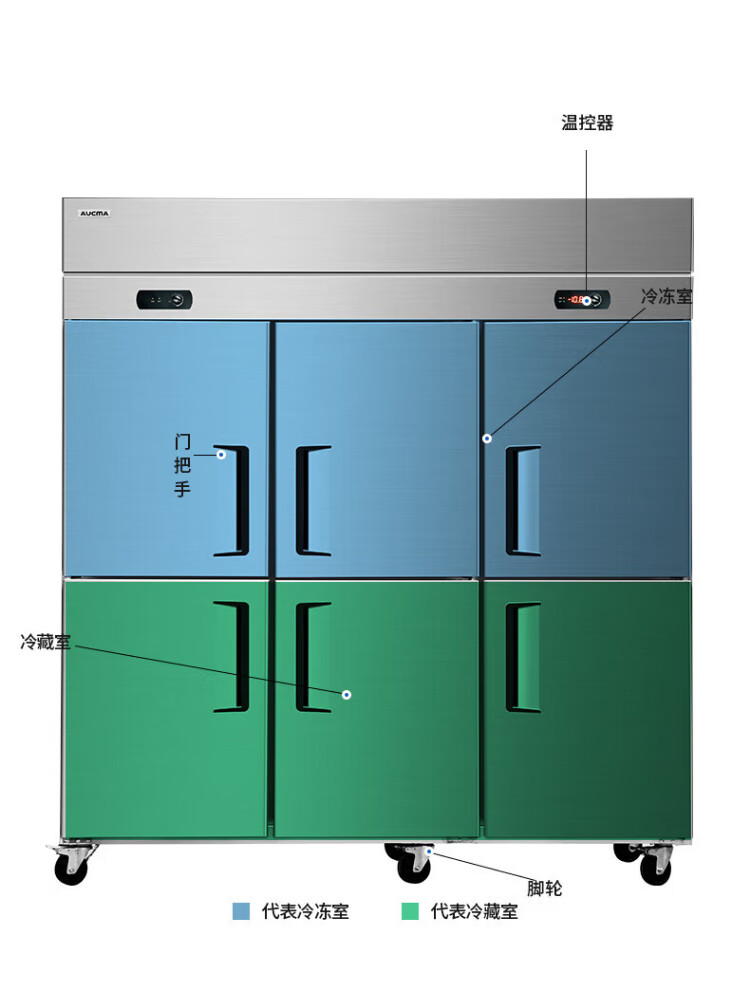 AUCMA commercial kitchen six-door refrigerator upright freezer large capacity refrigeration and freezing dual temperature 1360 liters hotel and catering direct cooling air-cooled frost-free copper tube stainless steel cabinet VCF-1390AW air-cooled frost-free six-door dual temperature 1340 liters