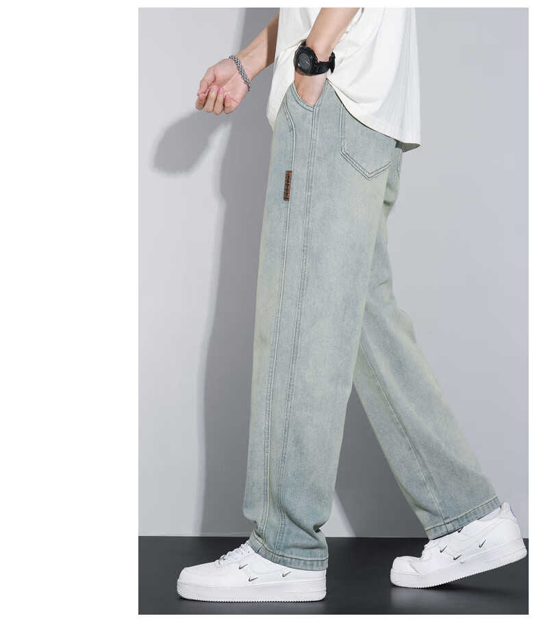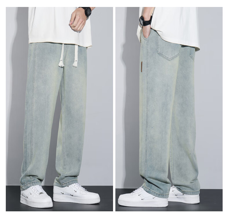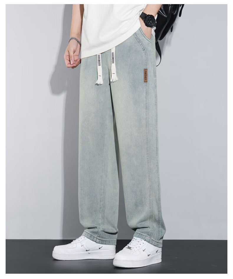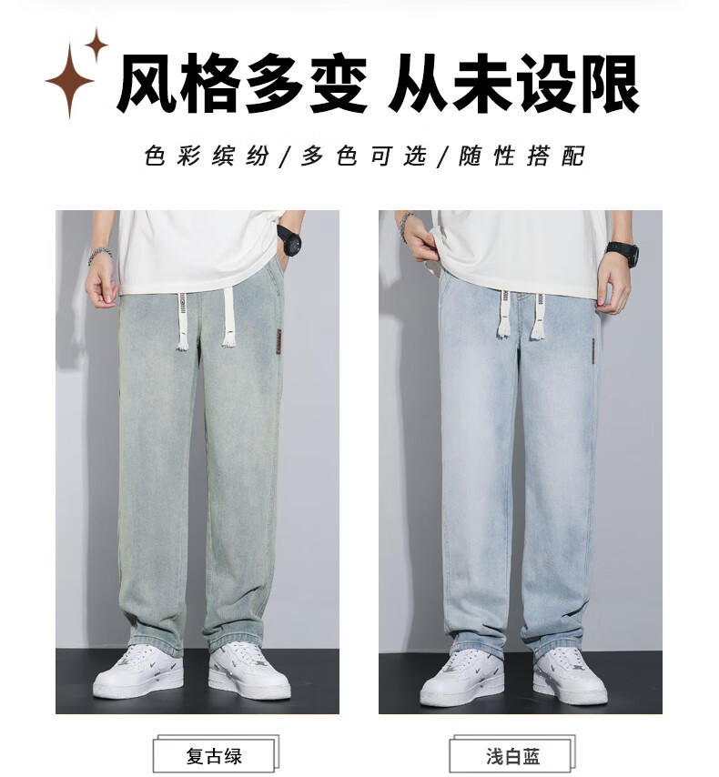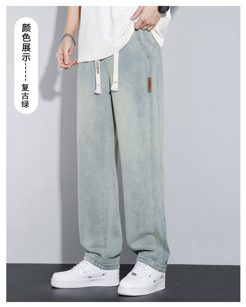 NASA XVVX jeans men's loose wide legs 2024 new spring and summer thin fashion brand American retro casual straight pants K1518 retro green L