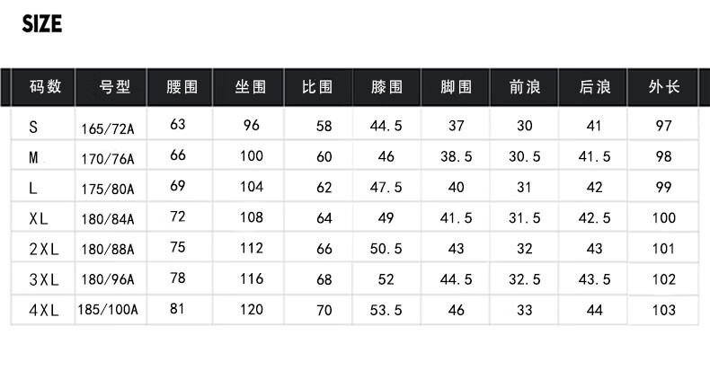 Outseam (cm) 99 cm 101.5 cm 104 cm 106.5 cm 109 cm