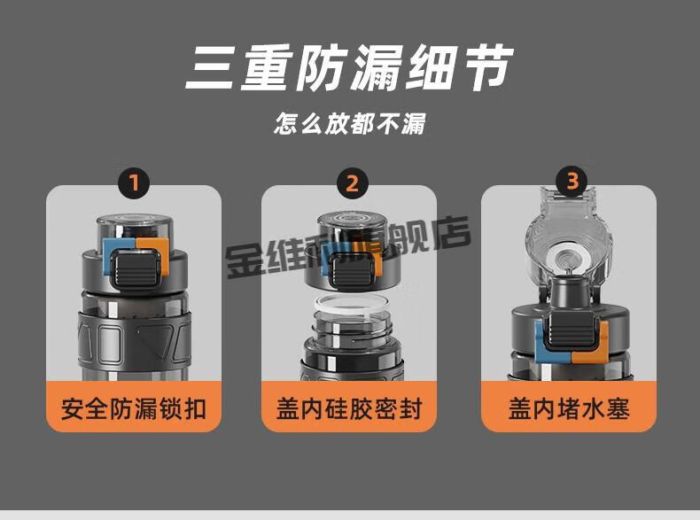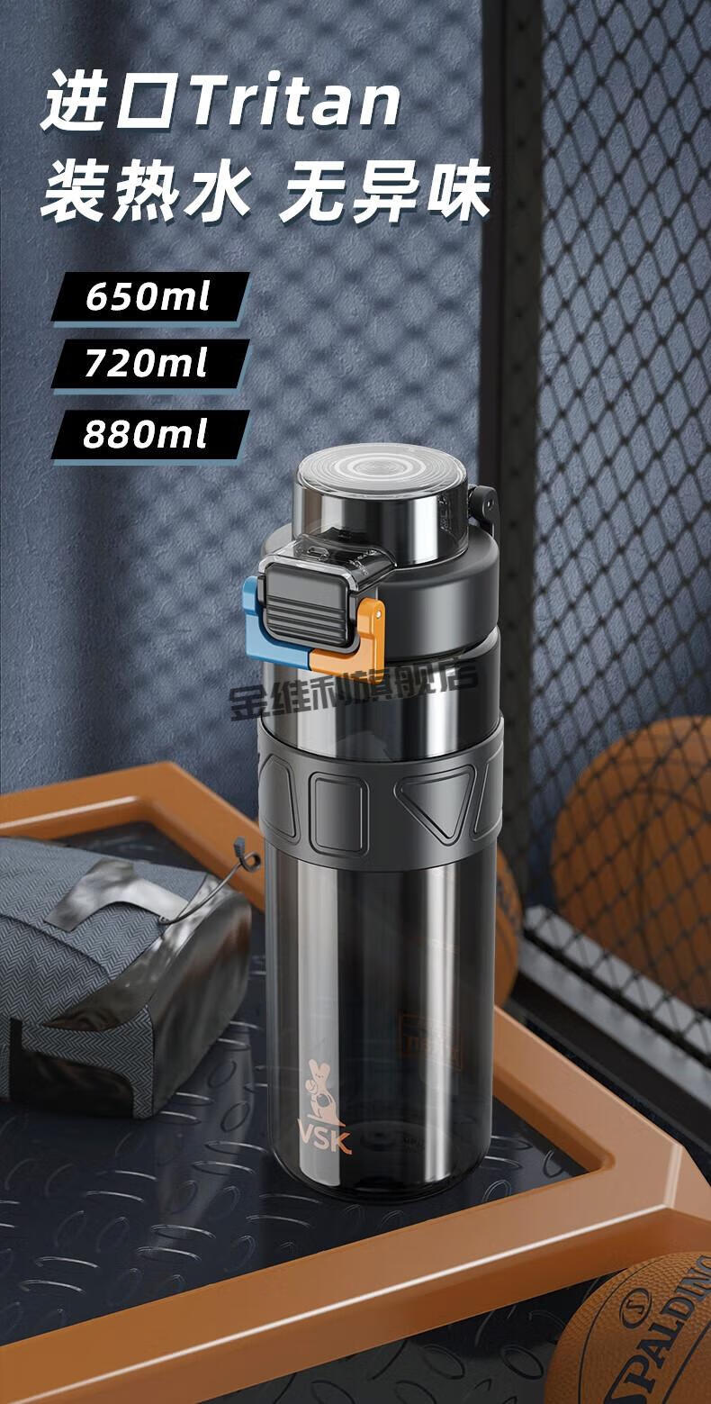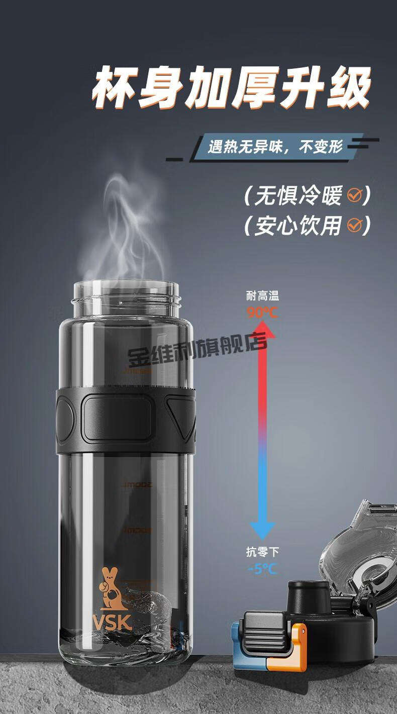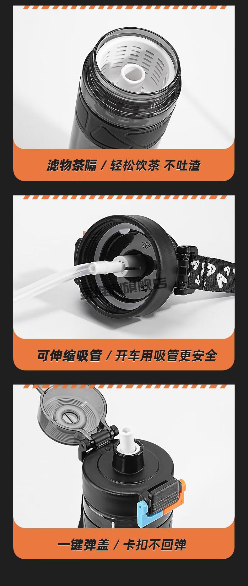 JINWEILI德国品质大容量水杯男生耐高温运动水壶2024新款塑料茶杯夏天 运动黑tritan材质+可伸缩 0个 880ml