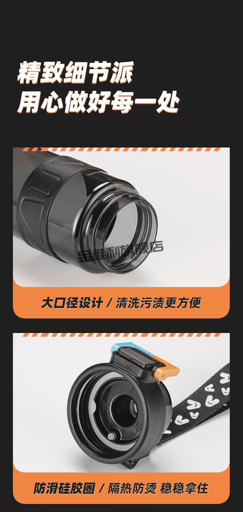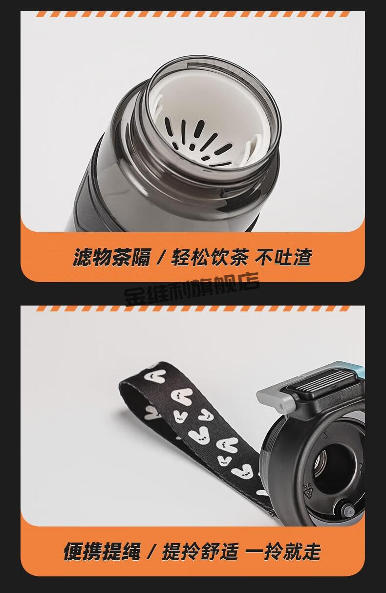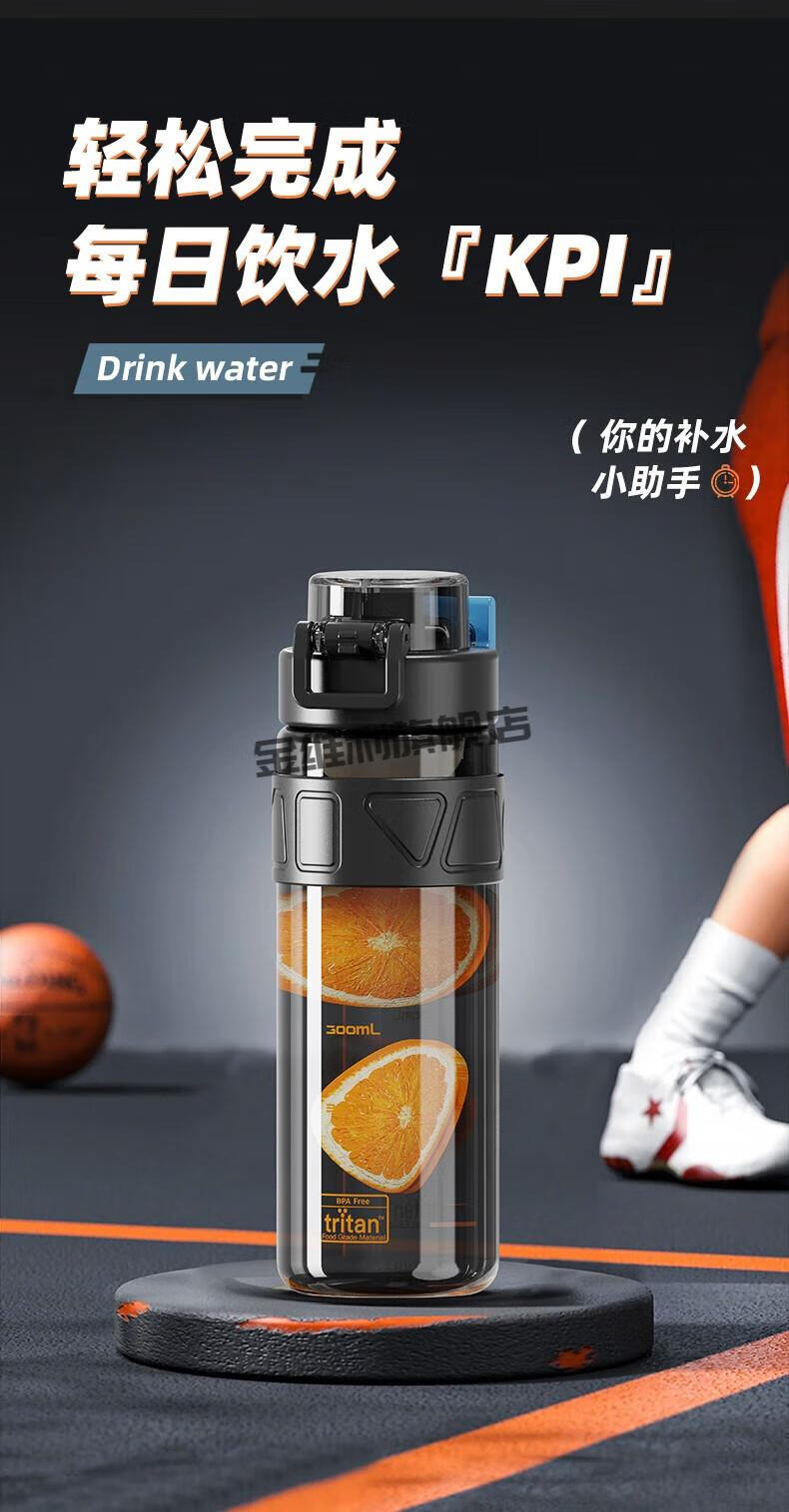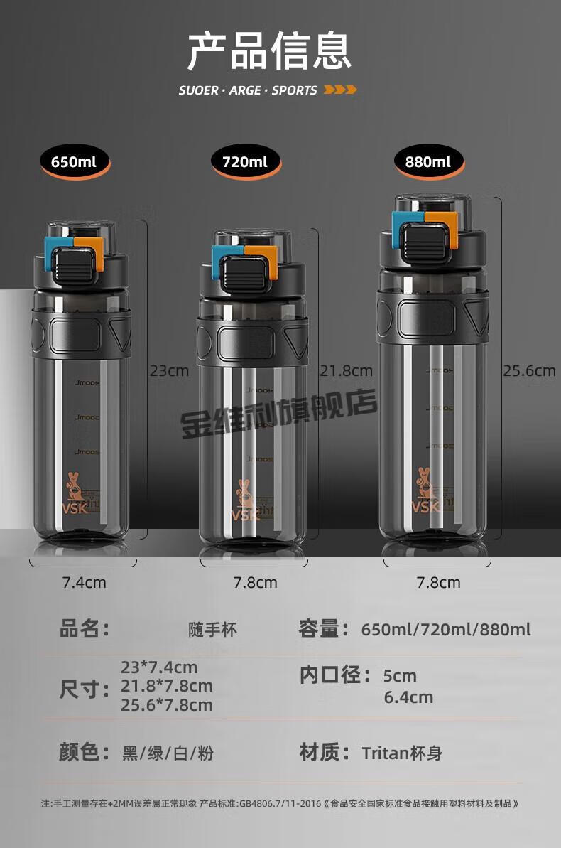 JINWEILI德国品质大容量水杯男生耐高温运动水壶2024新款塑料茶杯夏天 运动黑tritan材质+可伸缩 0个 880ml
