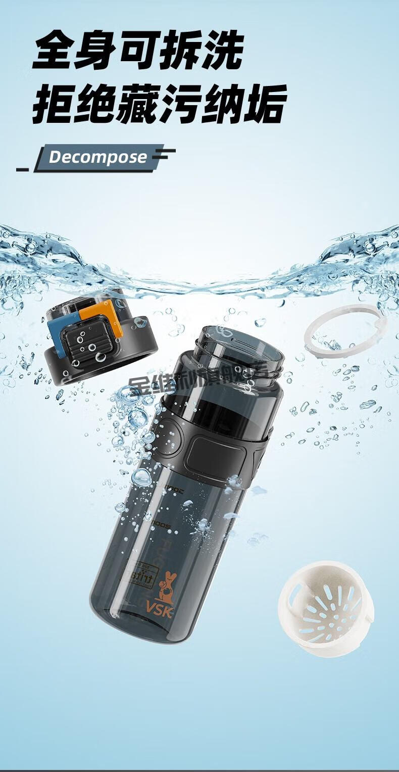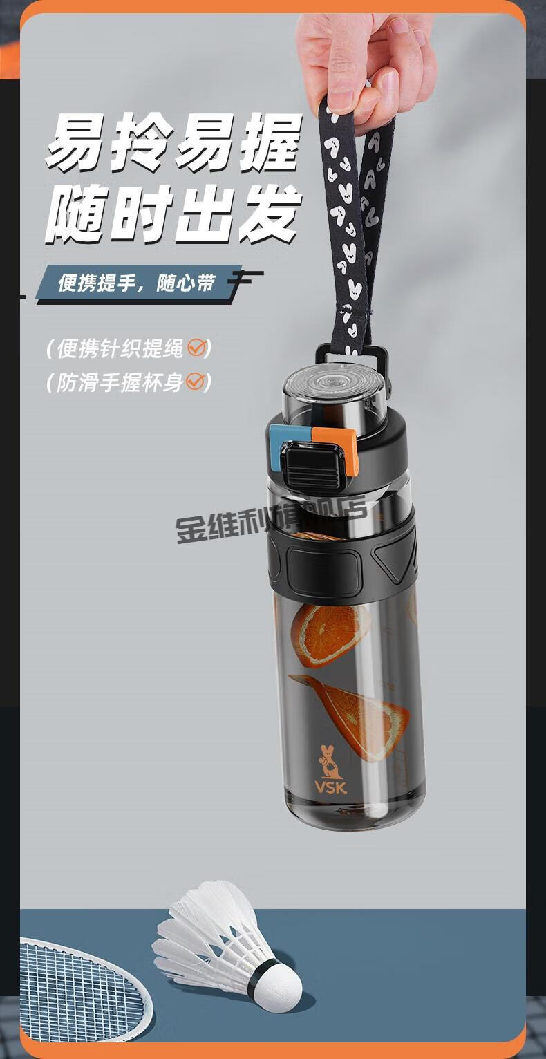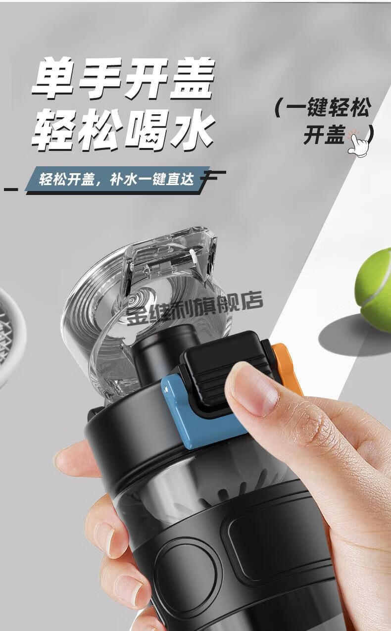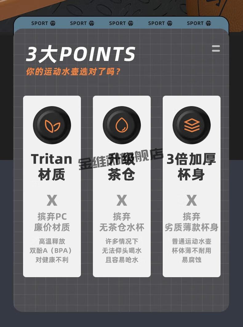 JINWEILI德国品质大容量水杯男生耐高温运动水壶2024新款塑料茶杯夏天 运动黑tritan材质+可伸缩 0个 880ml