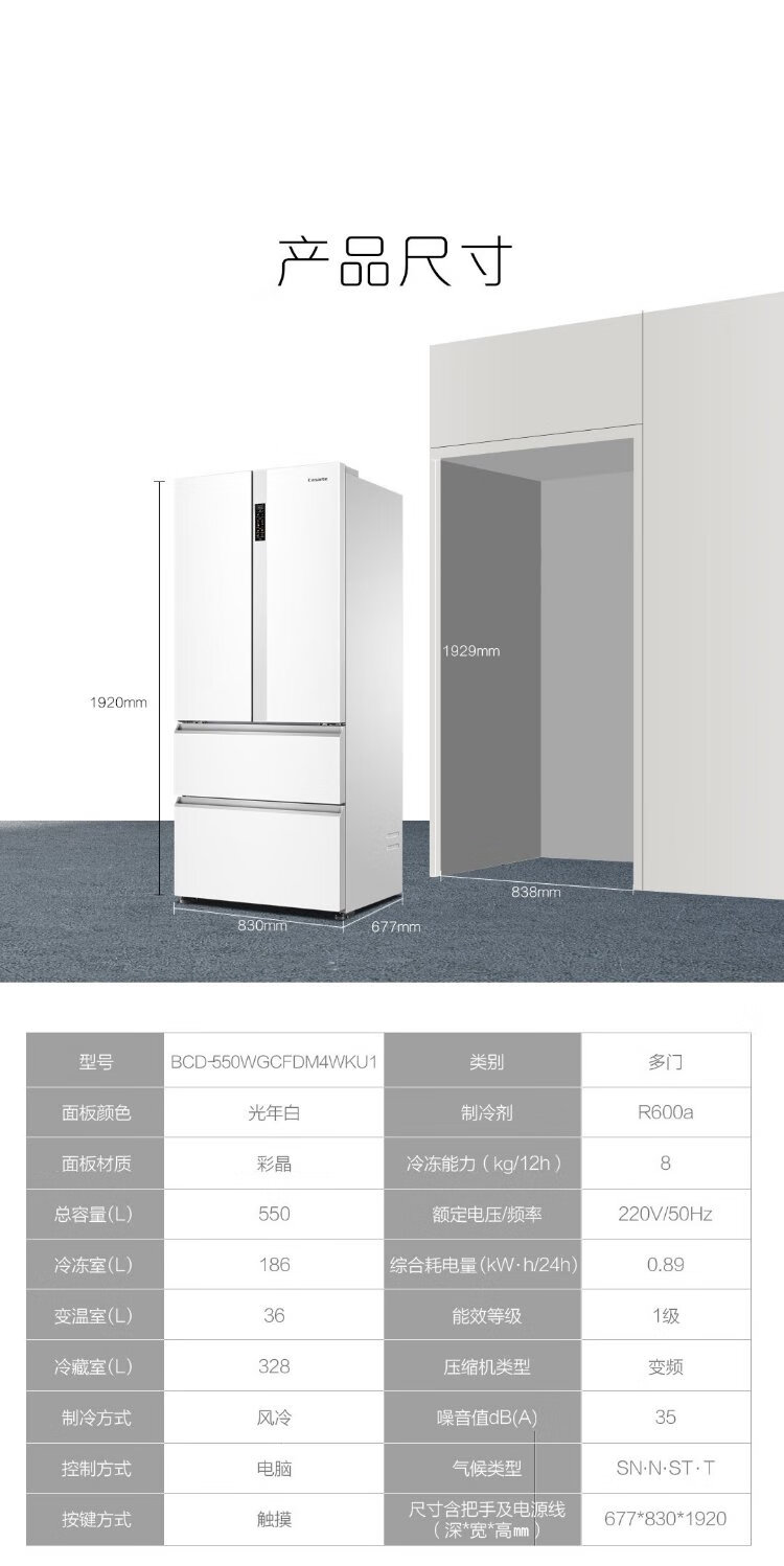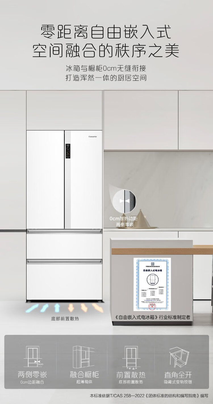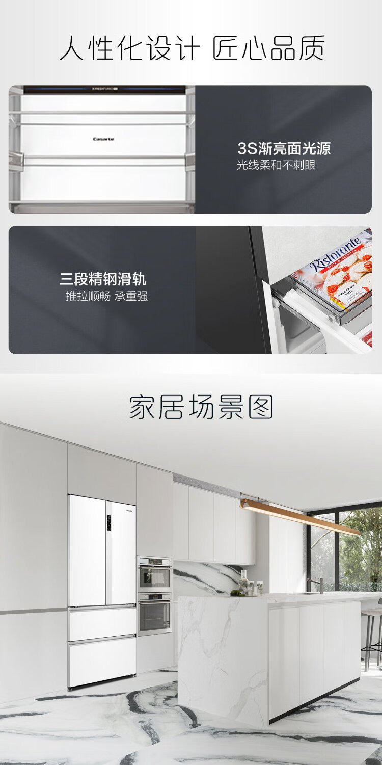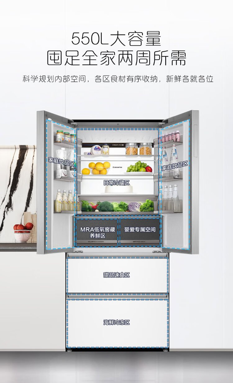 Casarte rough stone 550L Xingyue zero-embedded French multi-door large-capacity dual-system ultra-thin first-level energy efficiency state-subsidized refrigerator BCD-550WGCFDM4WKU1
