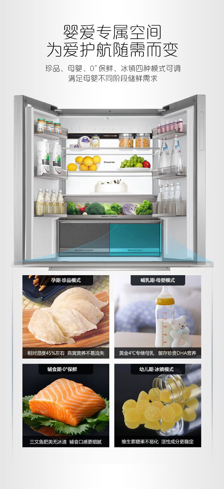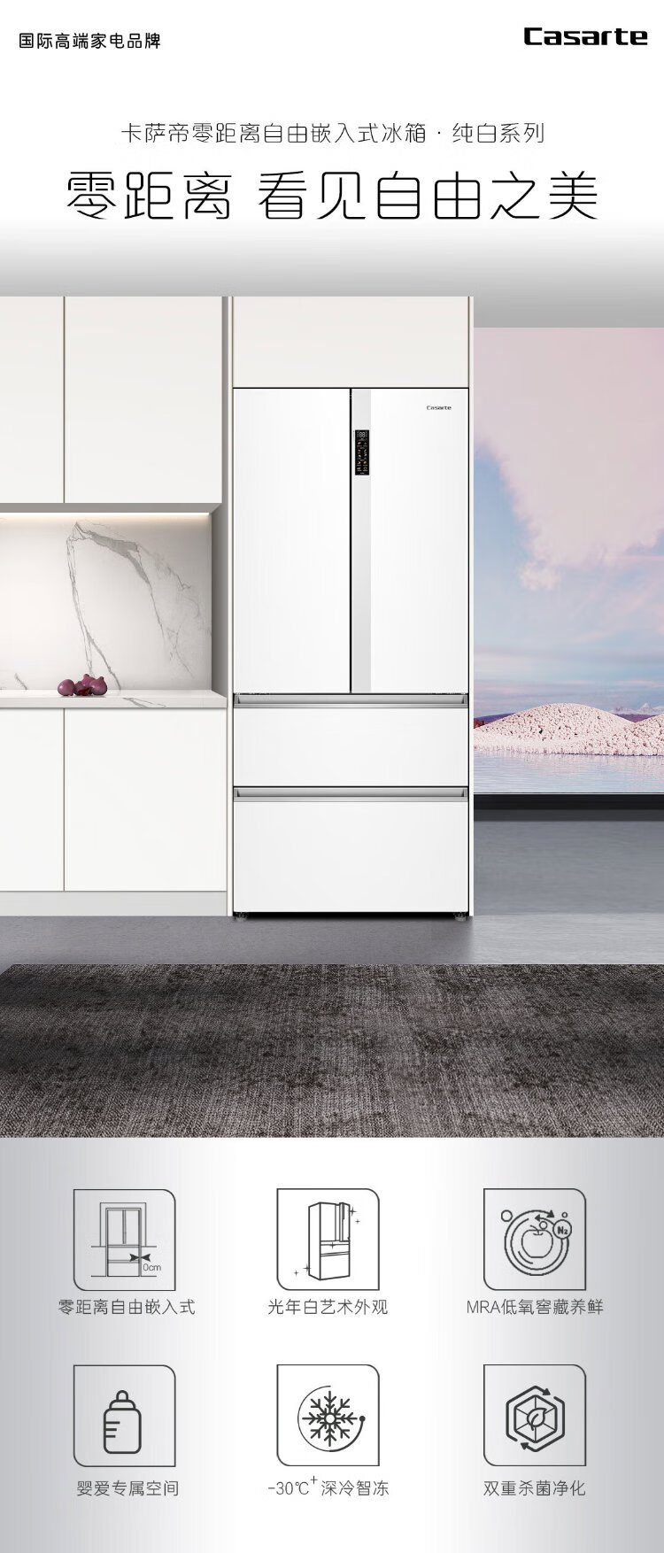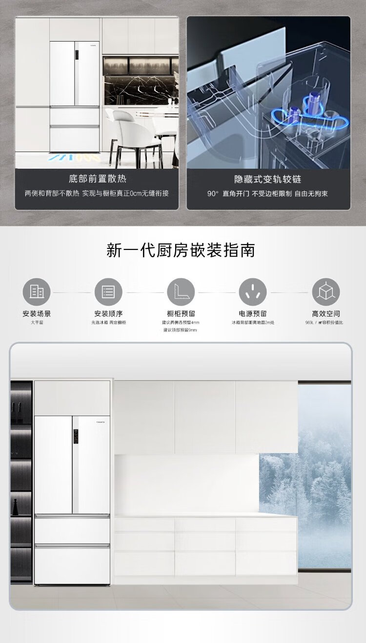 Casarte rough stone 550L Xingyue zero-embedded French multi-door large-capacity dual-system ultra-thin first-level energy efficiency state-subsidized refrigerator BCD-550WGCFDM4WKU1