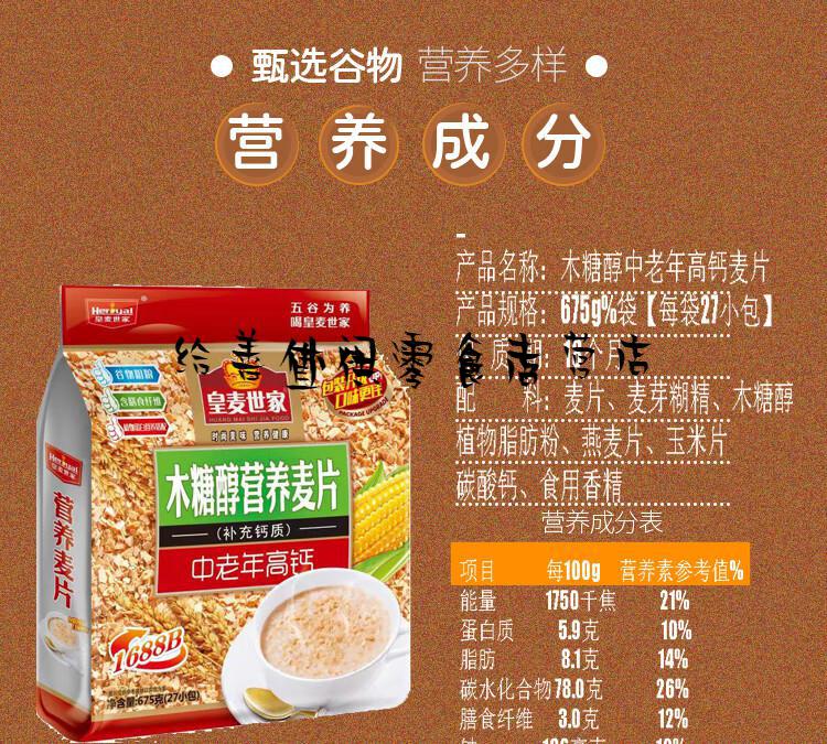 Heryal middle-aged and elderly milk high calcium xylitol sucrose-free nutritious oatmeal 675g breakfast ready-to-eat no-cooking xylitol red dates and wolfberry oatmeal 672g (24 sachets)