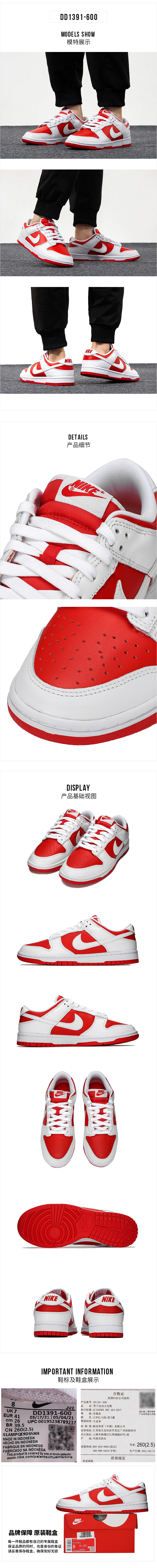 耐克(NIKE)官方男鞋 冬季新款运动鞋Dunk Low Retro复古时尚低帮轻便休闲鞋 DD1391-600/ 41