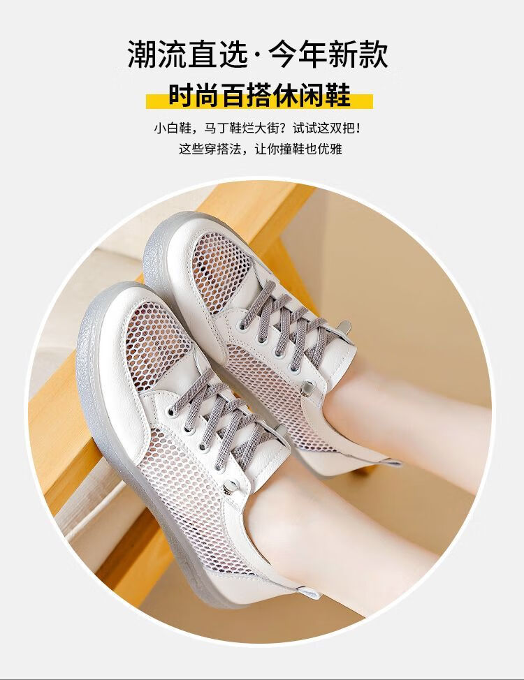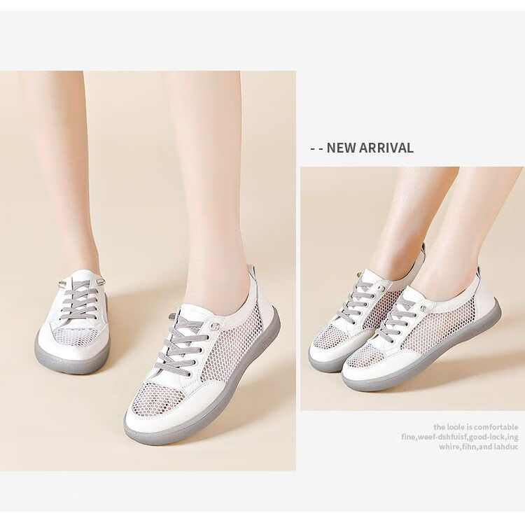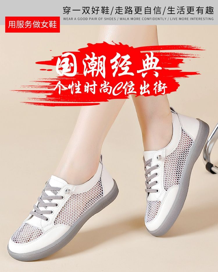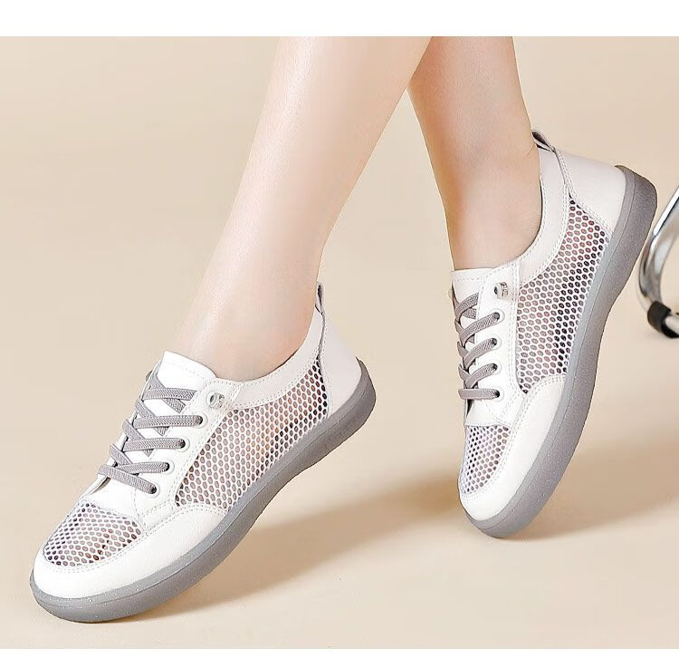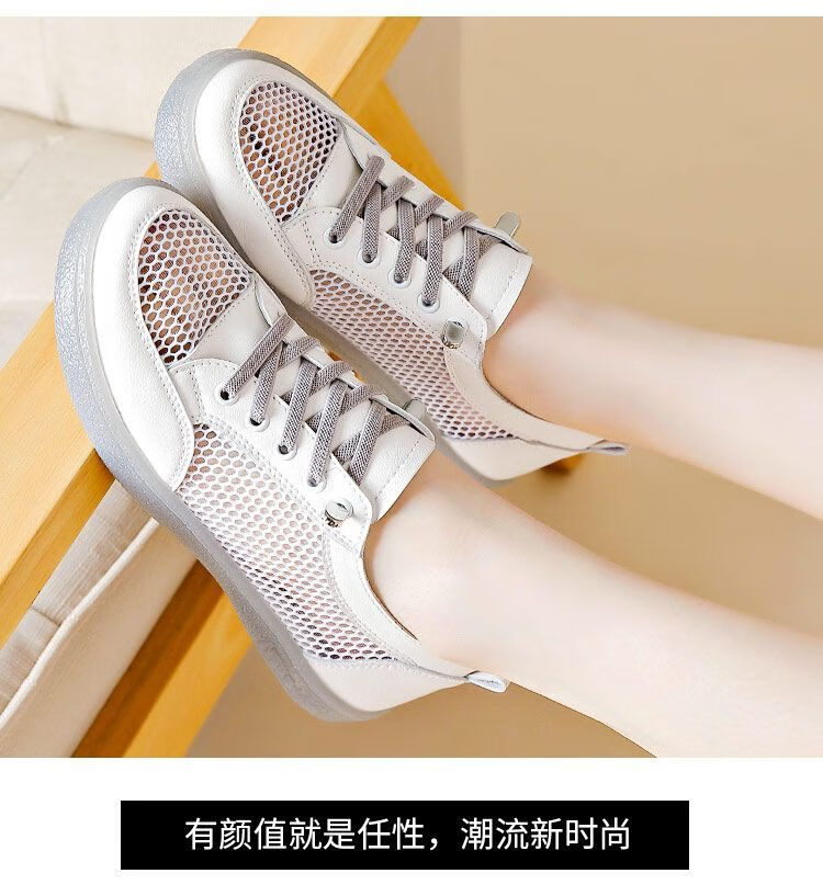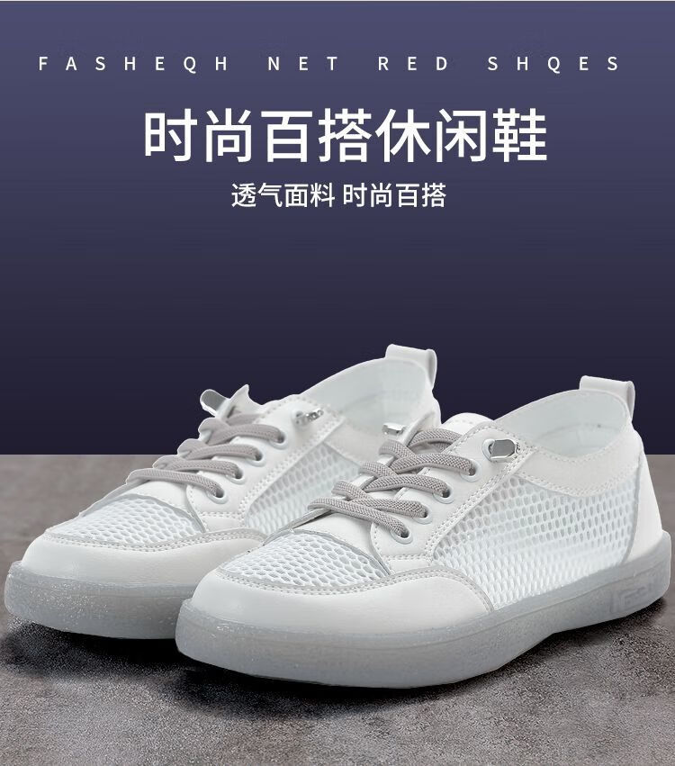 Hongxing Pink 2025 New Summer Thin Hollow Breathable Lightweight White Shoes Women Korean Style Casual Versatile Women's Shoes QZ880 White Gray Mesh Hollow Design 38