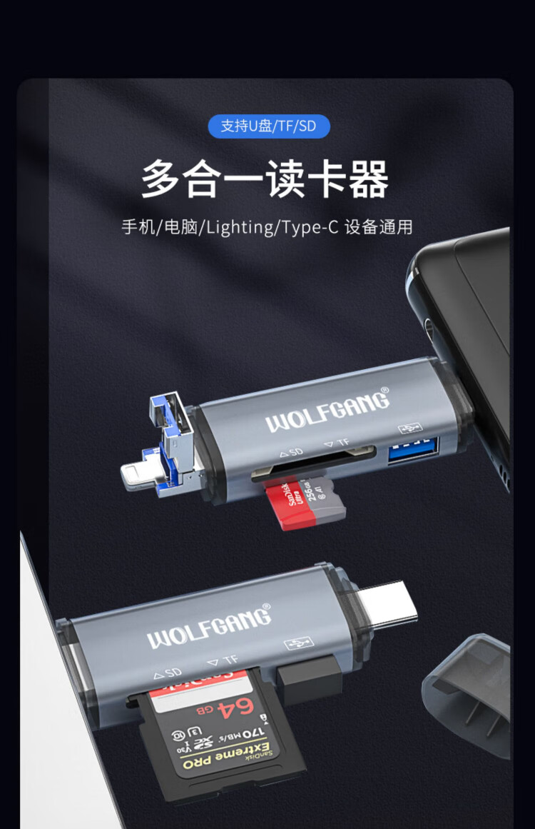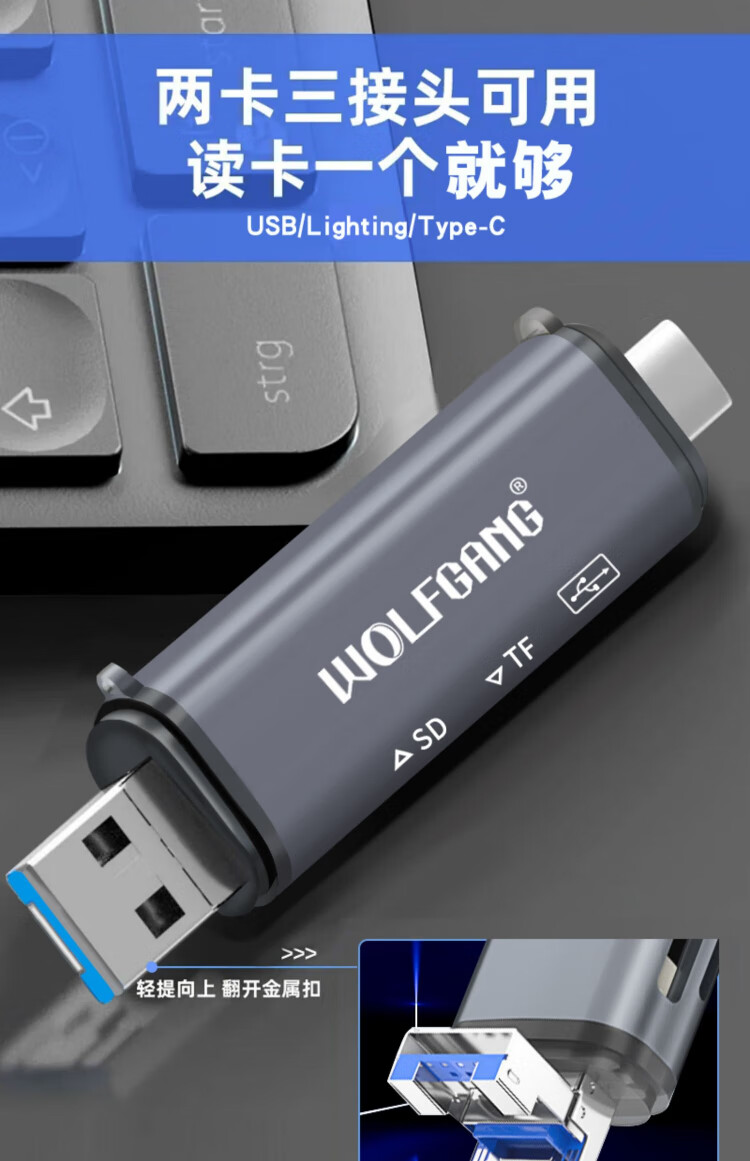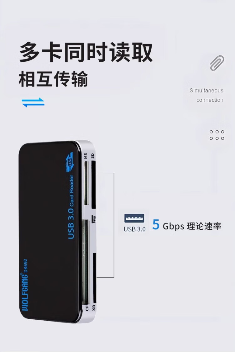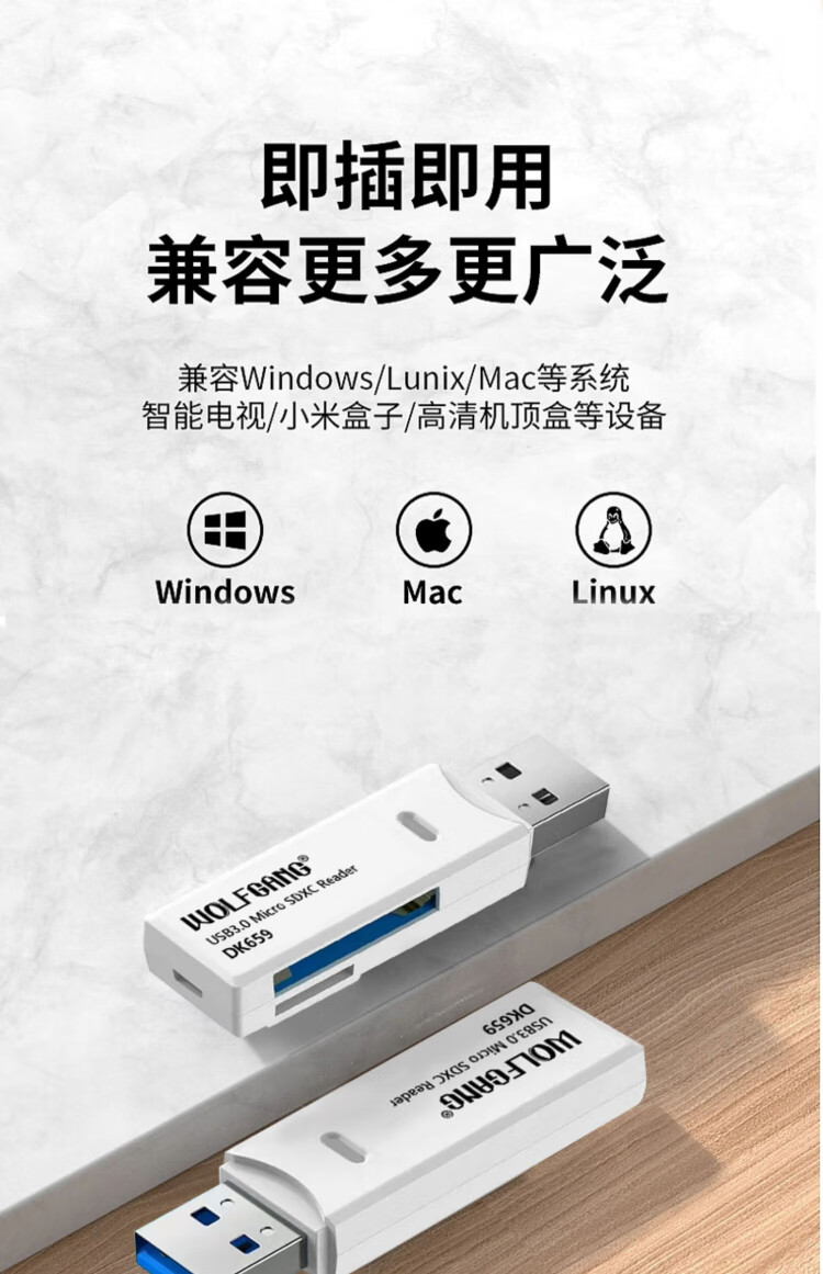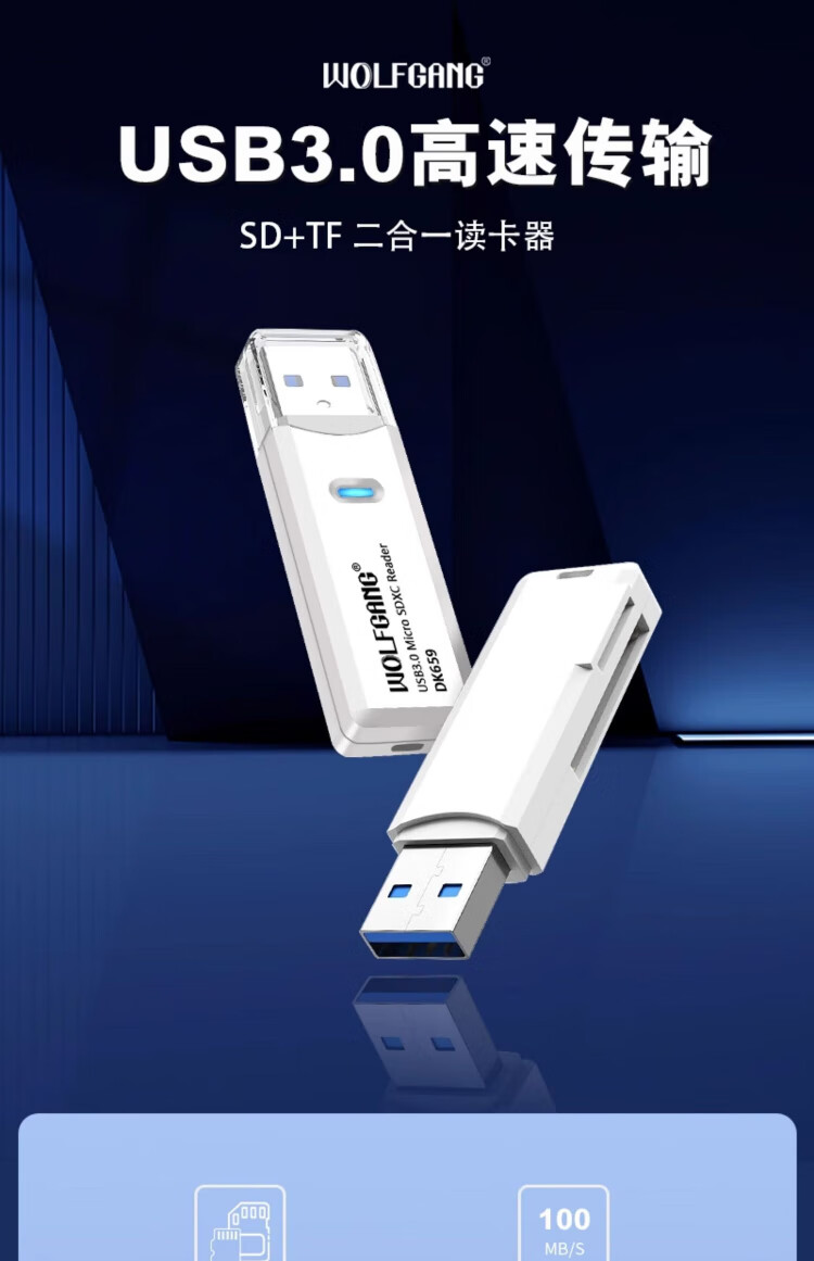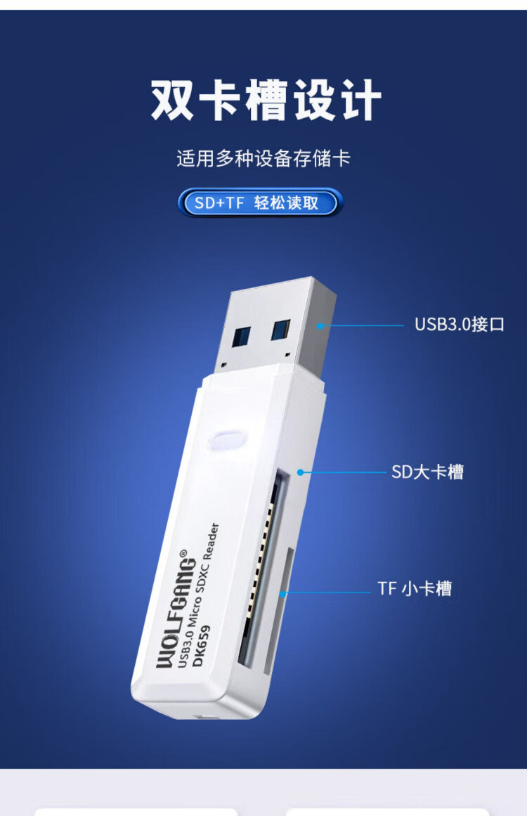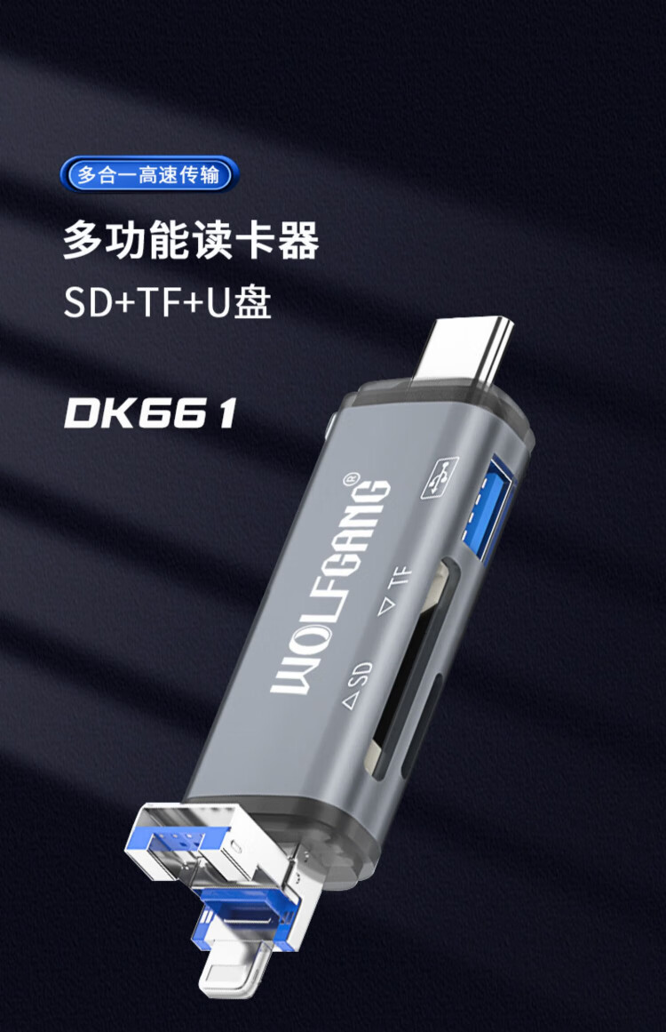 沃尔夫冈WOLFGANG 读卡器相机多功能合一USB3.0高速内存tf/sd手机u盘数码相机单反相机 DK659(SD/TF卡高速传输3.0速度) 标配
