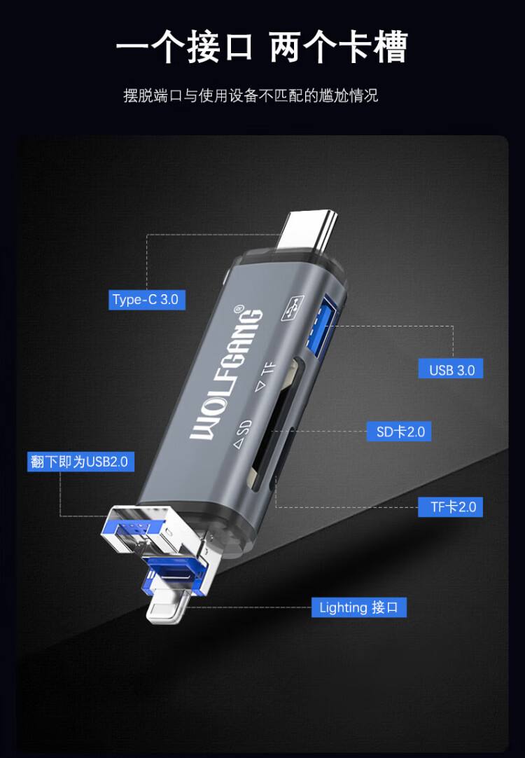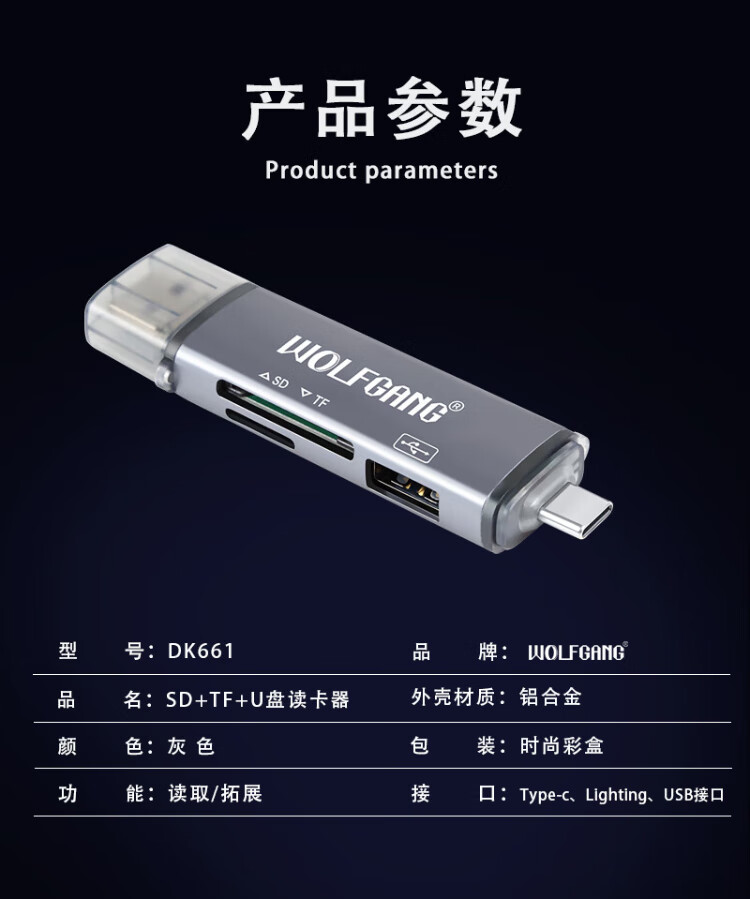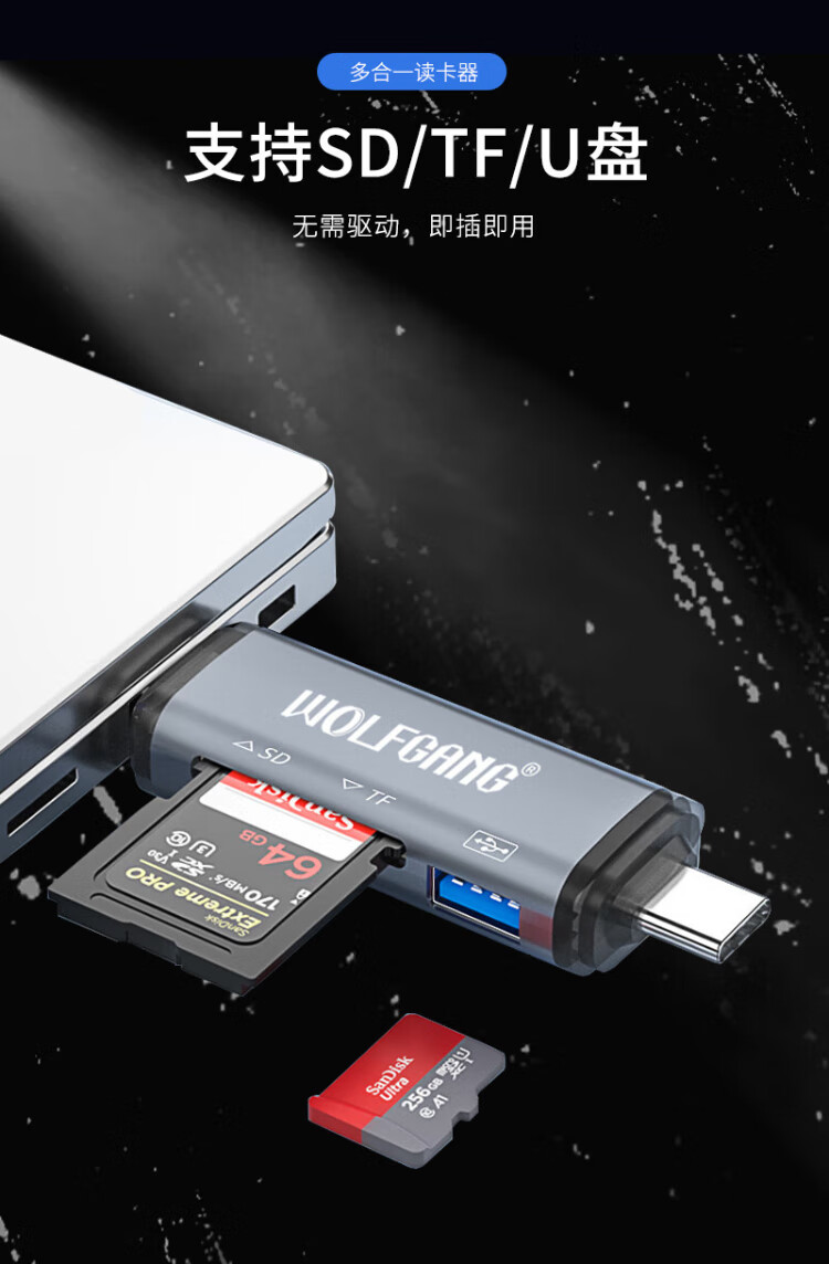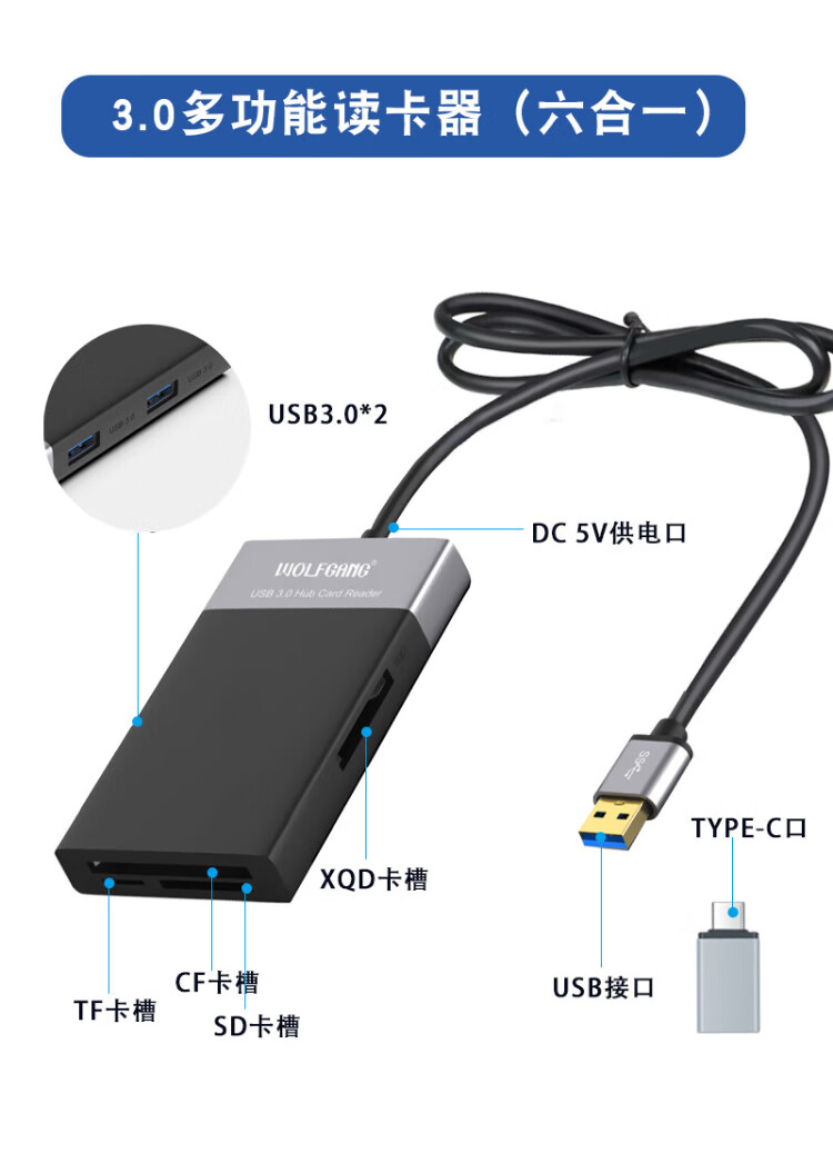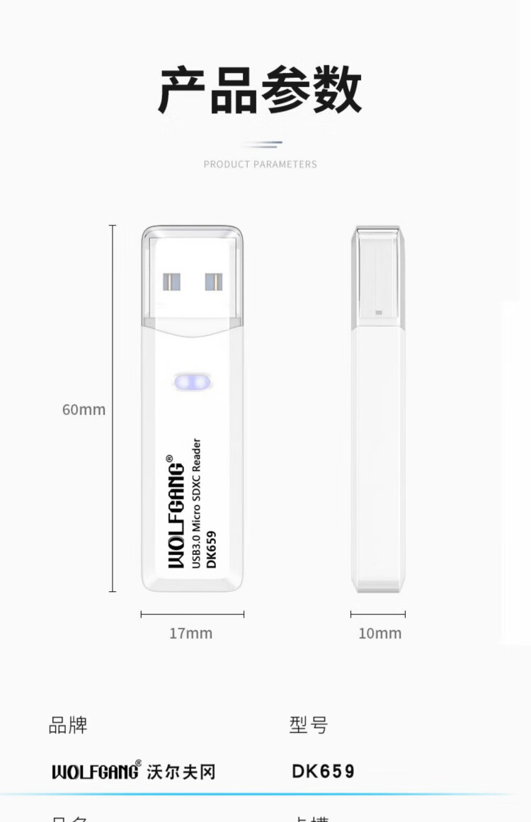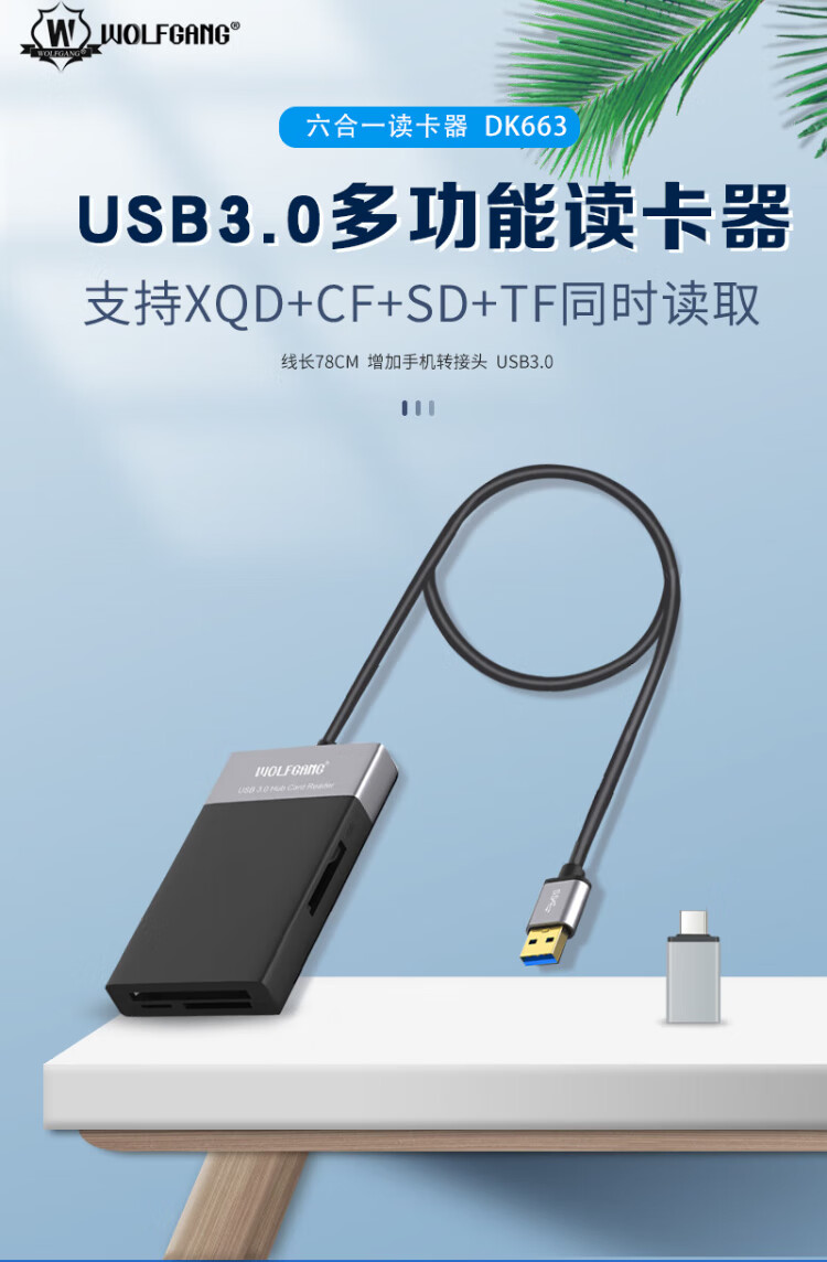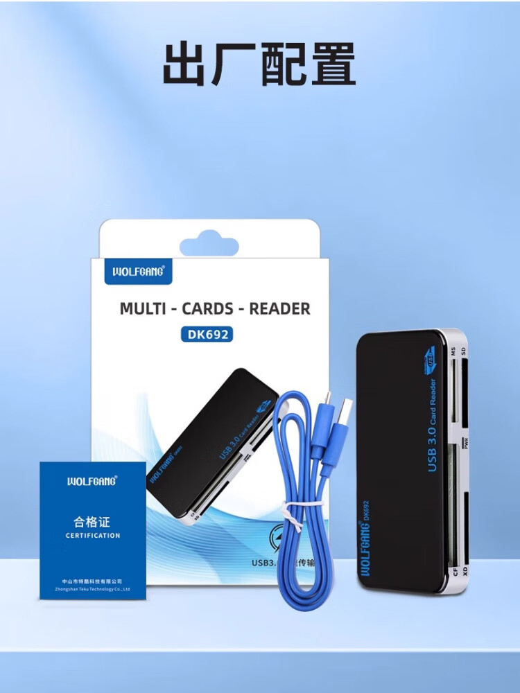 沃尔夫冈WOLFGANG 读卡器相机多功能合一USB3.0高速内存tf/sd手机u盘数码相机单反相机 DK659(SD/TF卡高速传输3.0速度) 标配