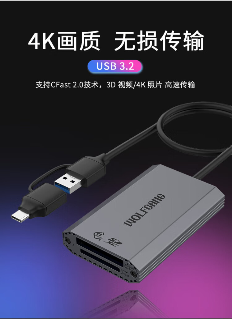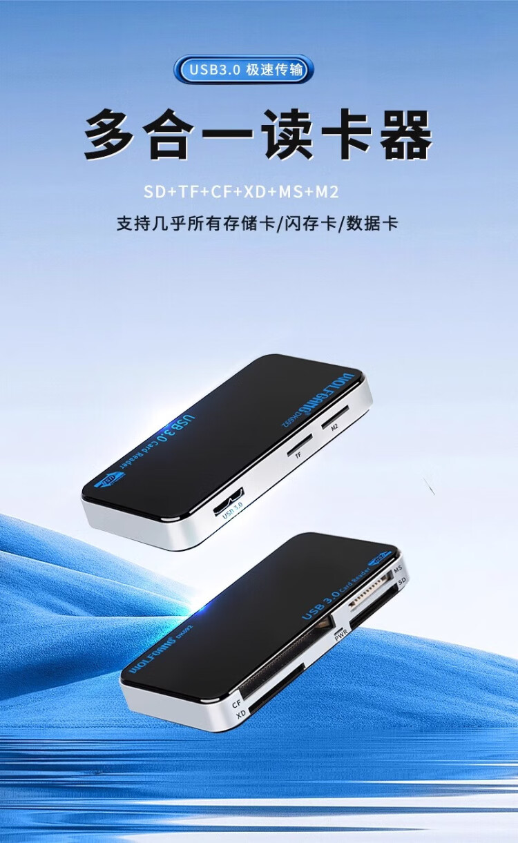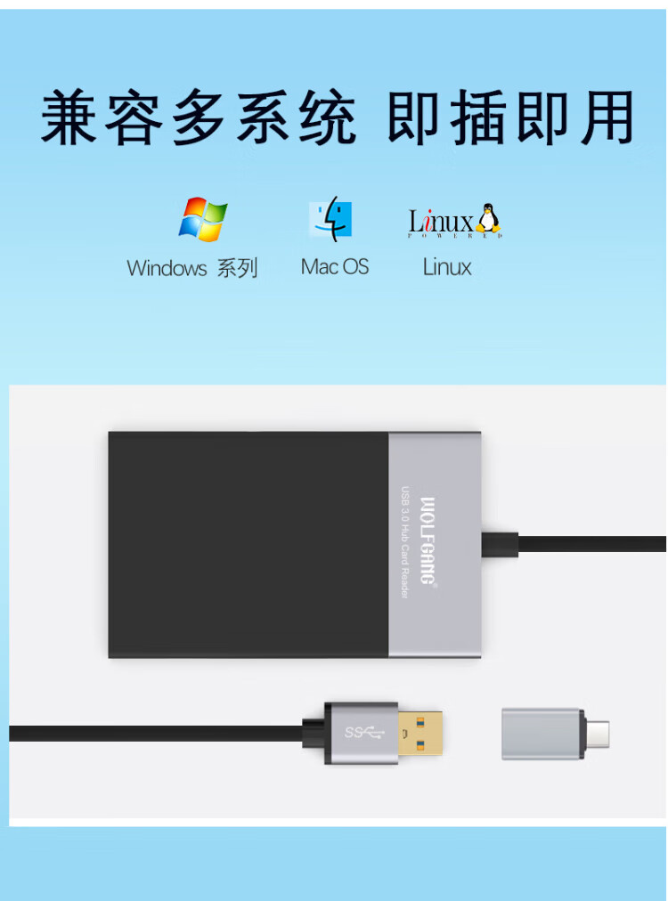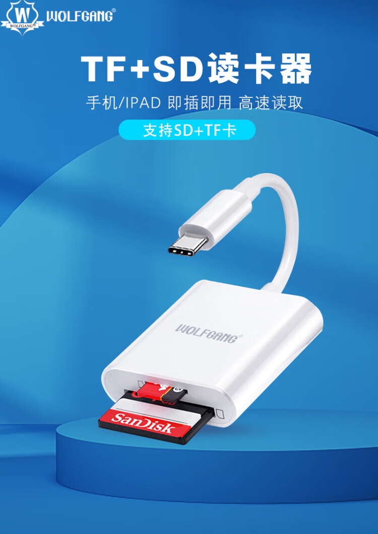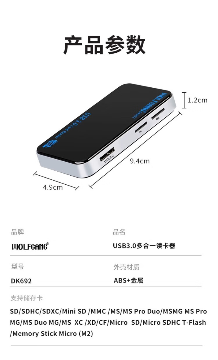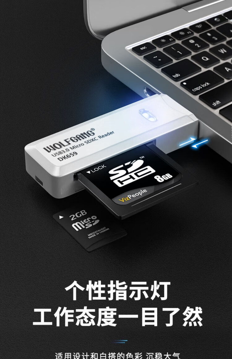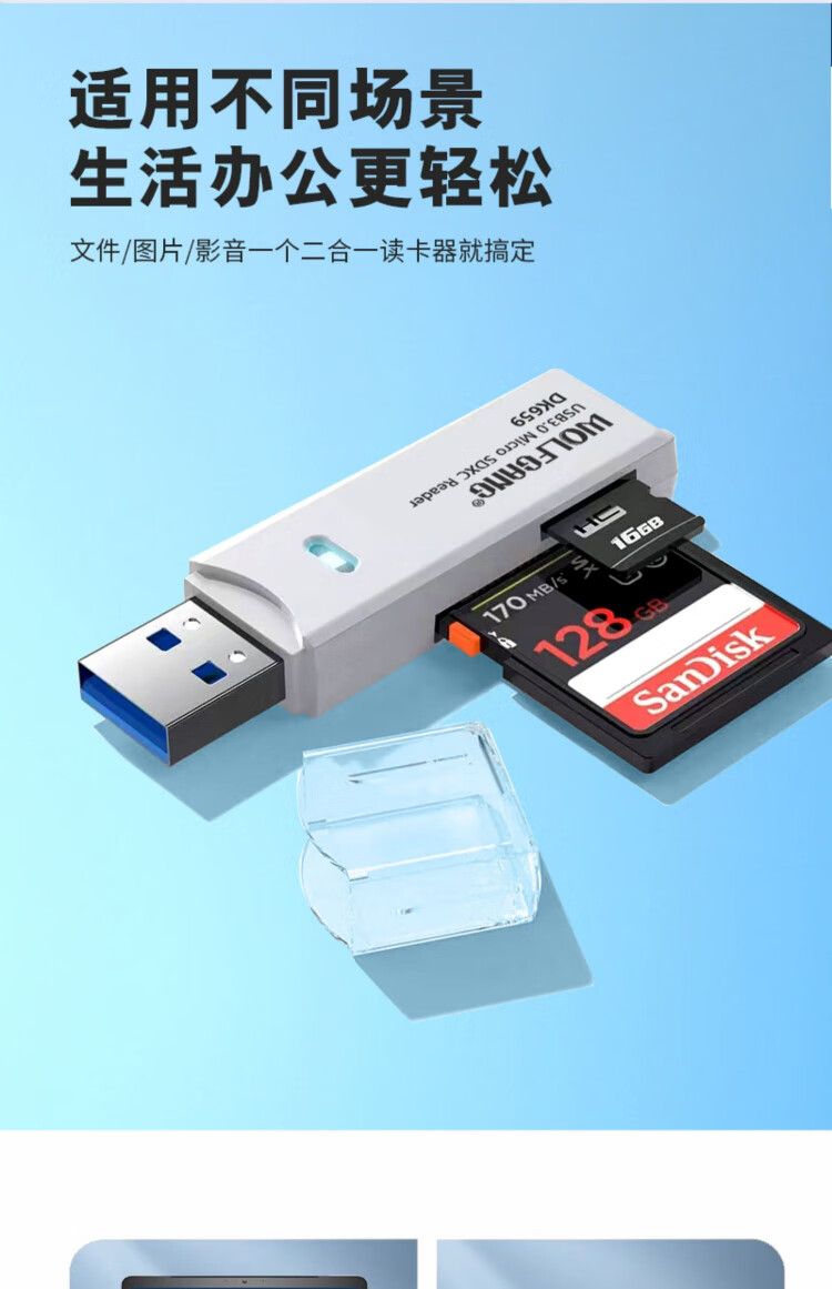沃尔夫冈WOLFGANG 读卡器相机多功能合一USB3.0高速内存tf/sd手机u盘数码相机单反相机 DK659(SD/TF卡高速传输3.0速度) 标配
