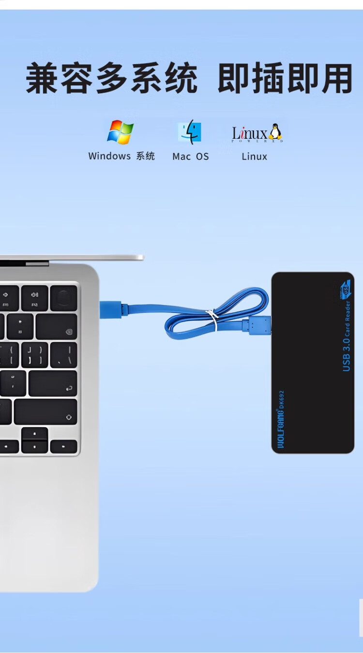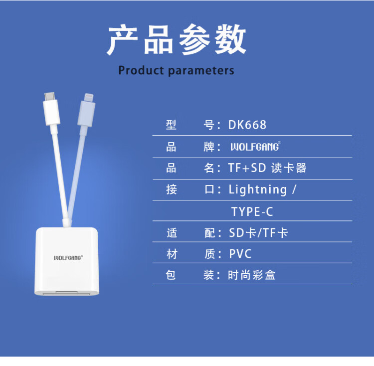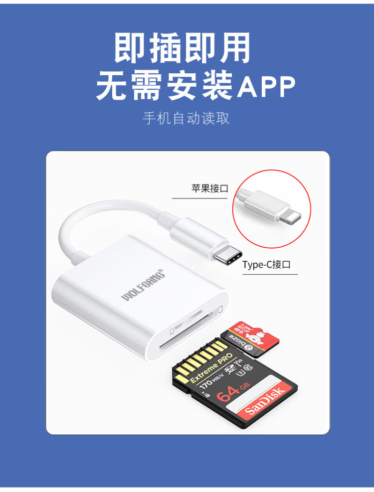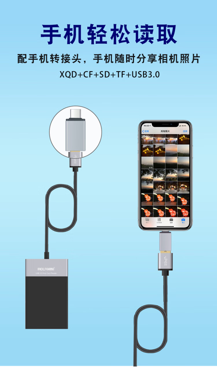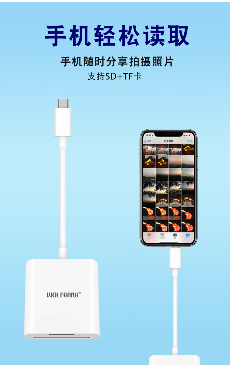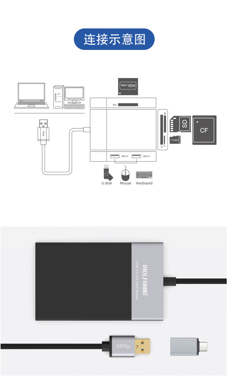 沃尔夫冈WOLFGANG 读卡器相机多功能合一USB3.0高速内存tf/sd手机u盘数码相机单反相机 DK659(SD/TF卡高速传输3.0速度) 标配