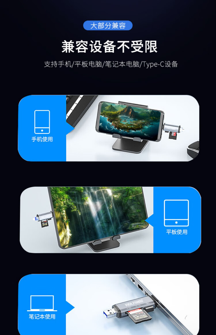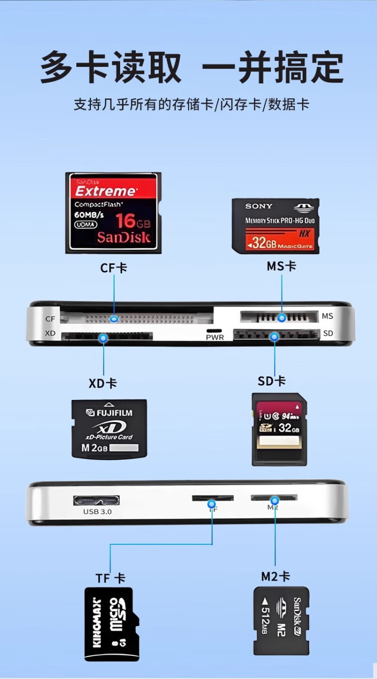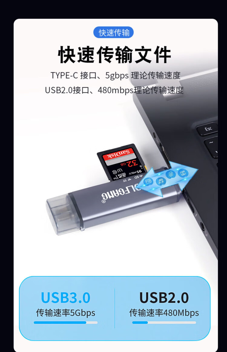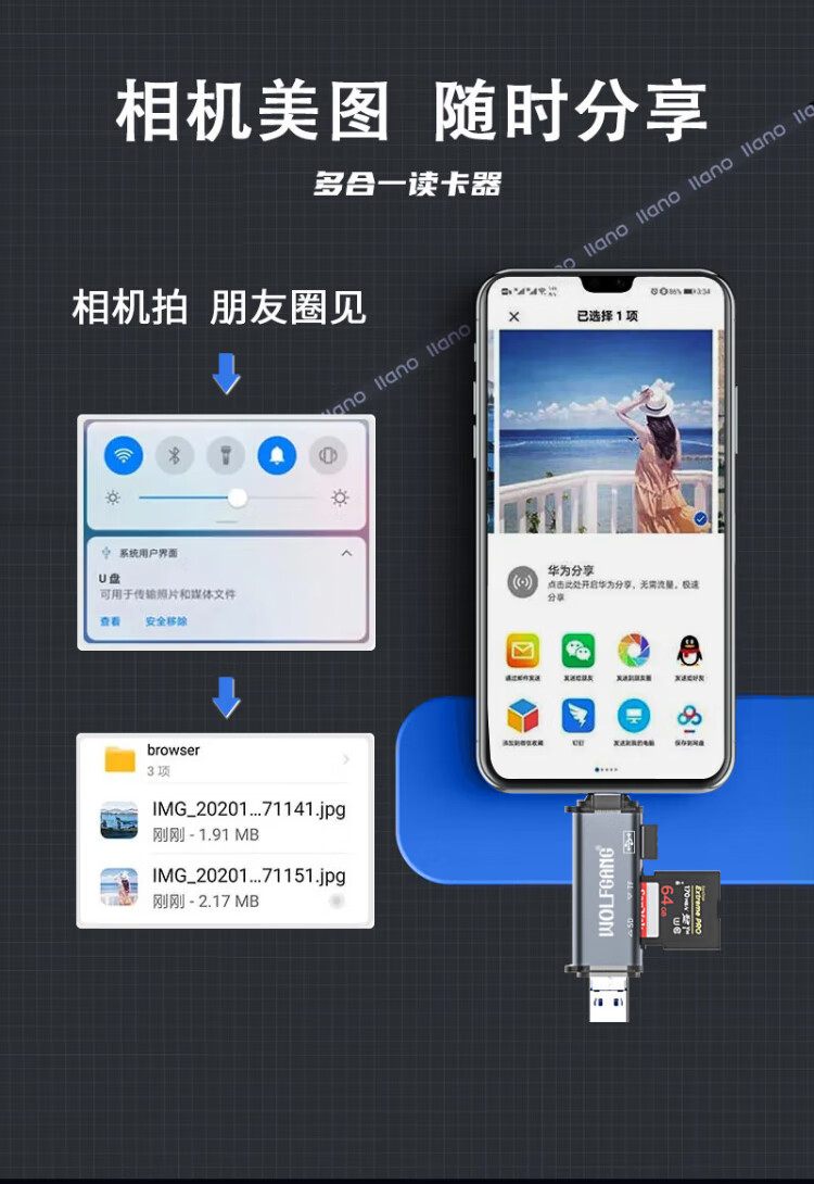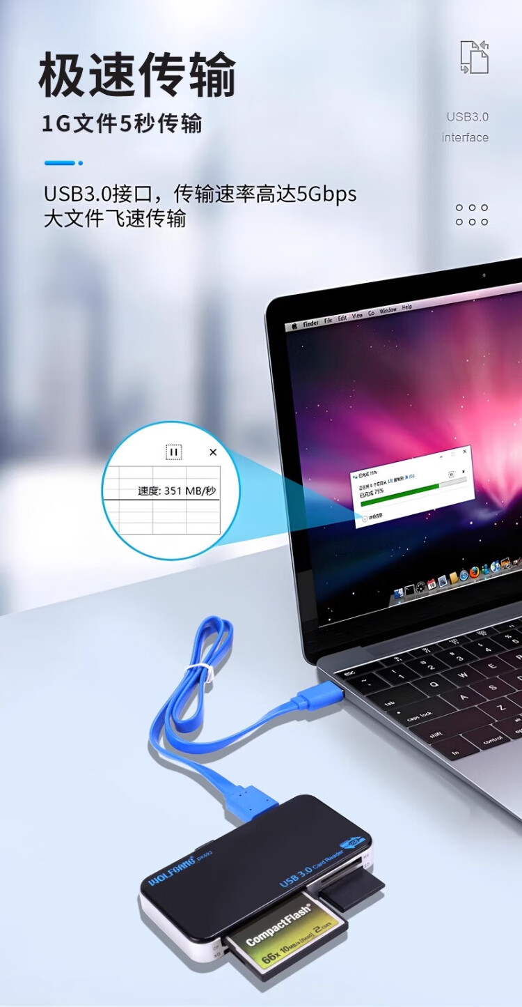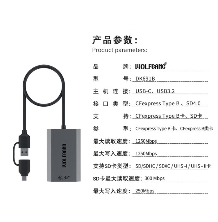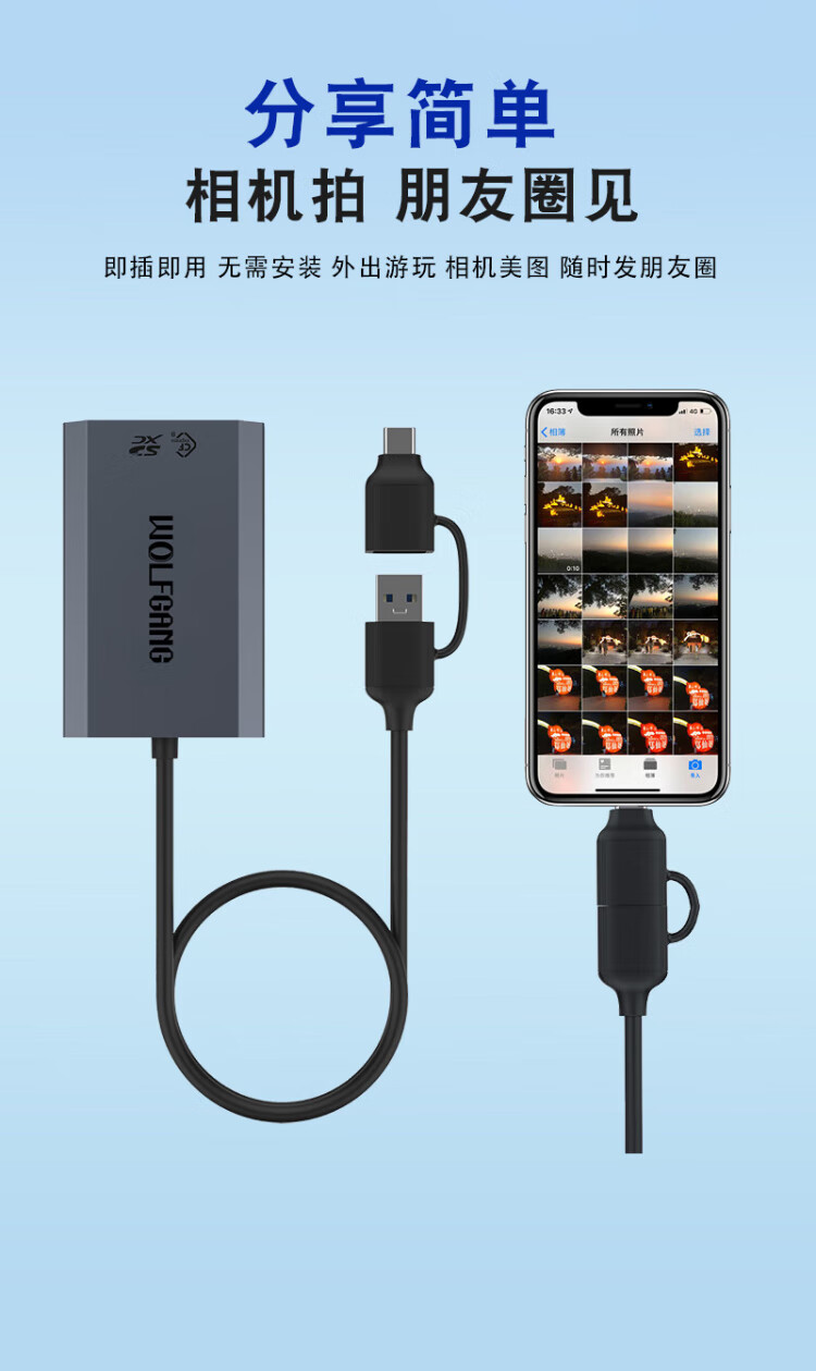沃尔夫冈WOLFGANG 读卡器相机多功能合一USB3.0高速内存tf/sd手机u盘数码相机单反相机 DK659(SD/TF卡高速传输3.0速度) 标配