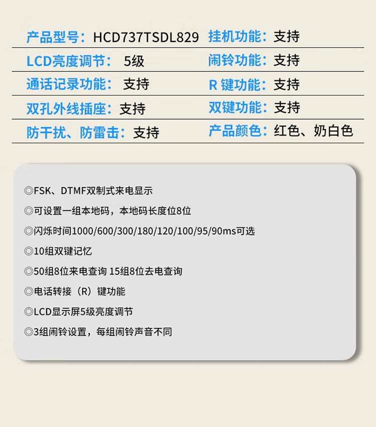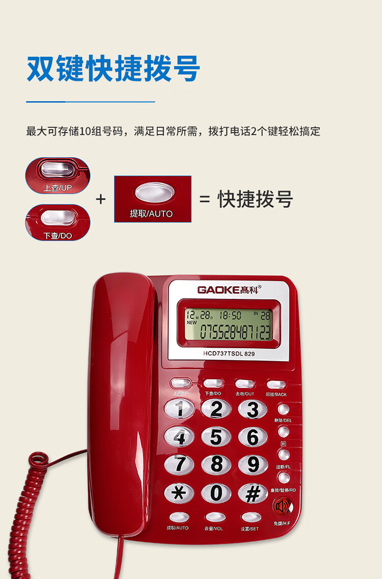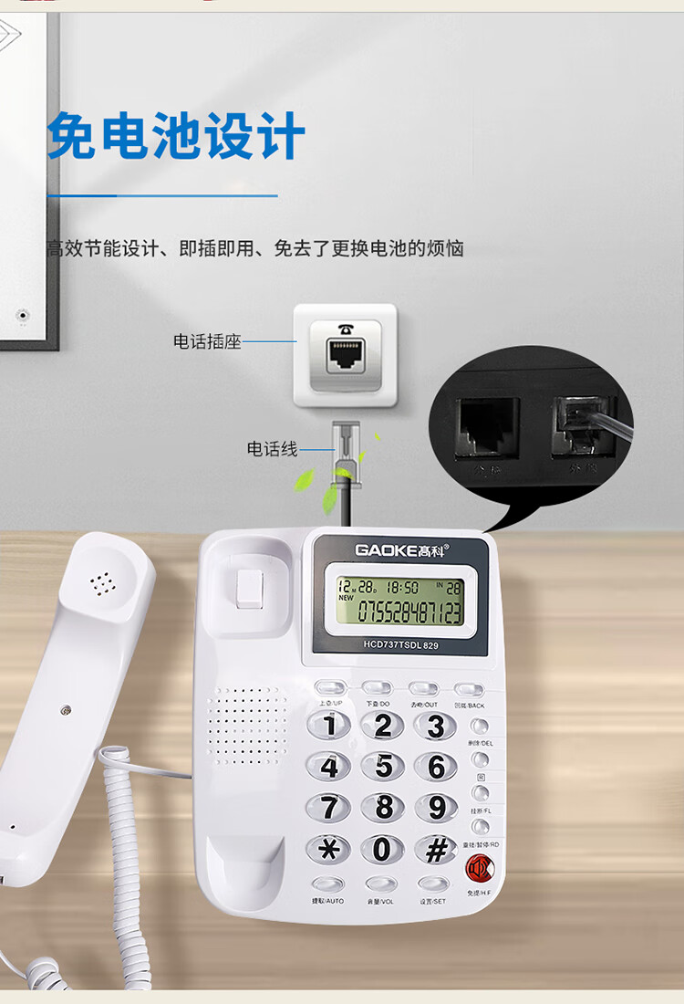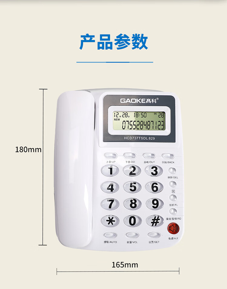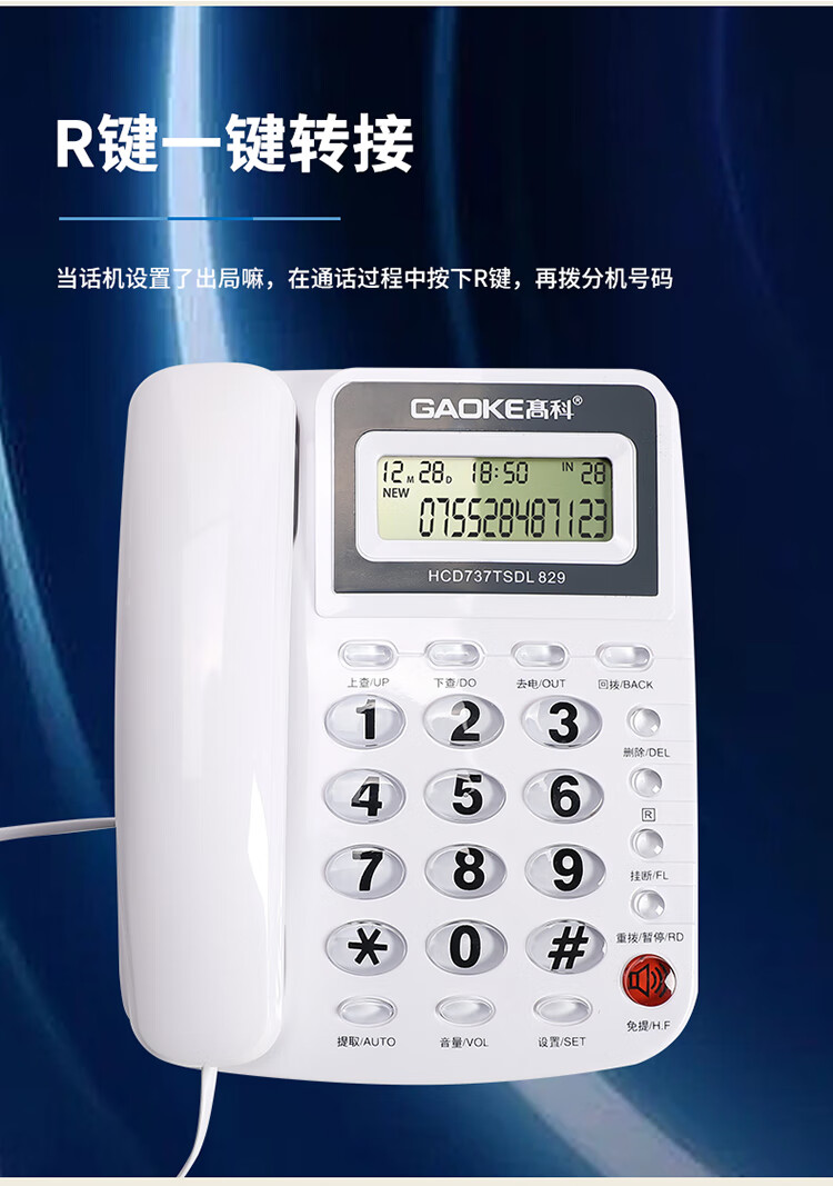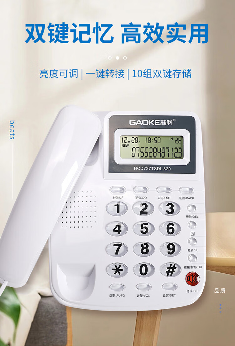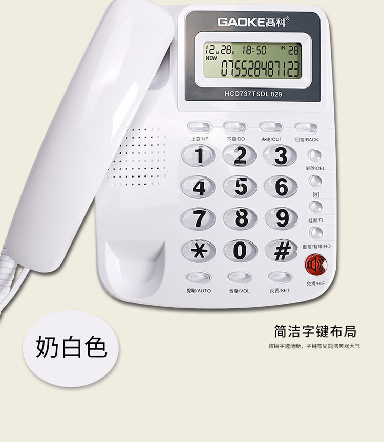 Téléphone de bureau hi-tech HCD829, téléphone préféré de bureau, identification de l'appelant, téléphone de bureau haut de gamme, Hi-tech 829 blanc